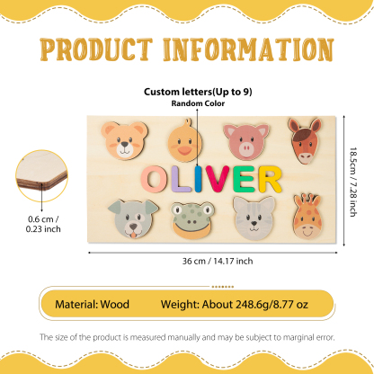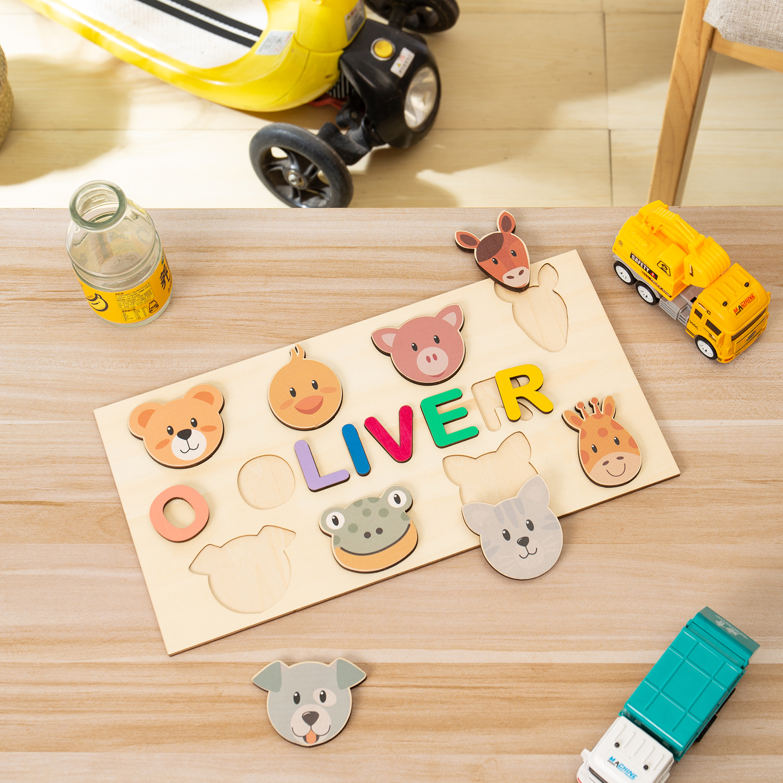 Rompecabezas/Puzzles para bebés animales personalizado con nombre juguetes de aprendizaje temprano