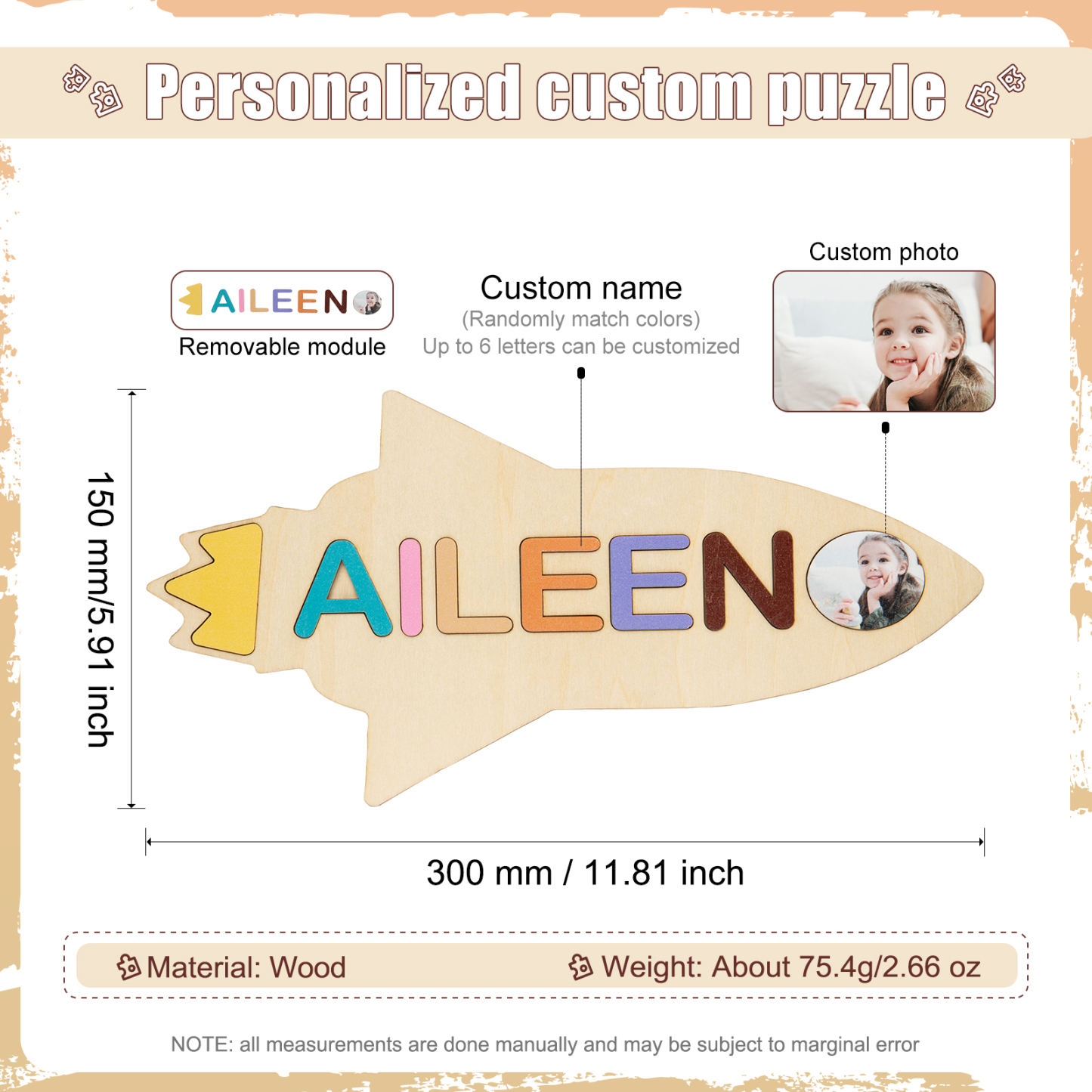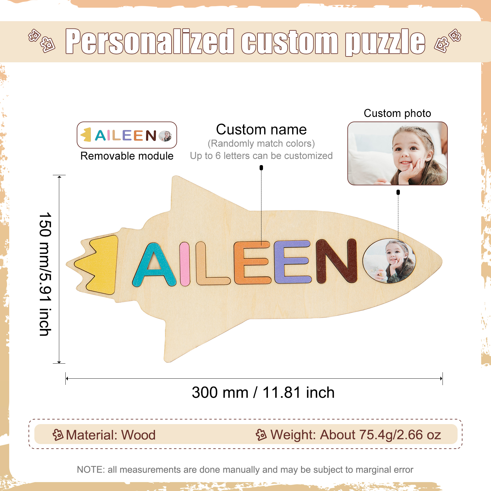 Puzzles/Rompecabezas Cohete con 1 Nombre con Foto Personalizados Juguetes de Niños