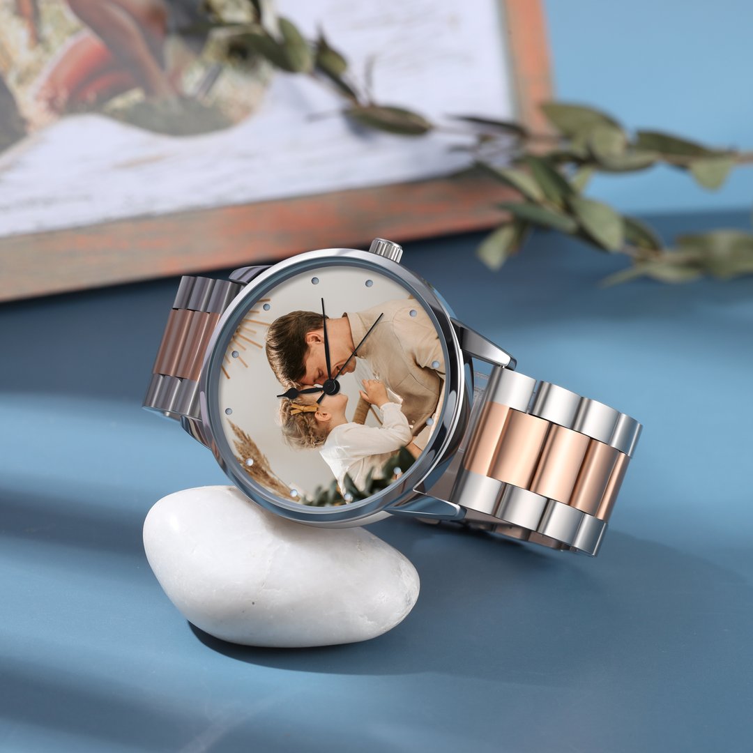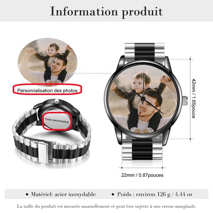 ♔ Este reloj es un producto personalizado. Reemplace la foto de muestra con su propia foto y grabe el texto en la parte trasera para crear un regalo personalizado para usted o su ser querido para atesorar los recuerdos especiales.