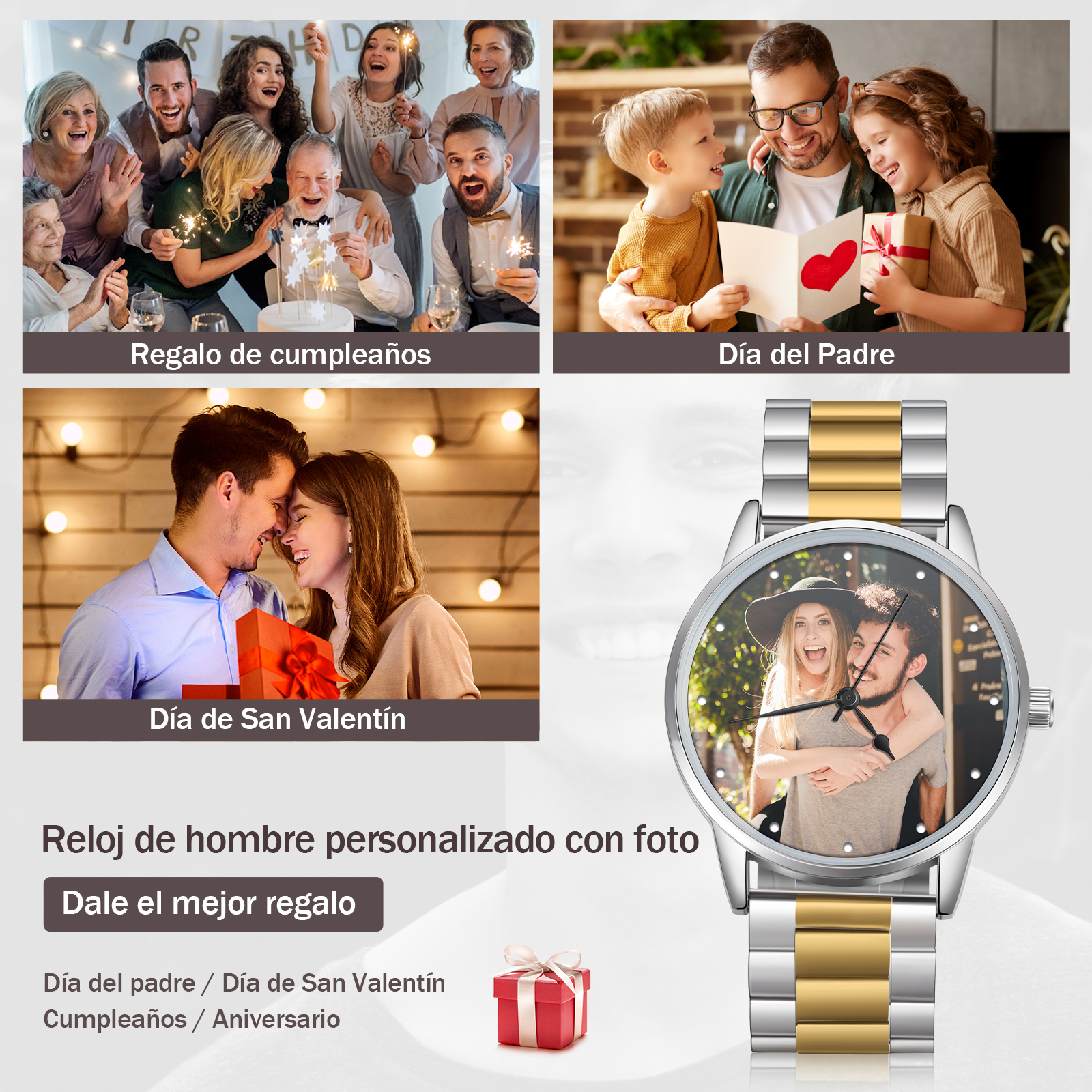 ♔ Este reloj es un producto personalizado. Reemplace la foto de muestra con su propia foto y grabe el texto en la parte trasera para crear un regalo personalizado para usted o su ser querido para atesorar los recuerdos especiales.