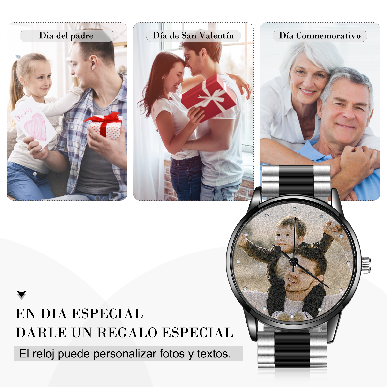 ♔ Este reloj es un producto personalizado. Reemplace la foto de muestra con su propia foto y grabe el texto en la parte trasera para crear un regalo personalizado para usted o su ser querido para atesorar los recuerdos especiales.