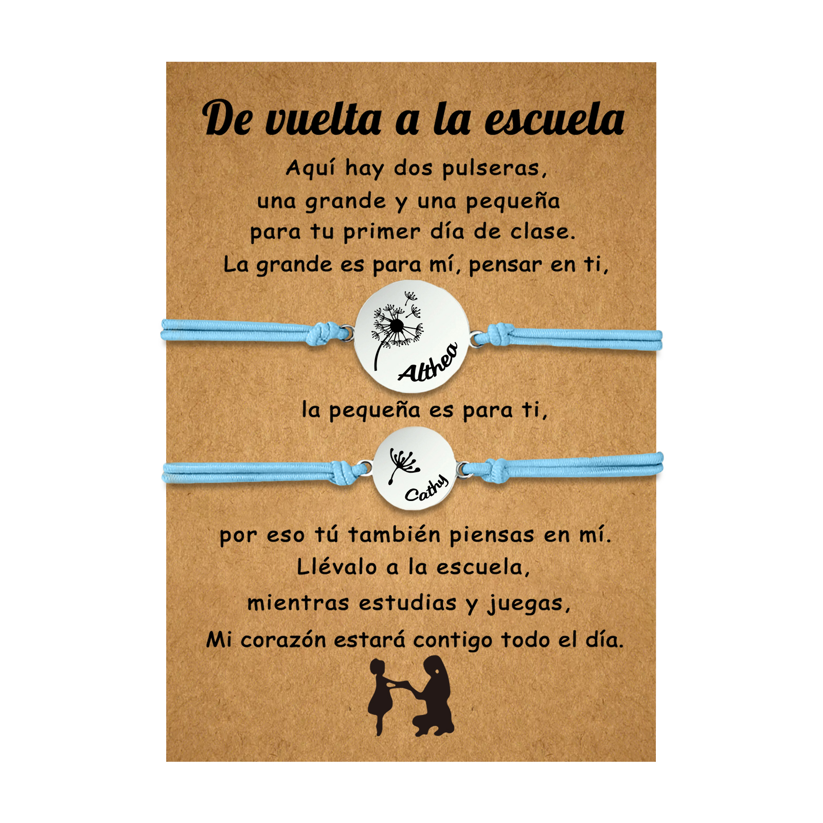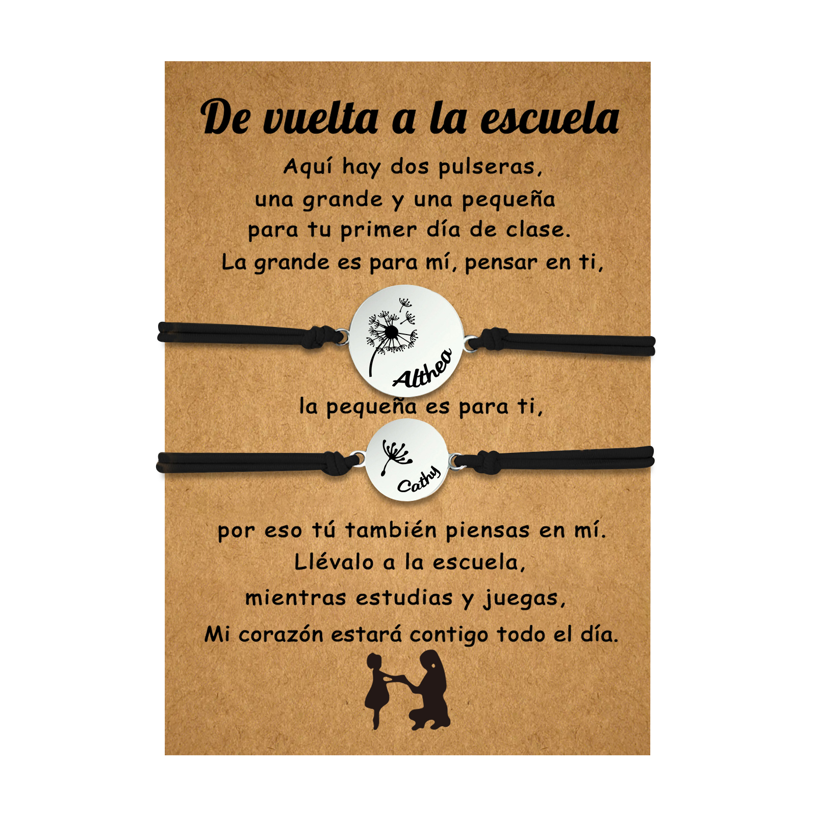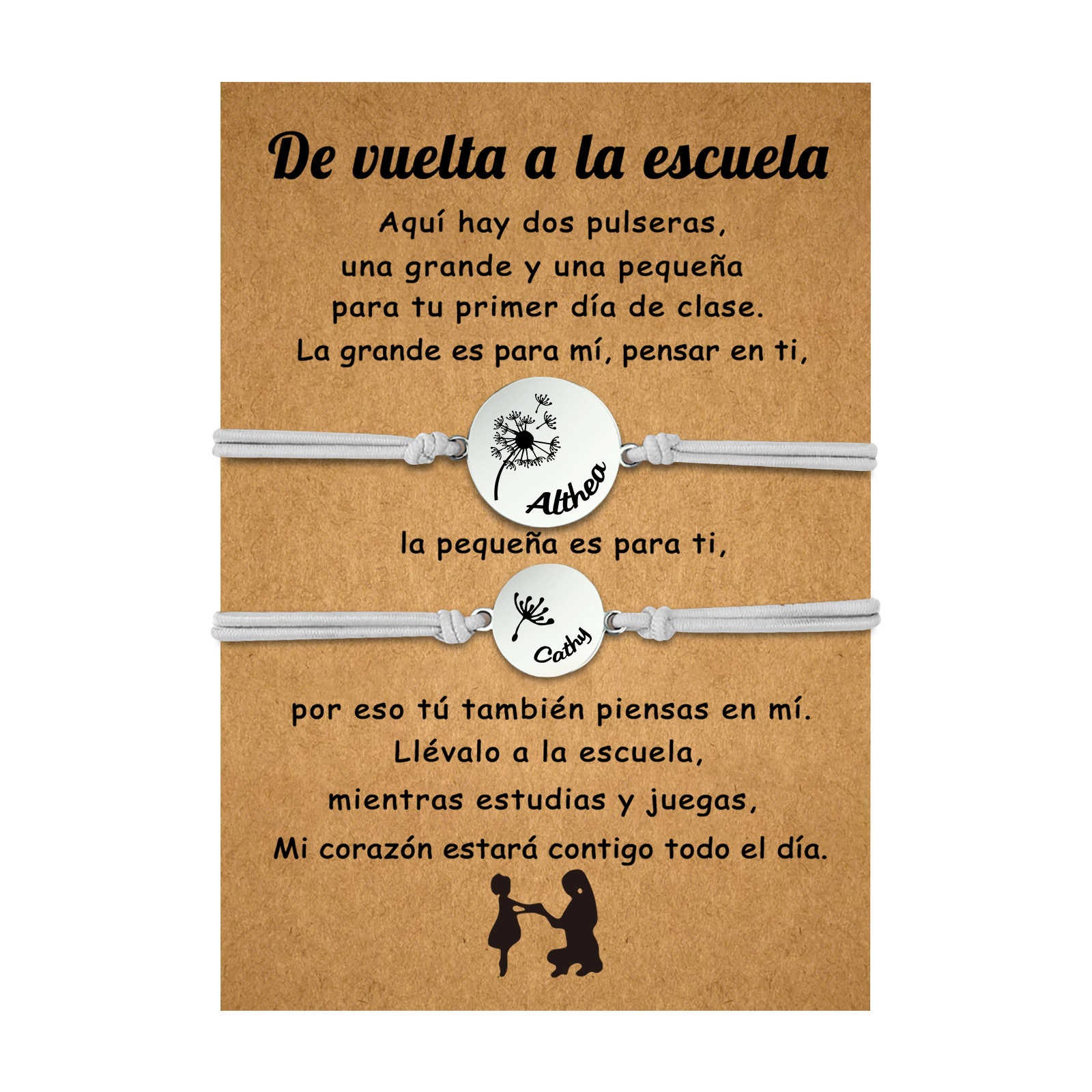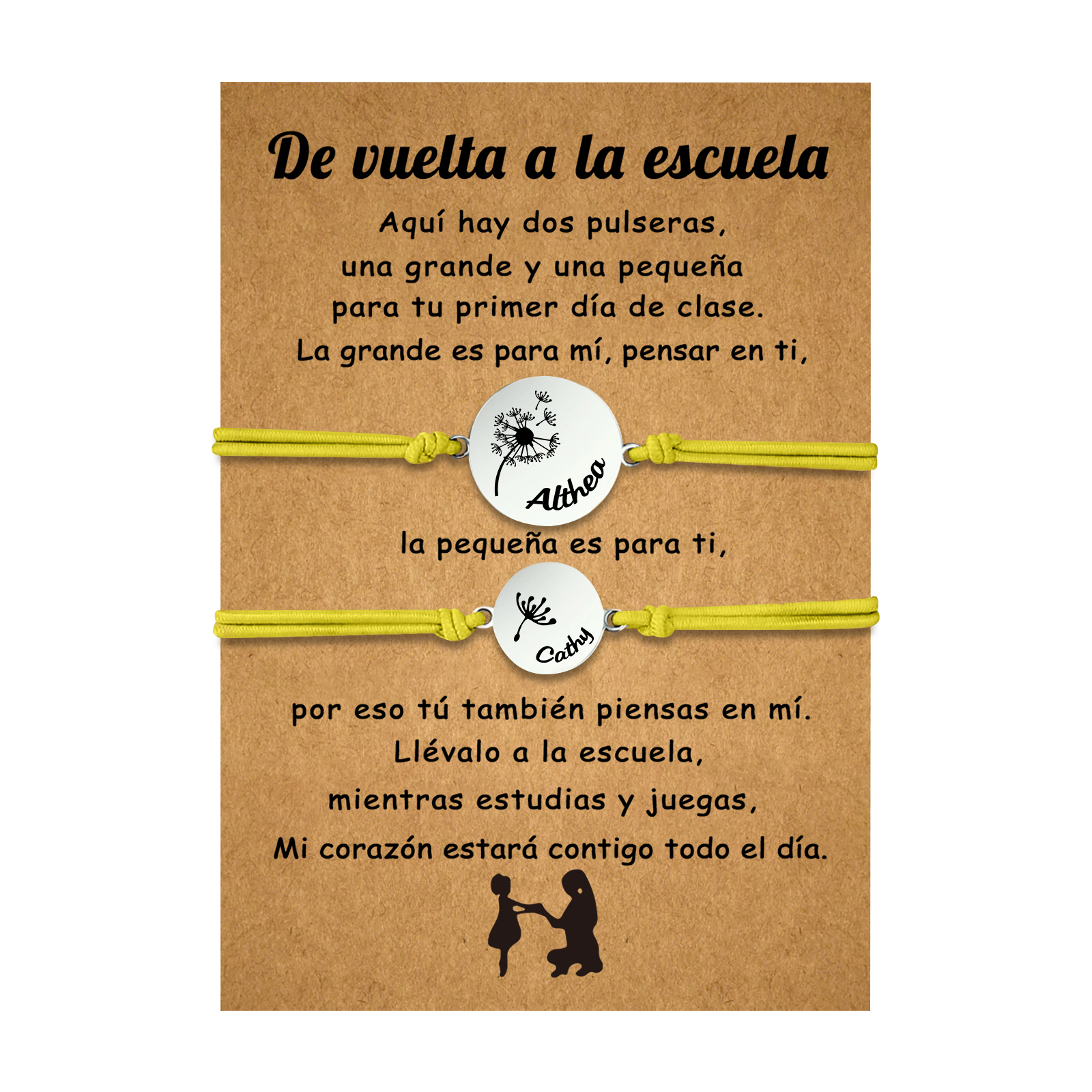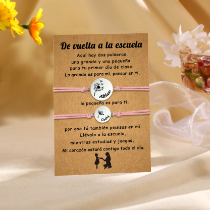 Unidad de 2 pulseras de dientes de león de 2 nombres personalizados - Regalos de regreso a la escuela