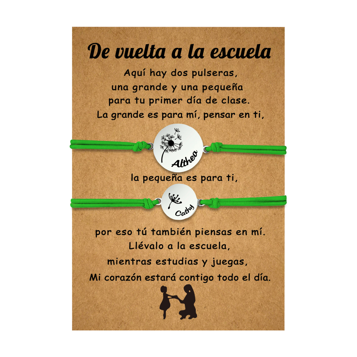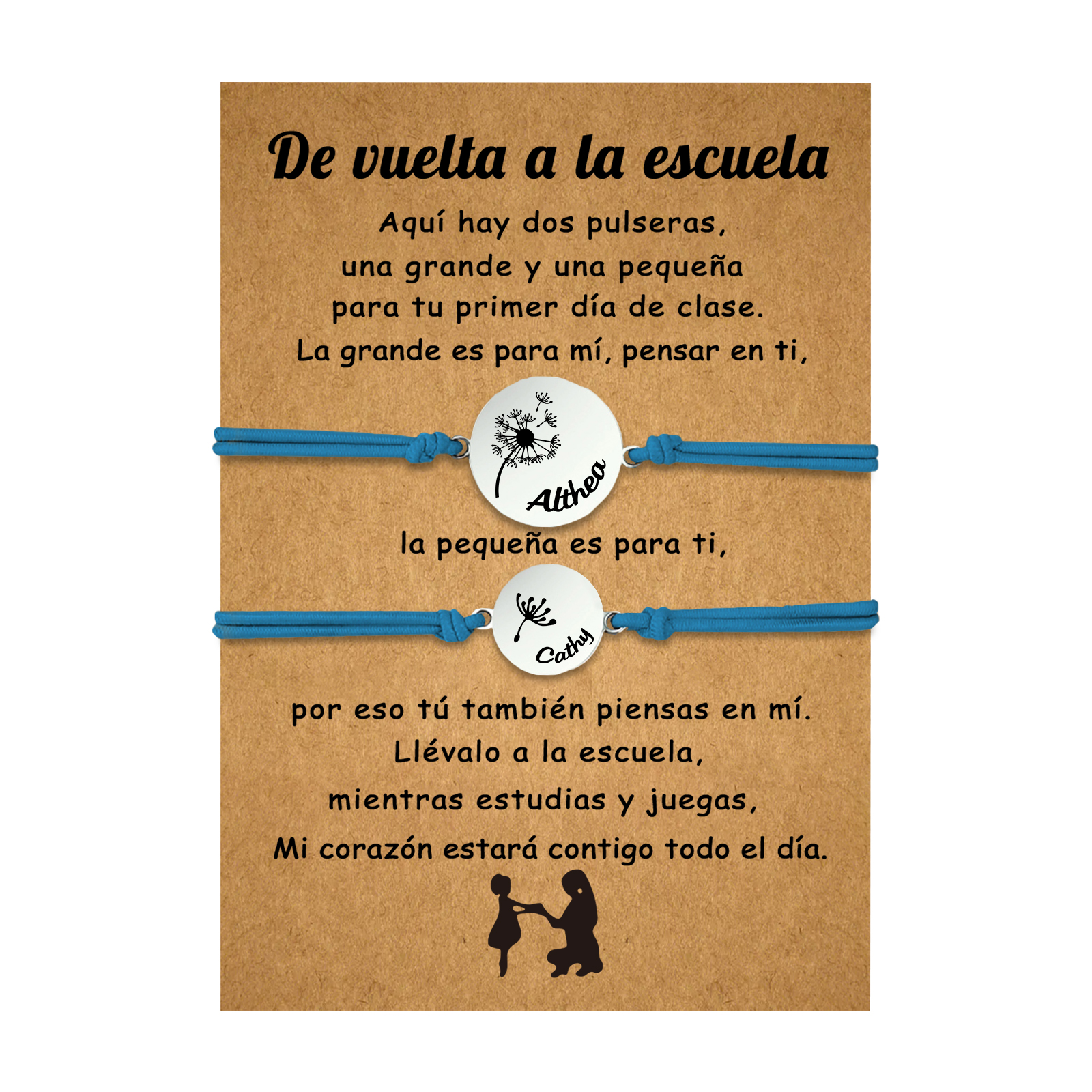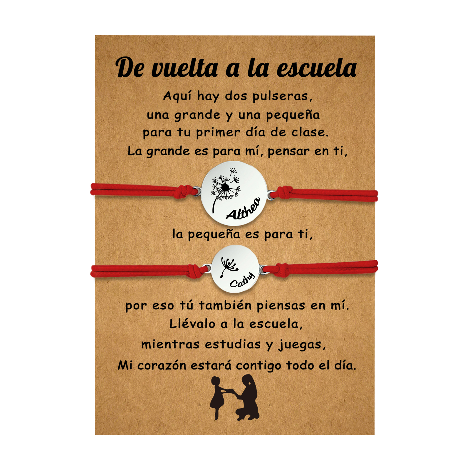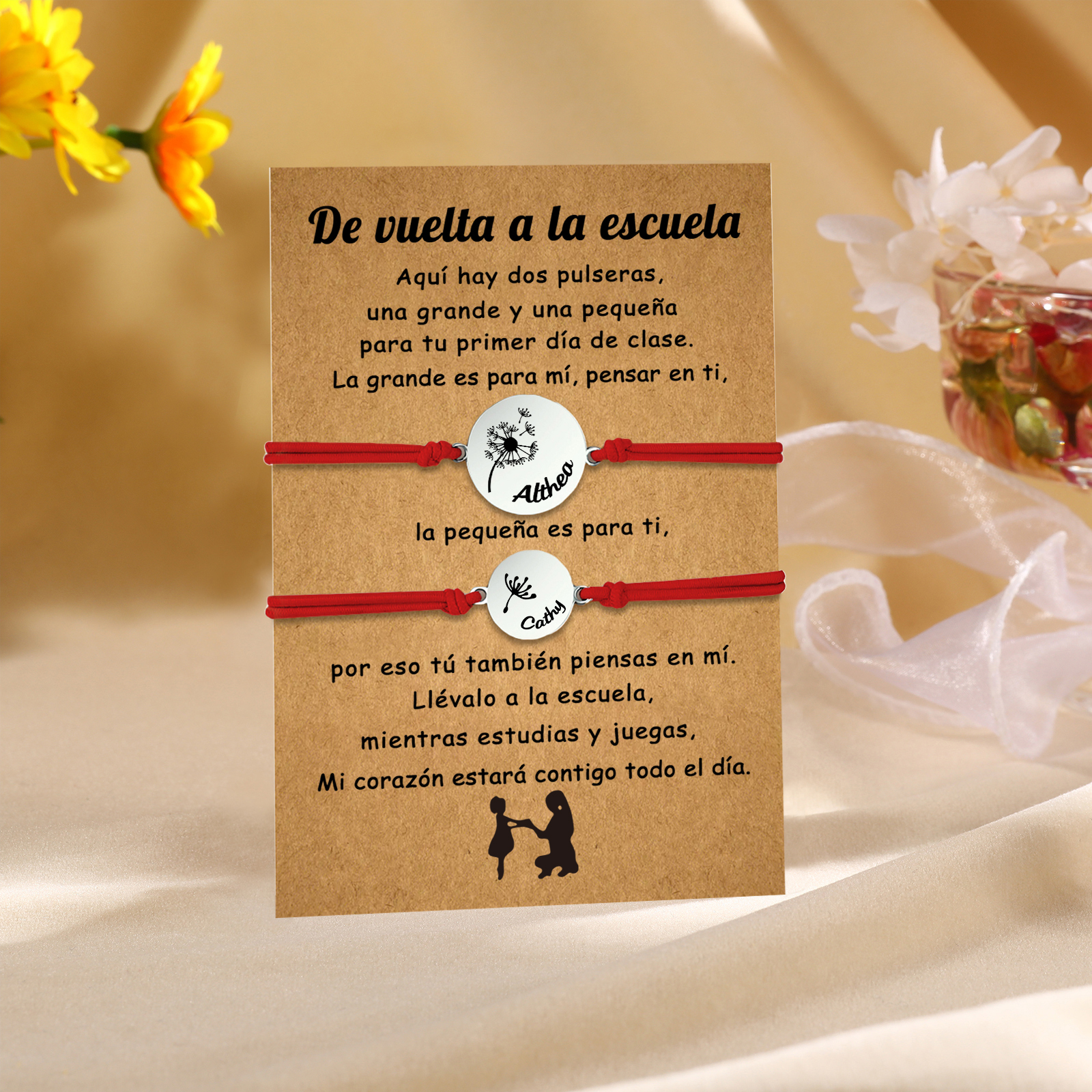 Unidad de 2 pulseras de dientes de león de 2 nombres personalizados - Regalos de regreso a la escuela