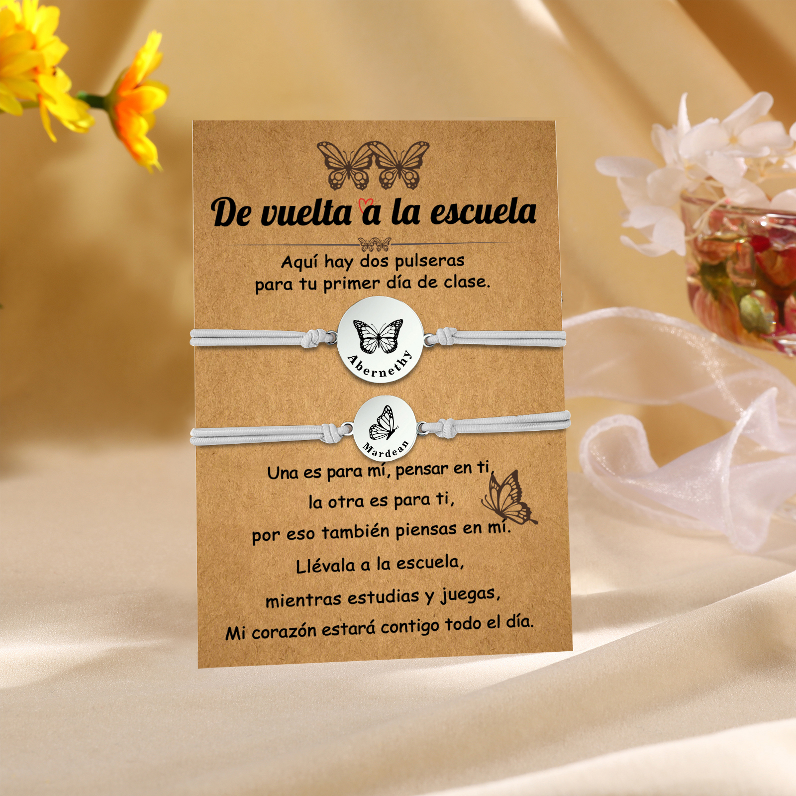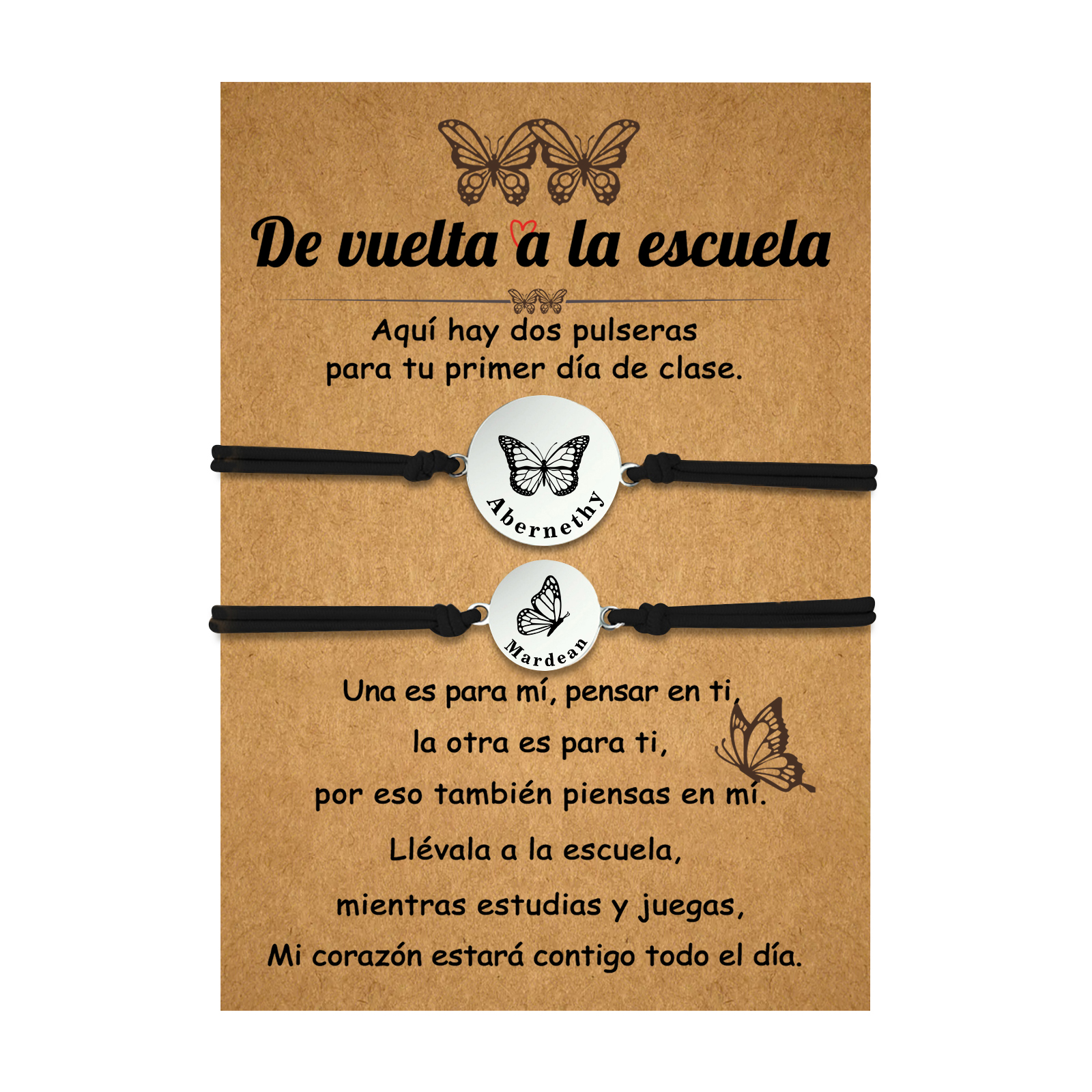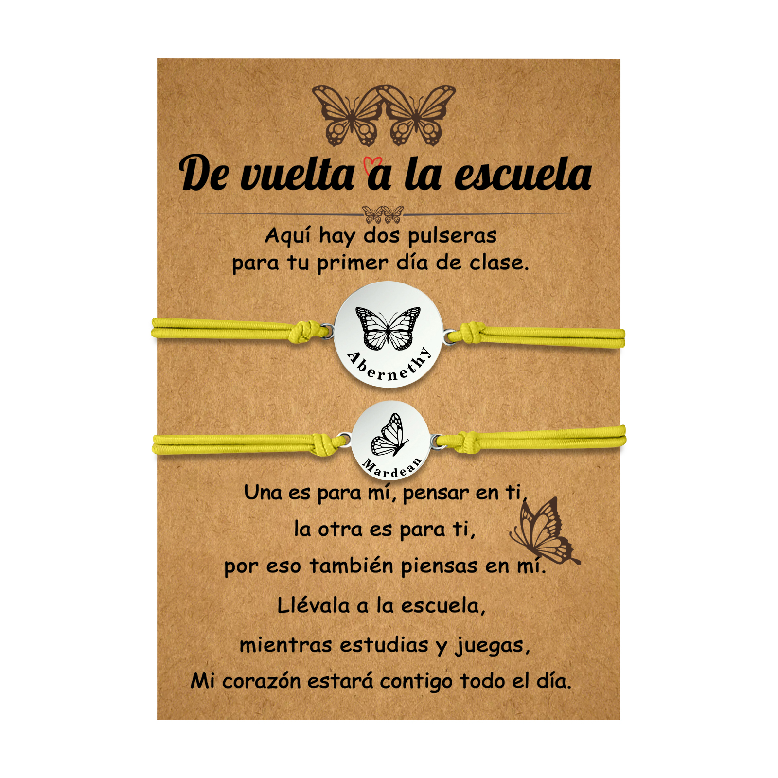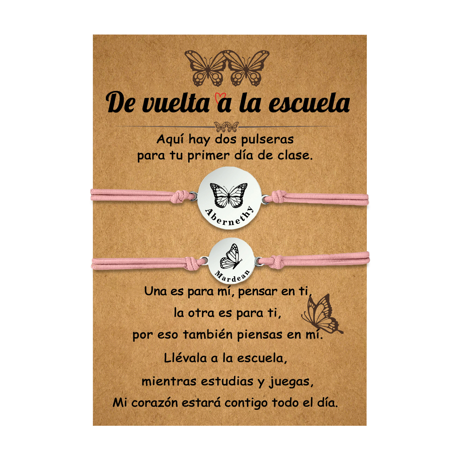 Unidad de 2 pulseras de mariposa de 2 nombres personalizados - Regalos de regreso a la escuela