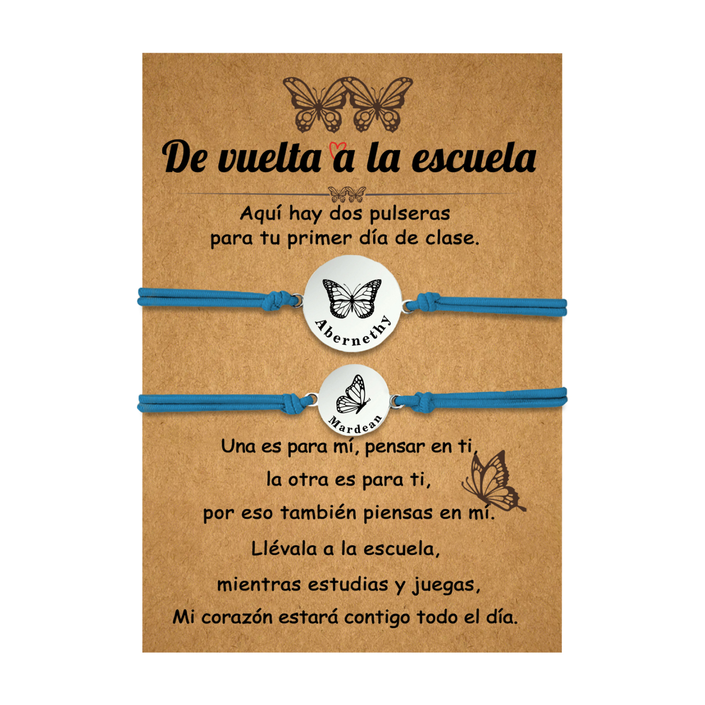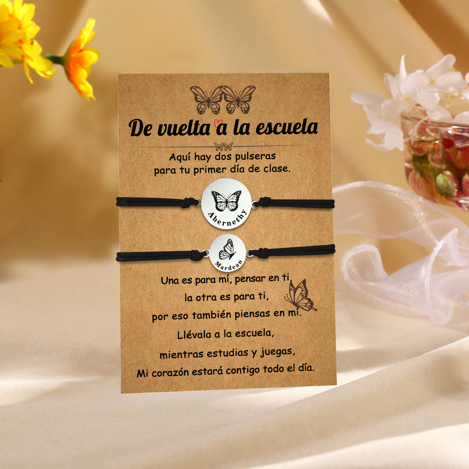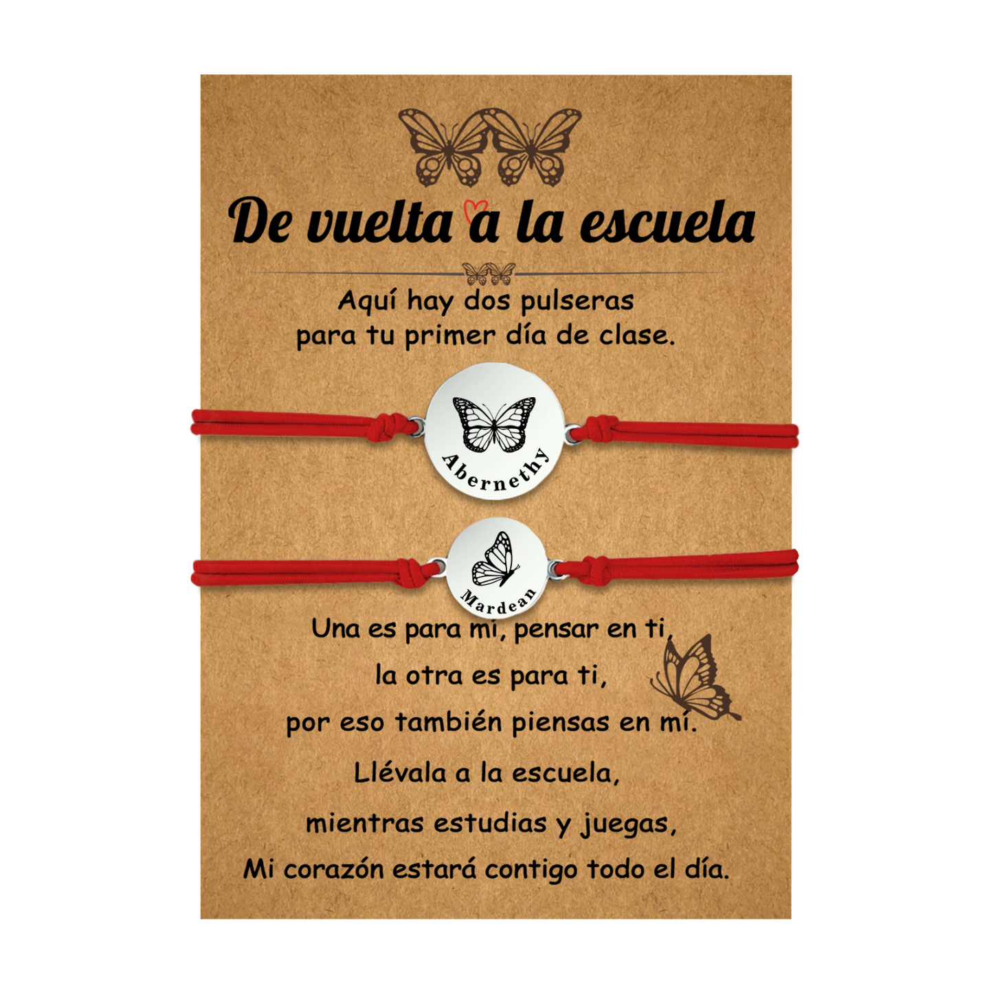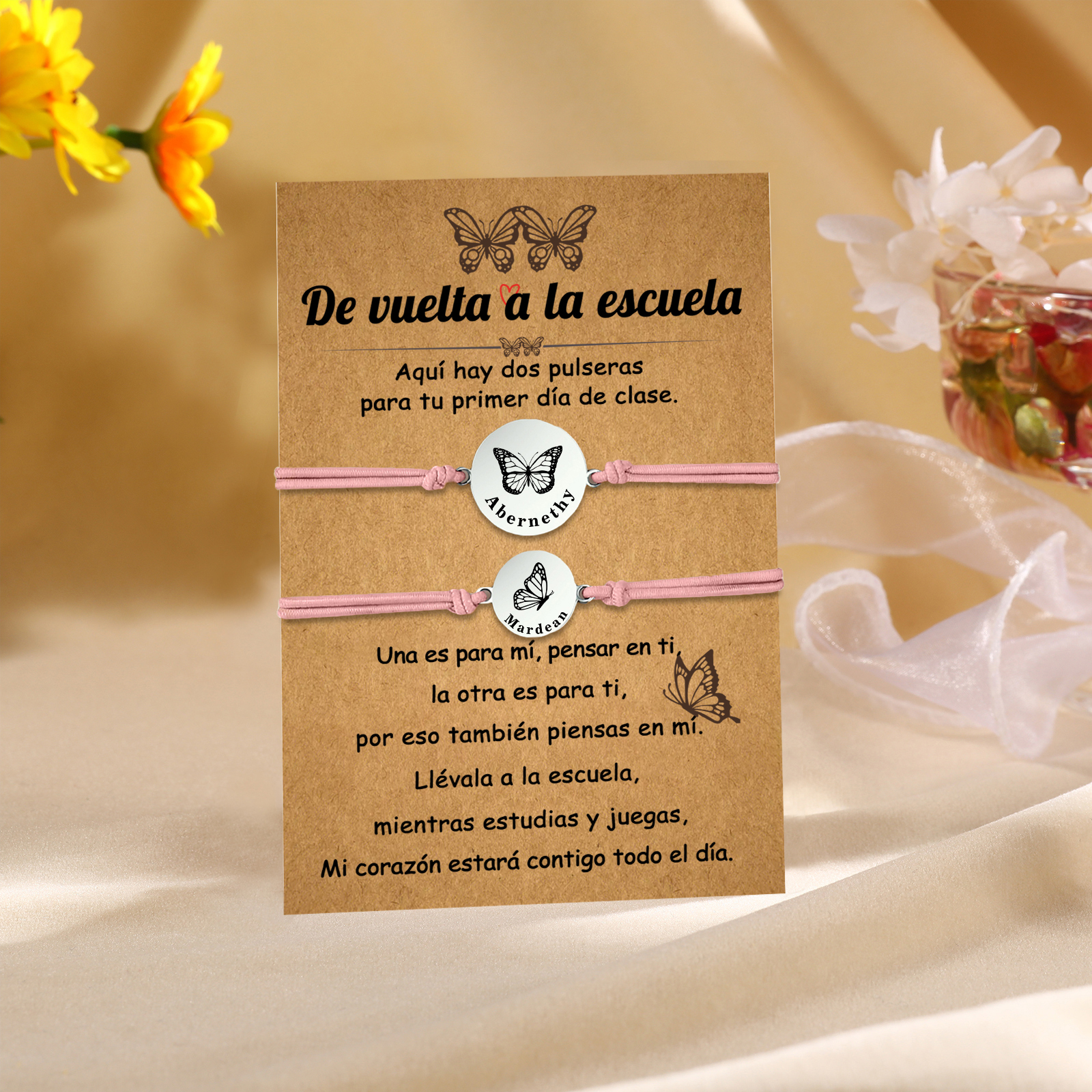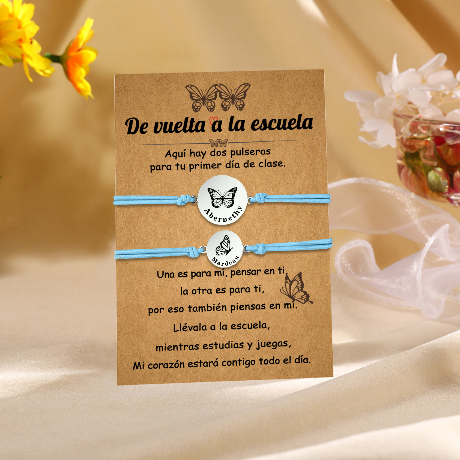 Unidad de 2 pulseras de mariposa de 2 nombres personalizados - Regalos de regreso a la escuela