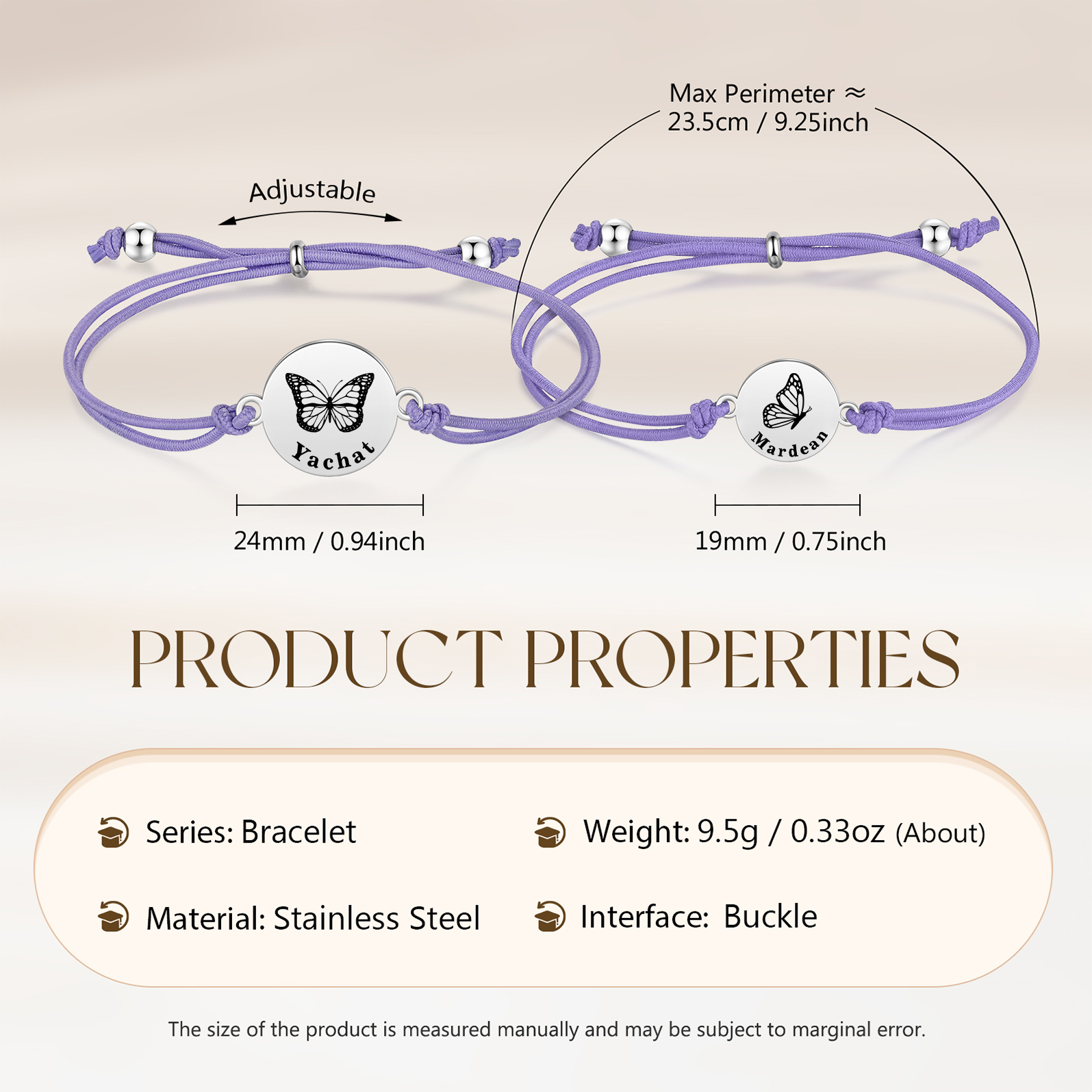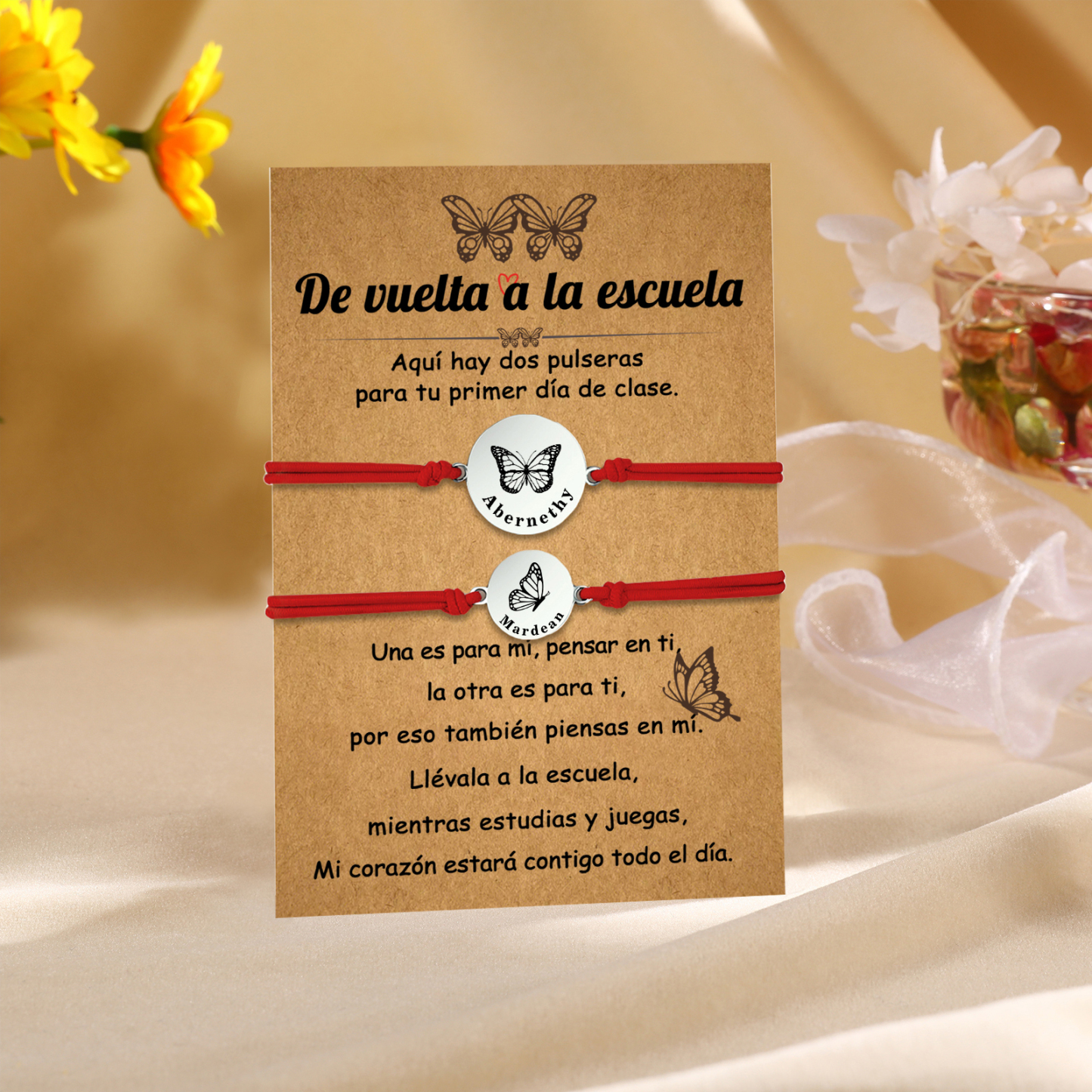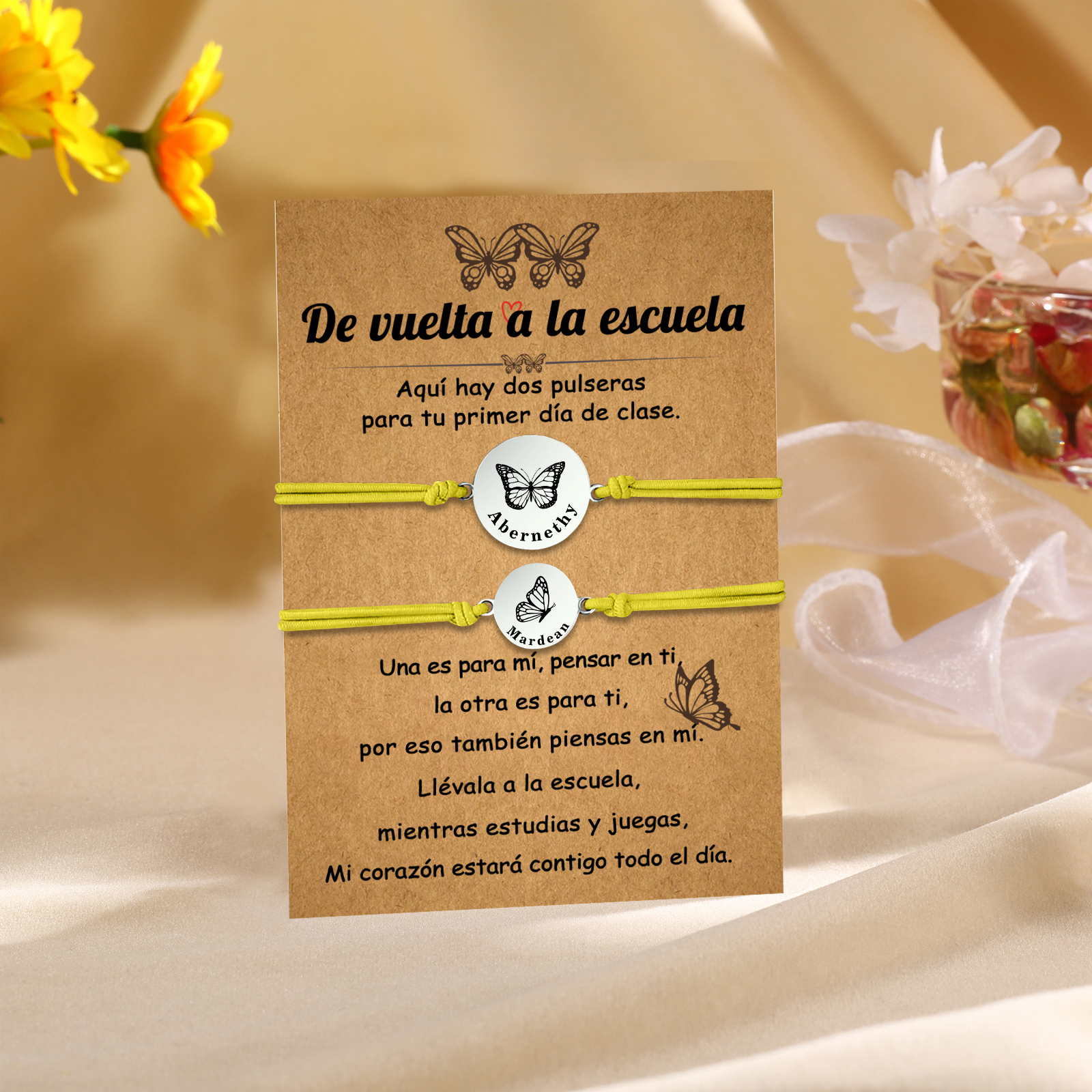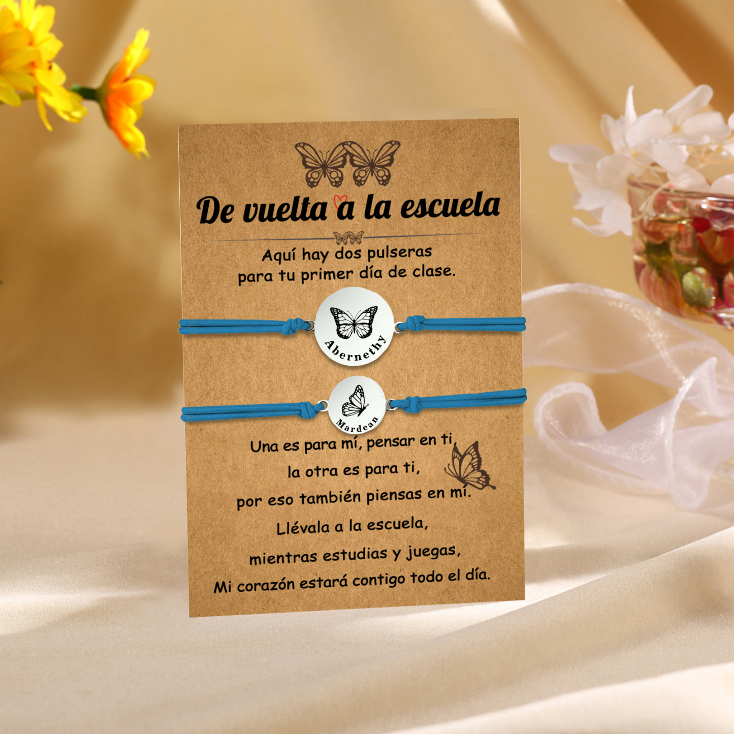 Unidad de 2 pulseras de mariposa de 2 nombres personalizados - Regalos de regreso a la escuela