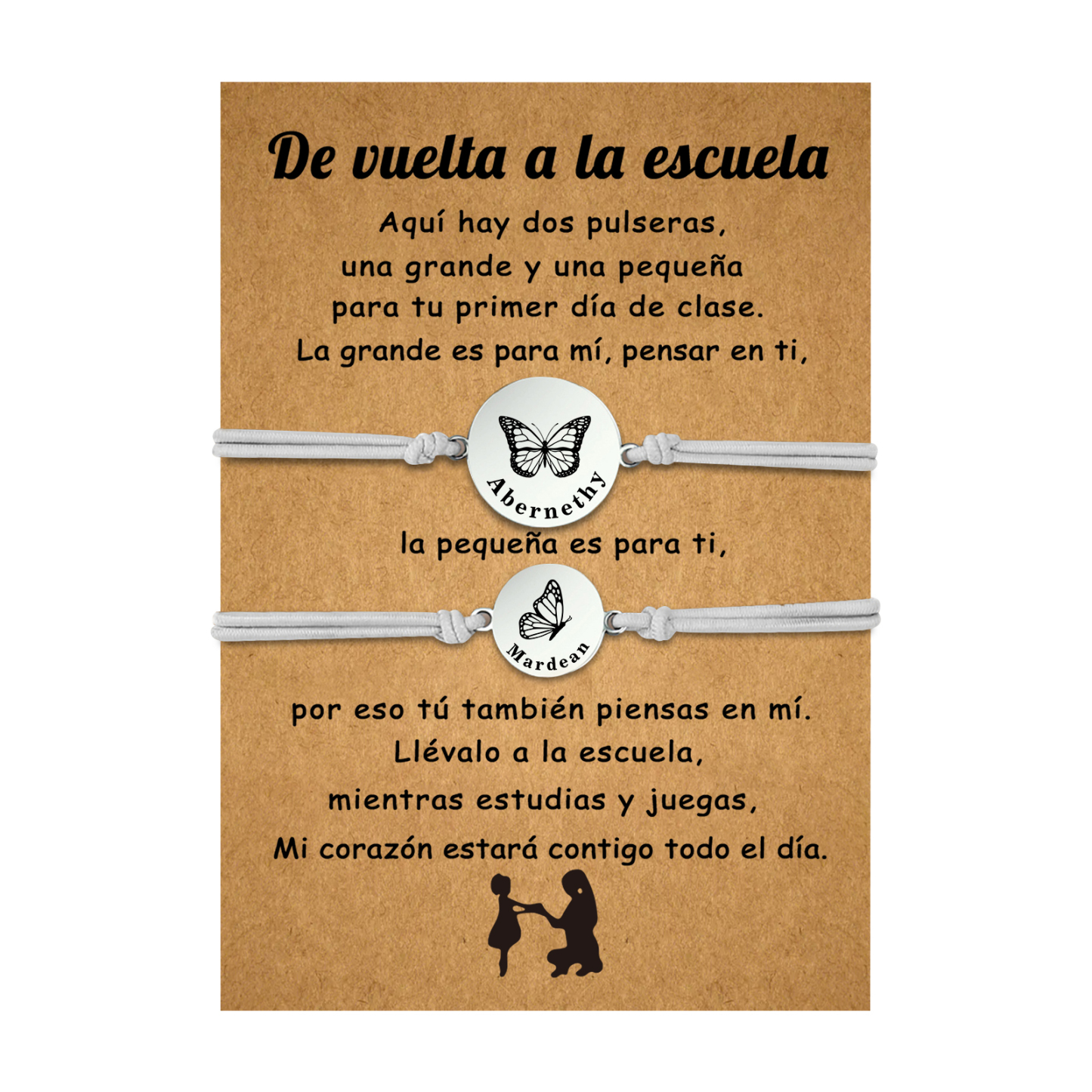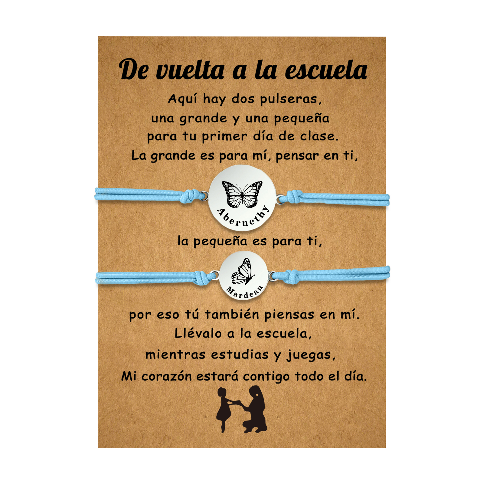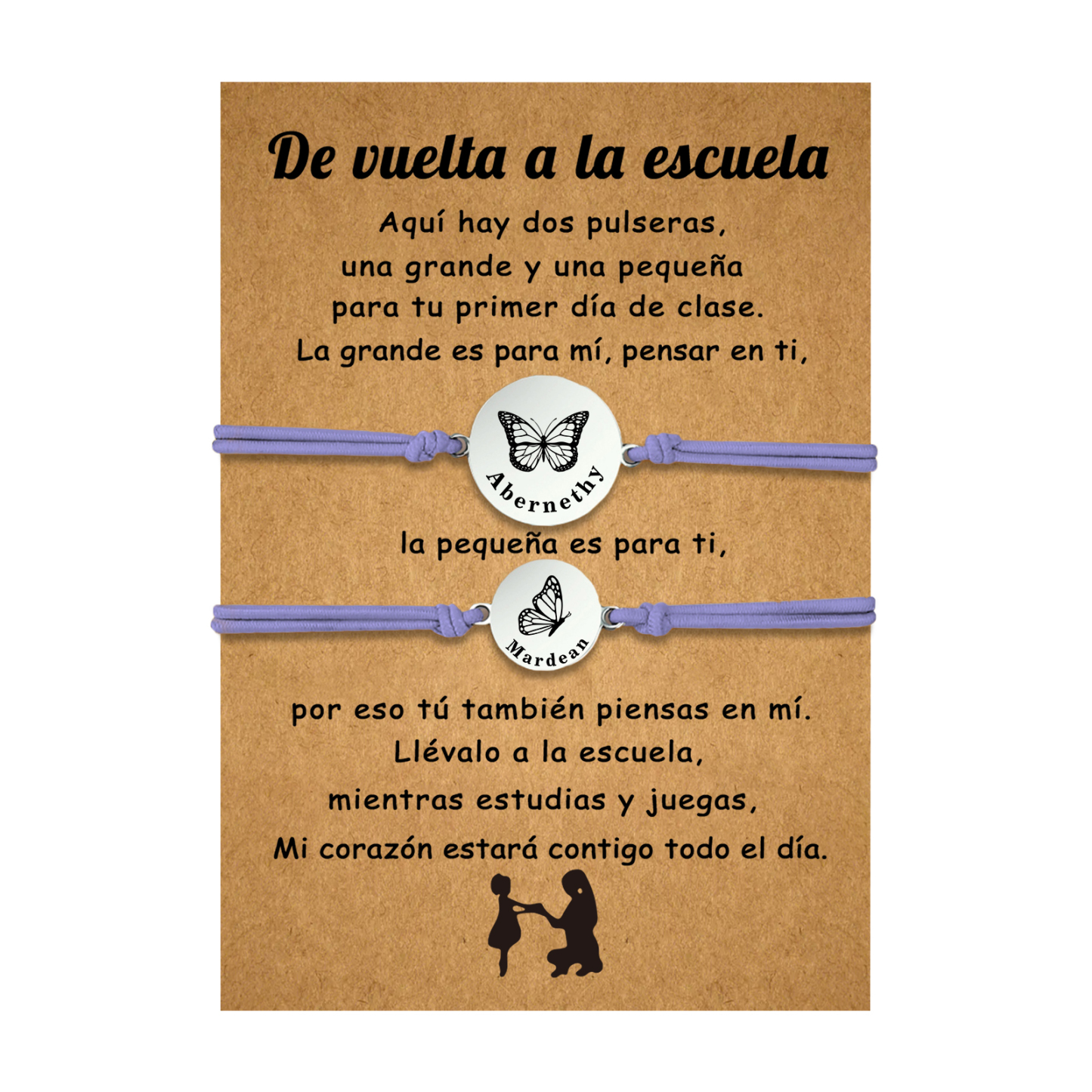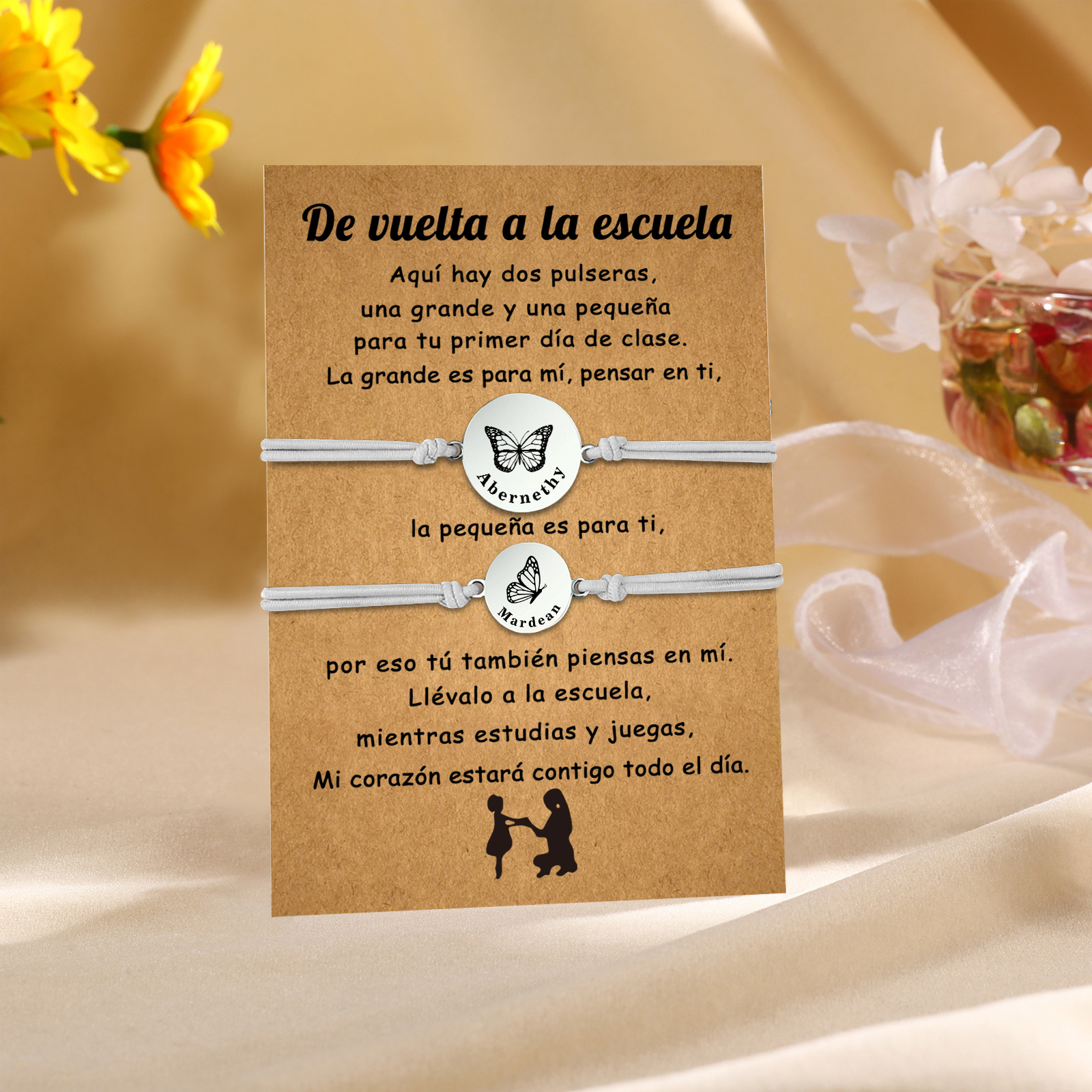 Unidad de 2 pulseras de mariposa de 2 nombres personalizados - Regalos de regreso a la escuela