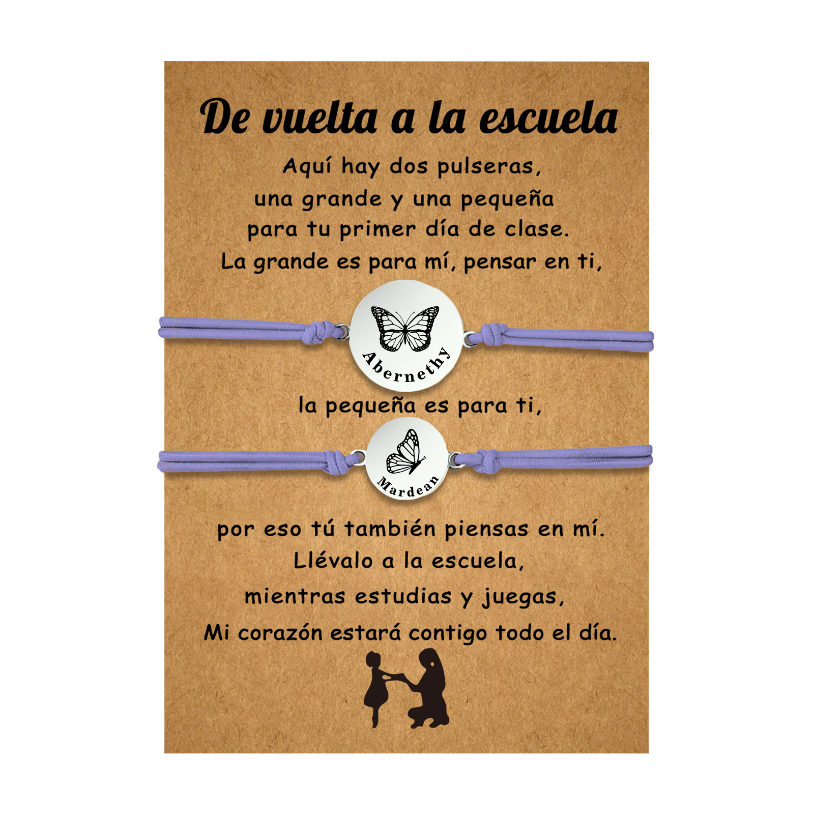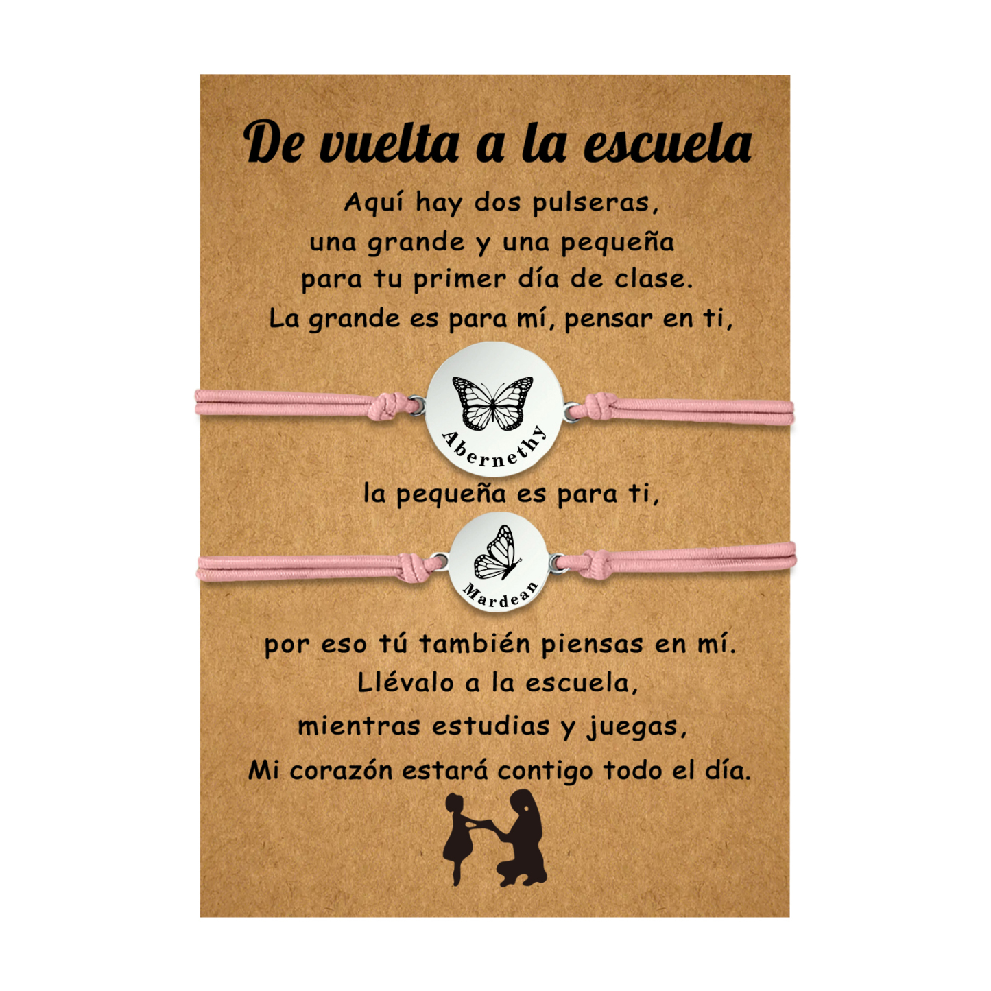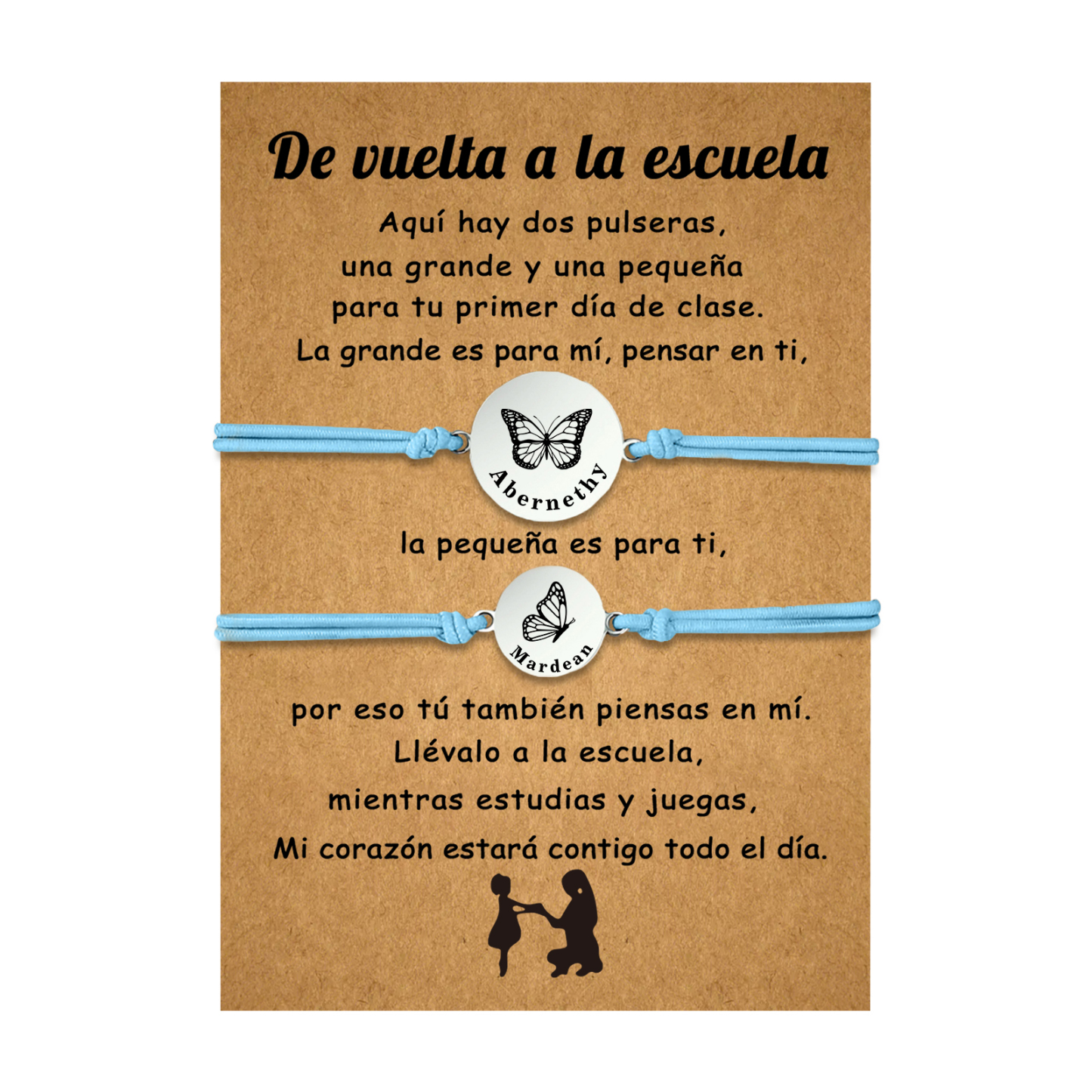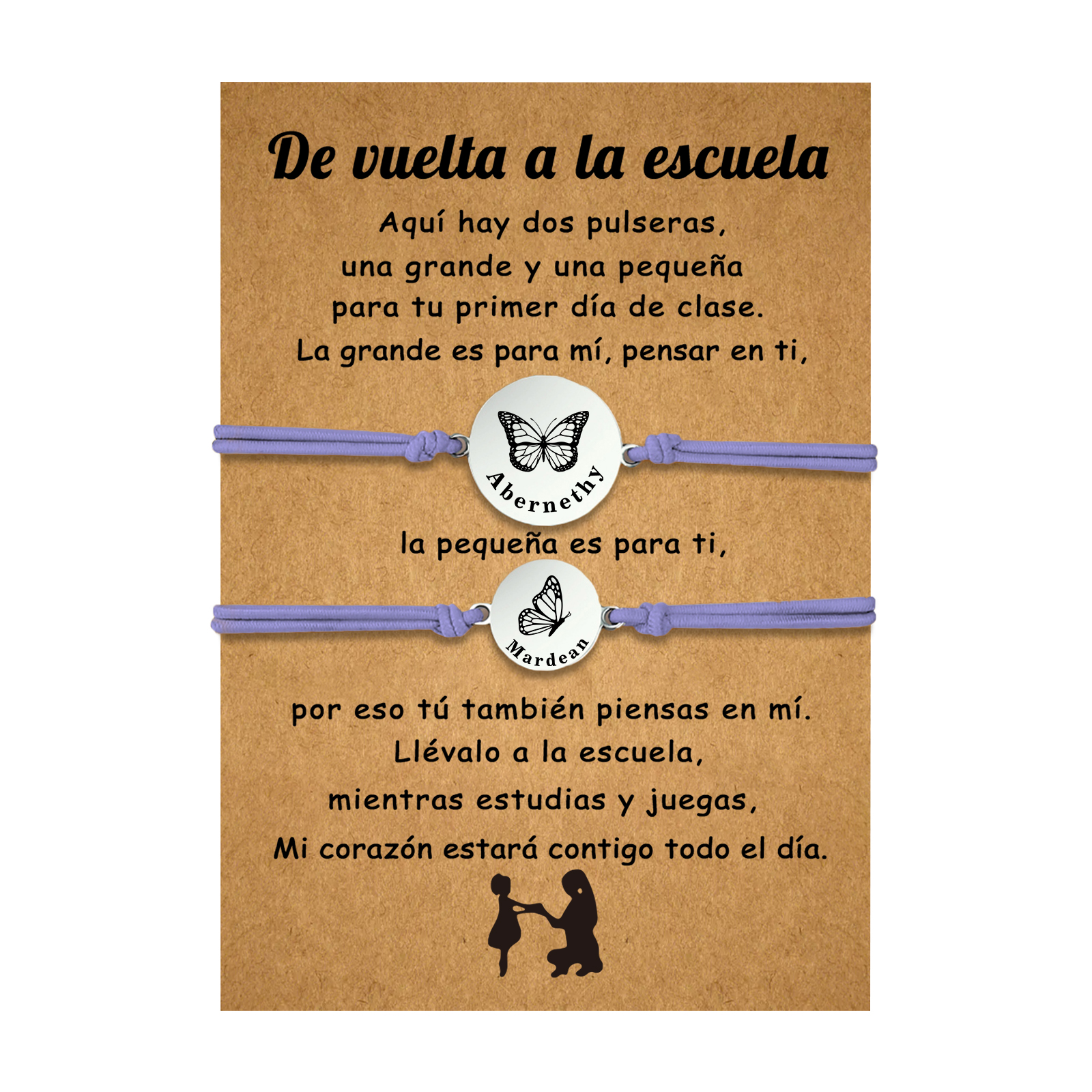 Unidad de 2 pulseras de mariposa de 2 nombres personalizados - Regalos de regreso a la escuela