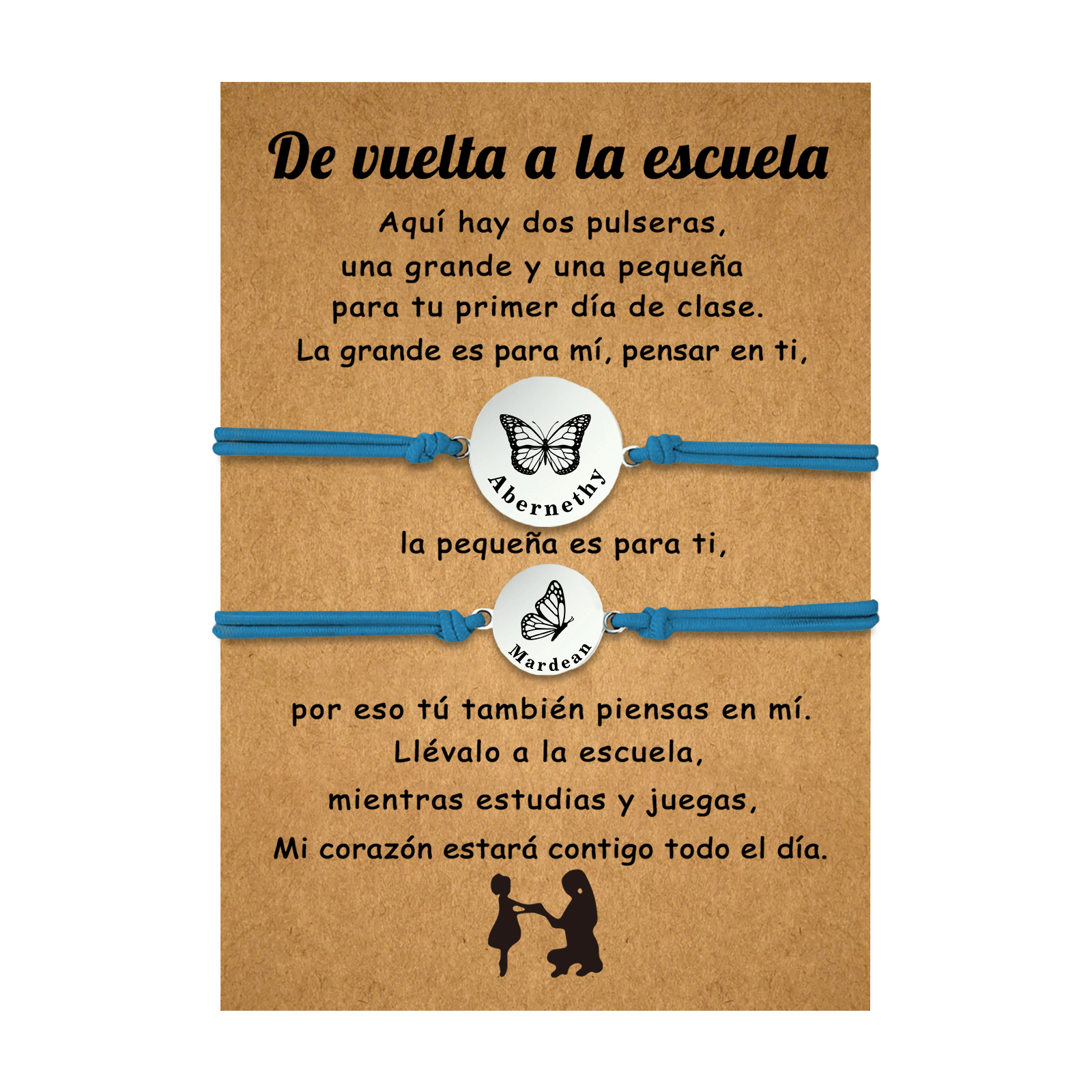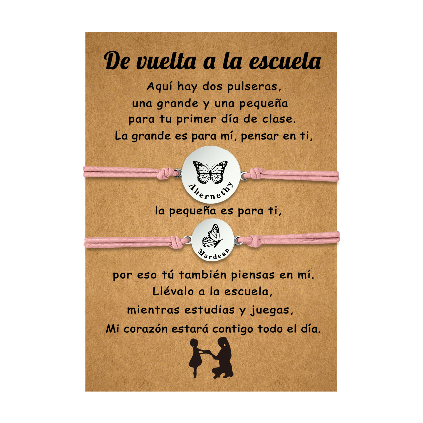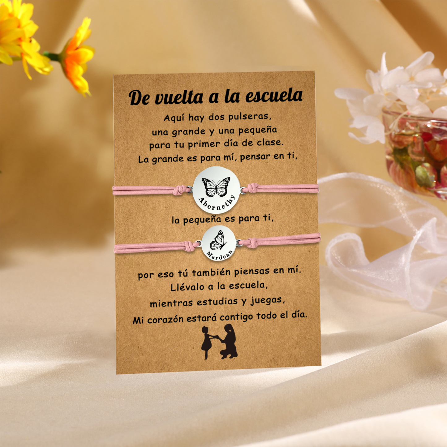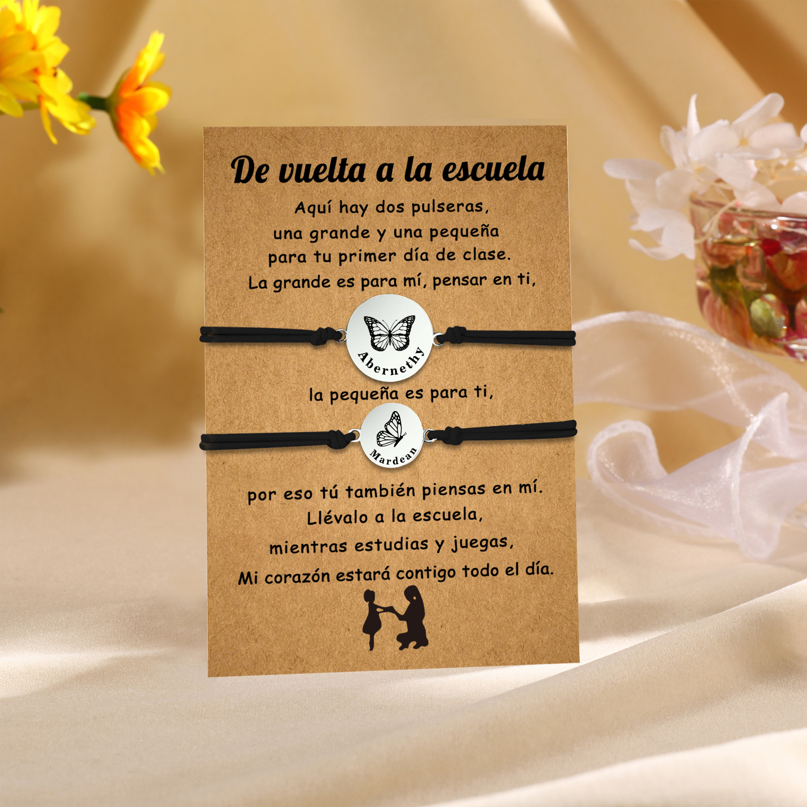 Unidad de 2 pulseras de mariposa de 2 nombres personalizados - Regalos de regreso a la escuela