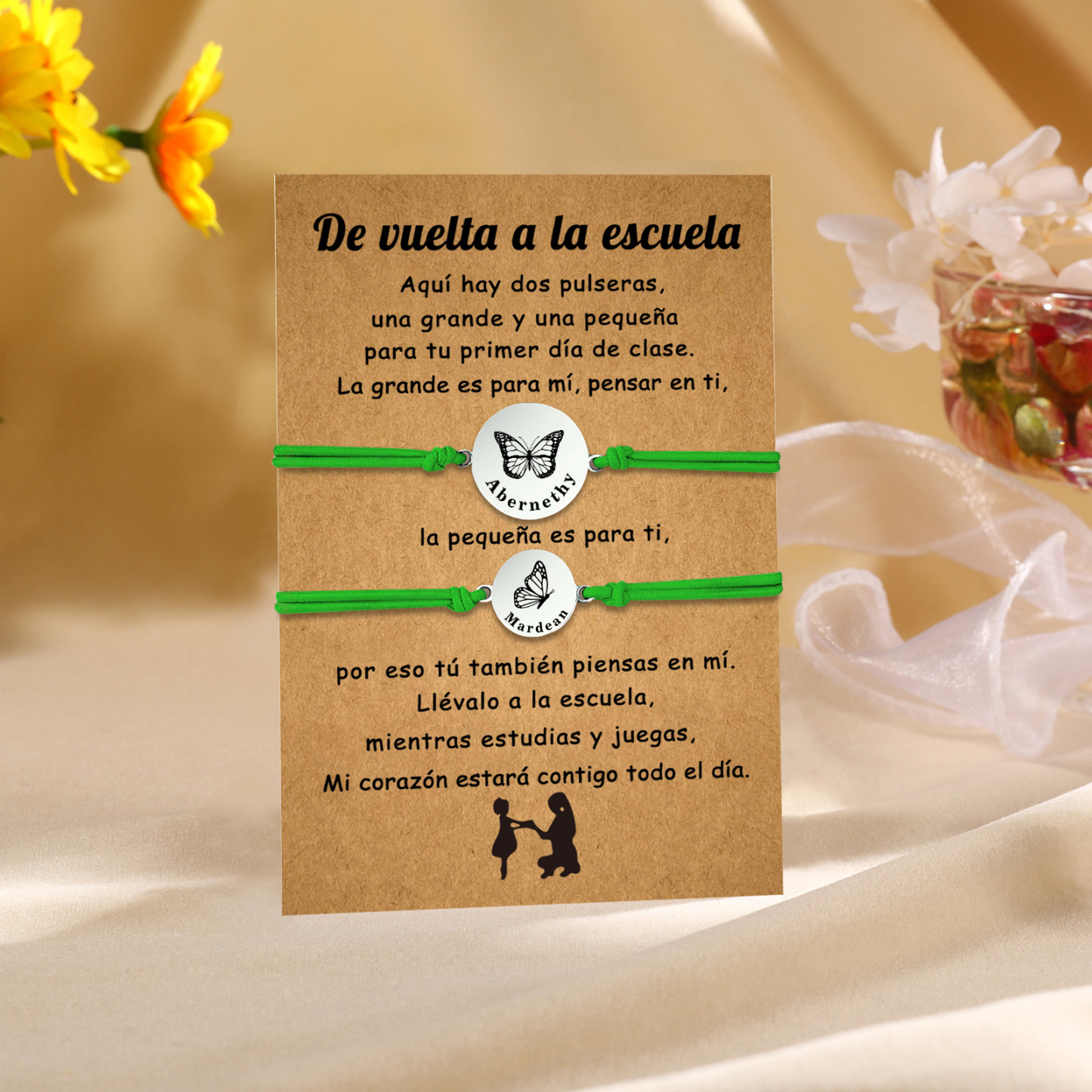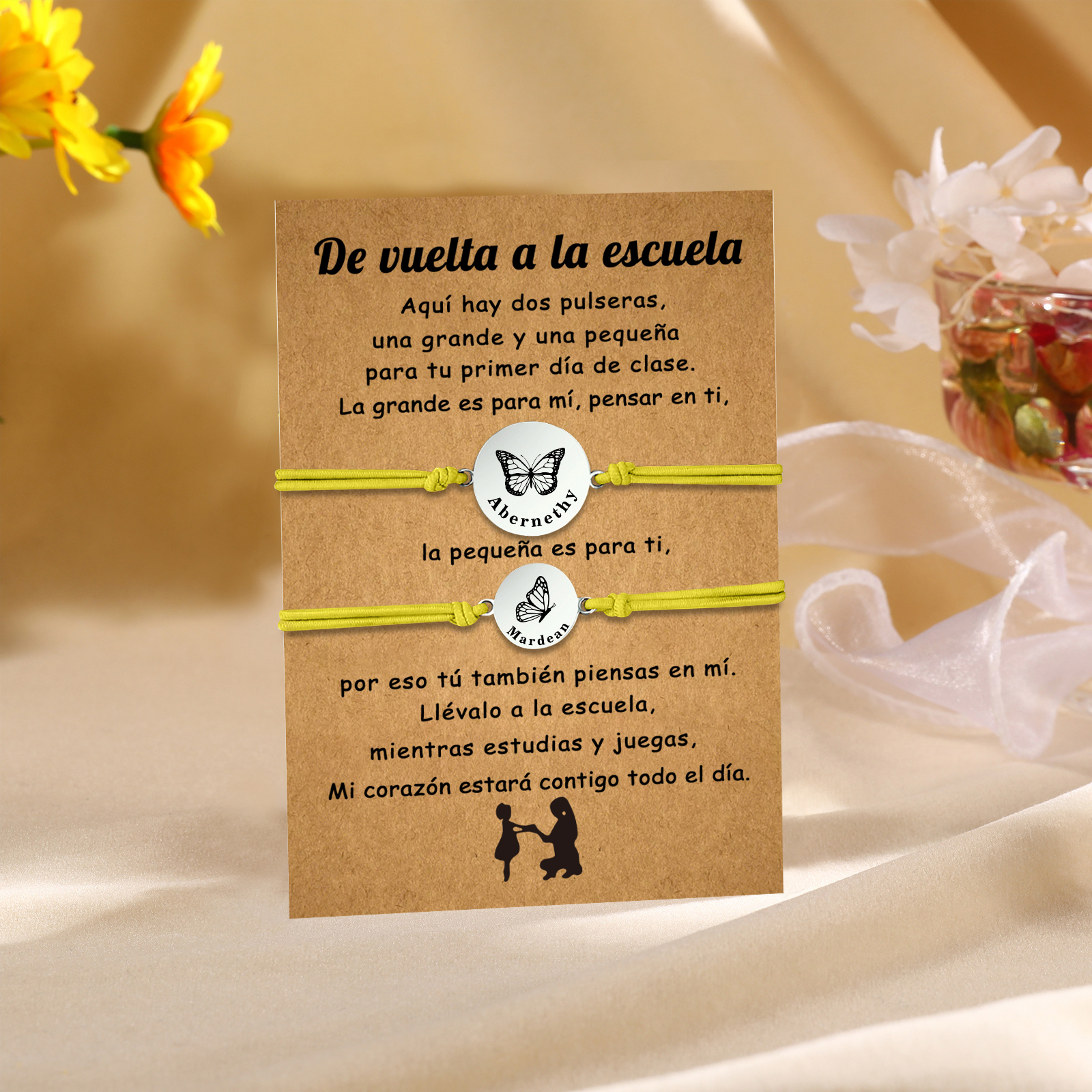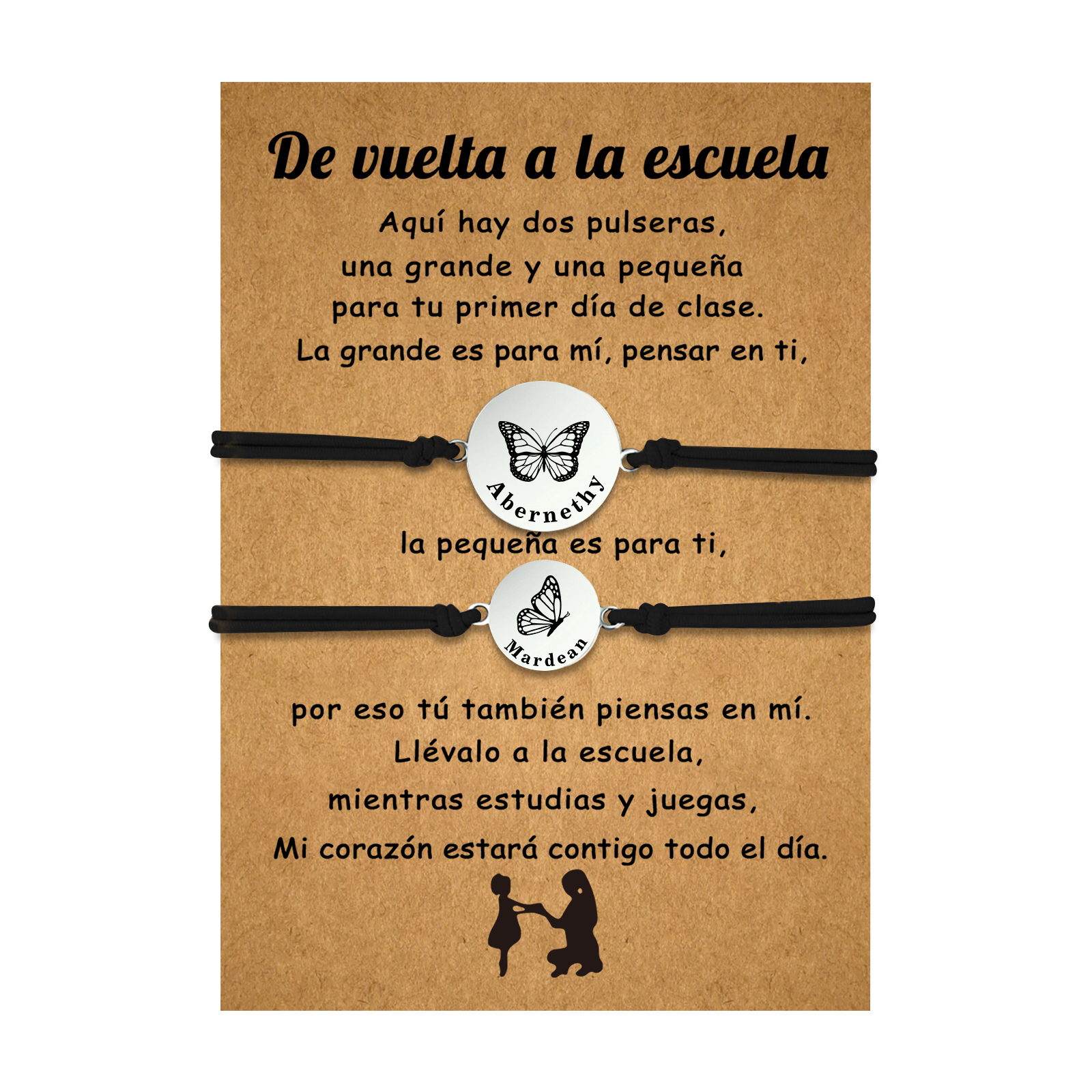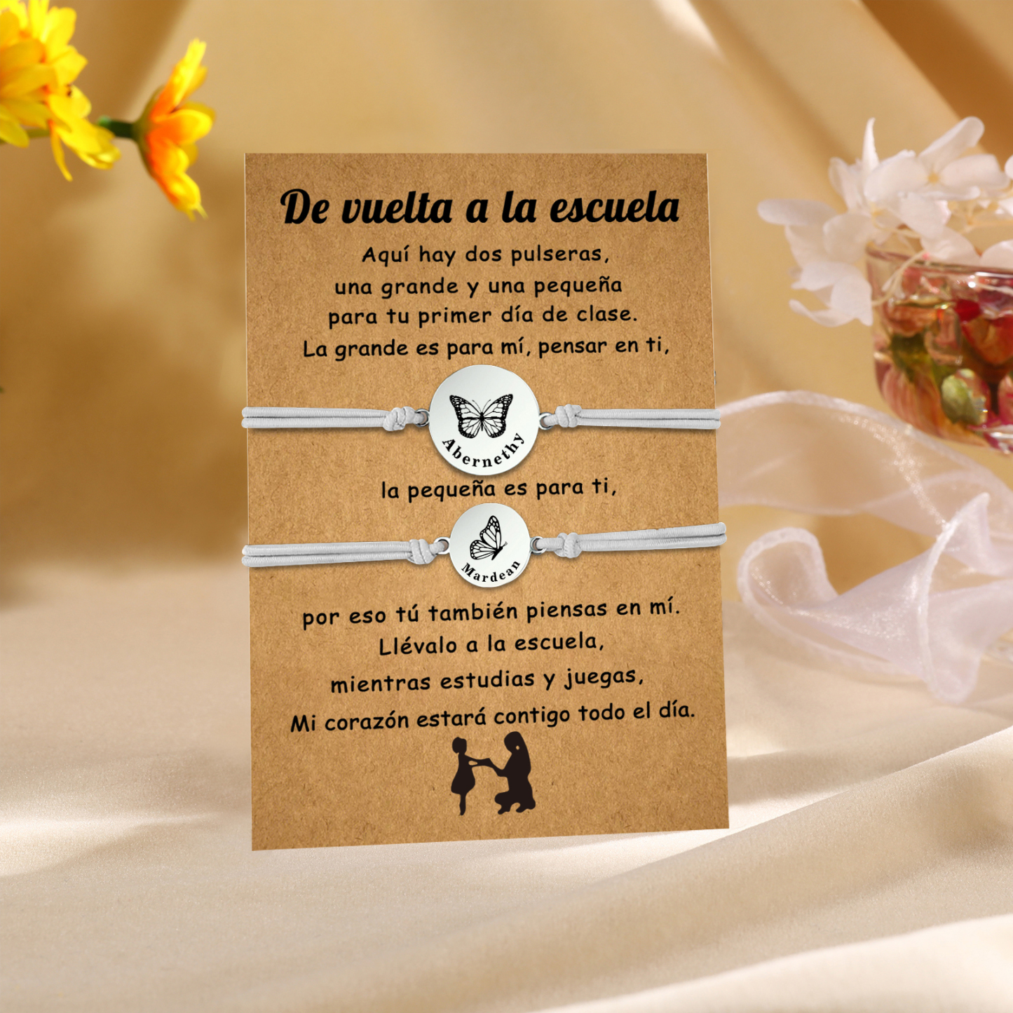 Unidad de 2 pulseras de mariposa de 2 nombres personalizados - Regalos de regreso a la escuela