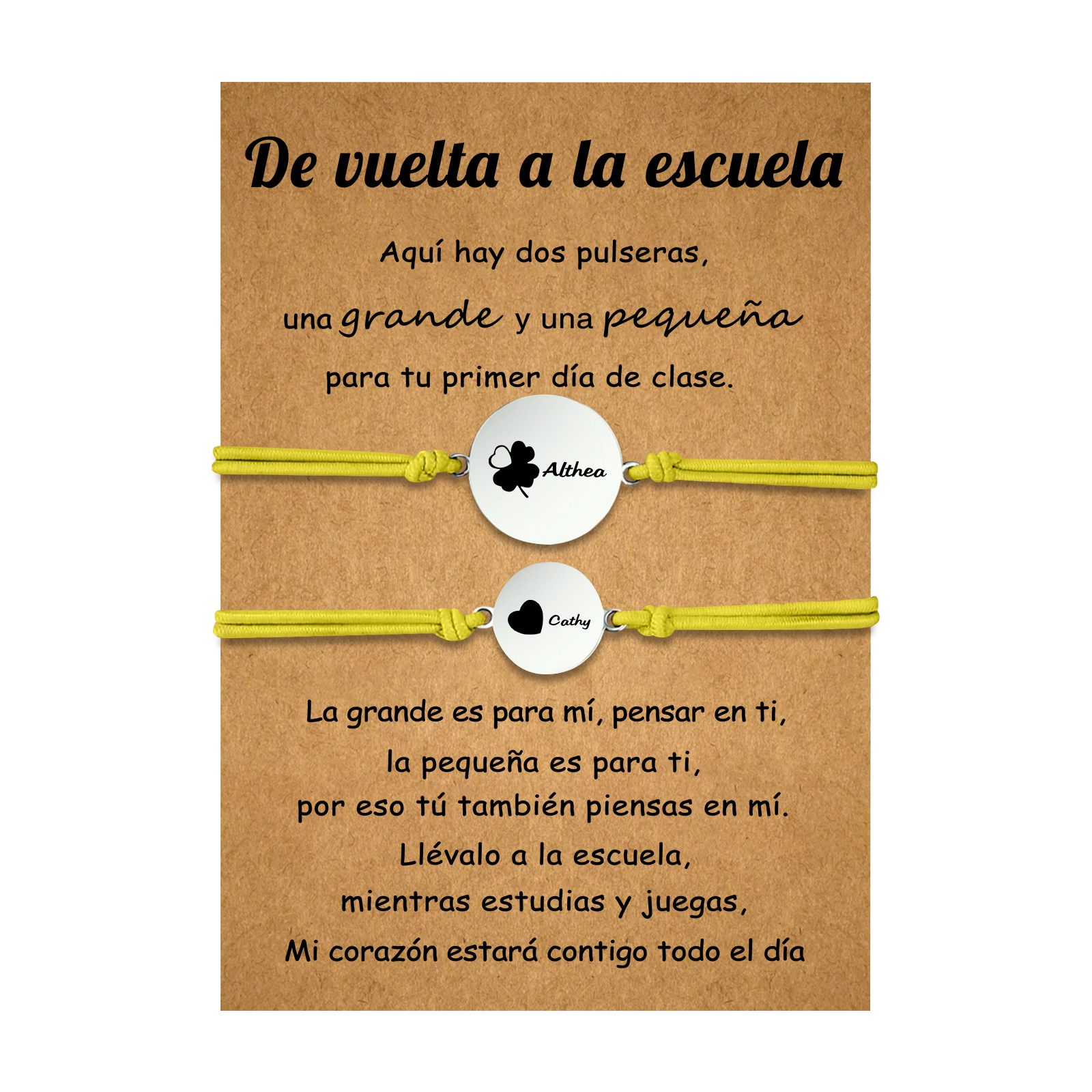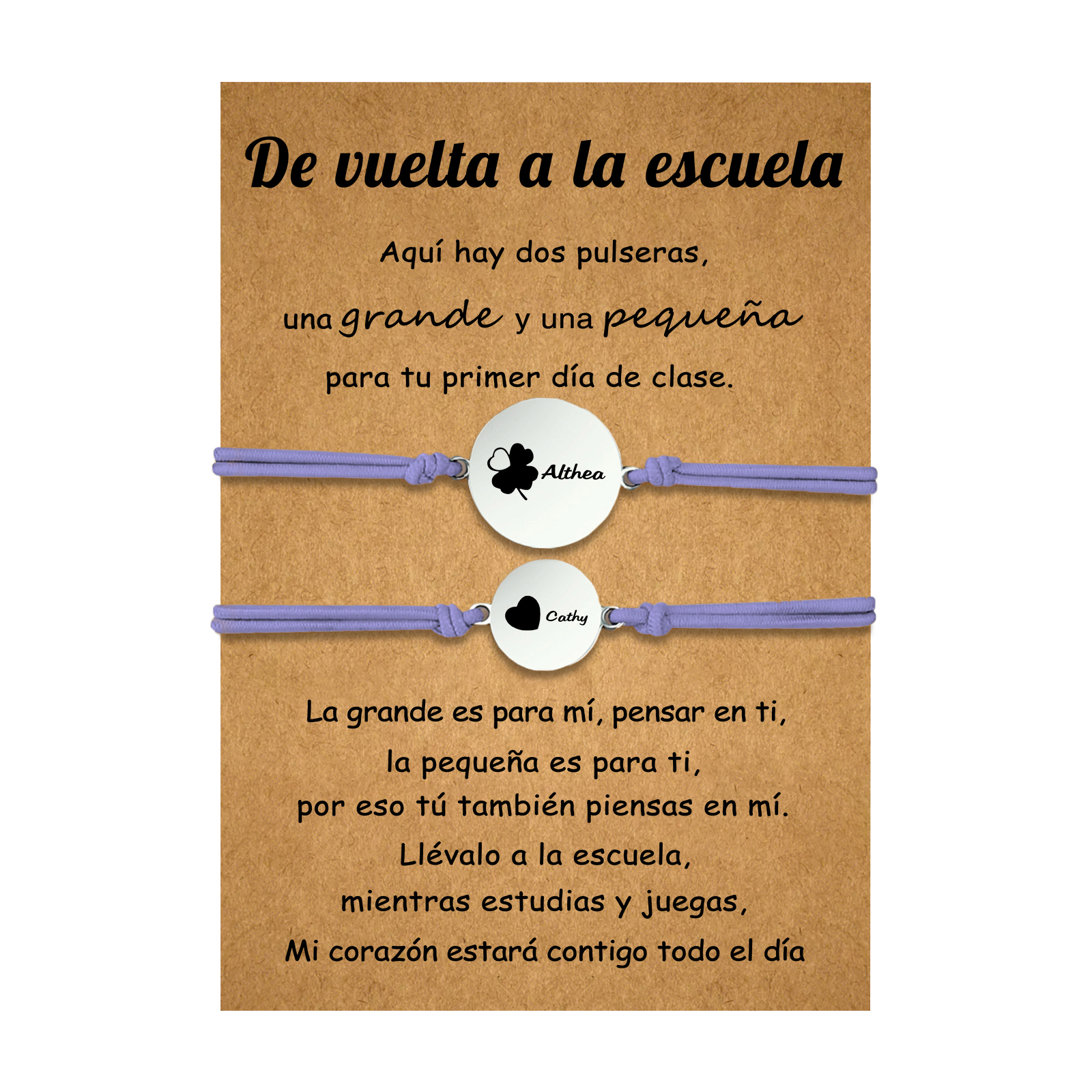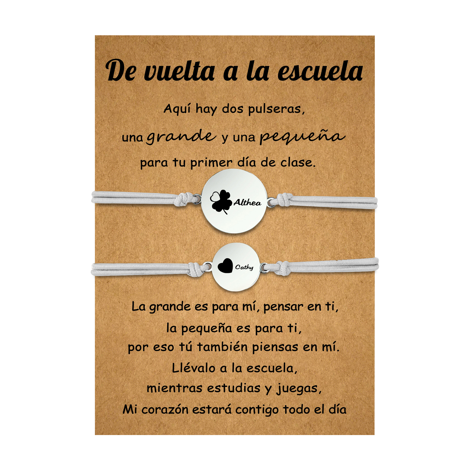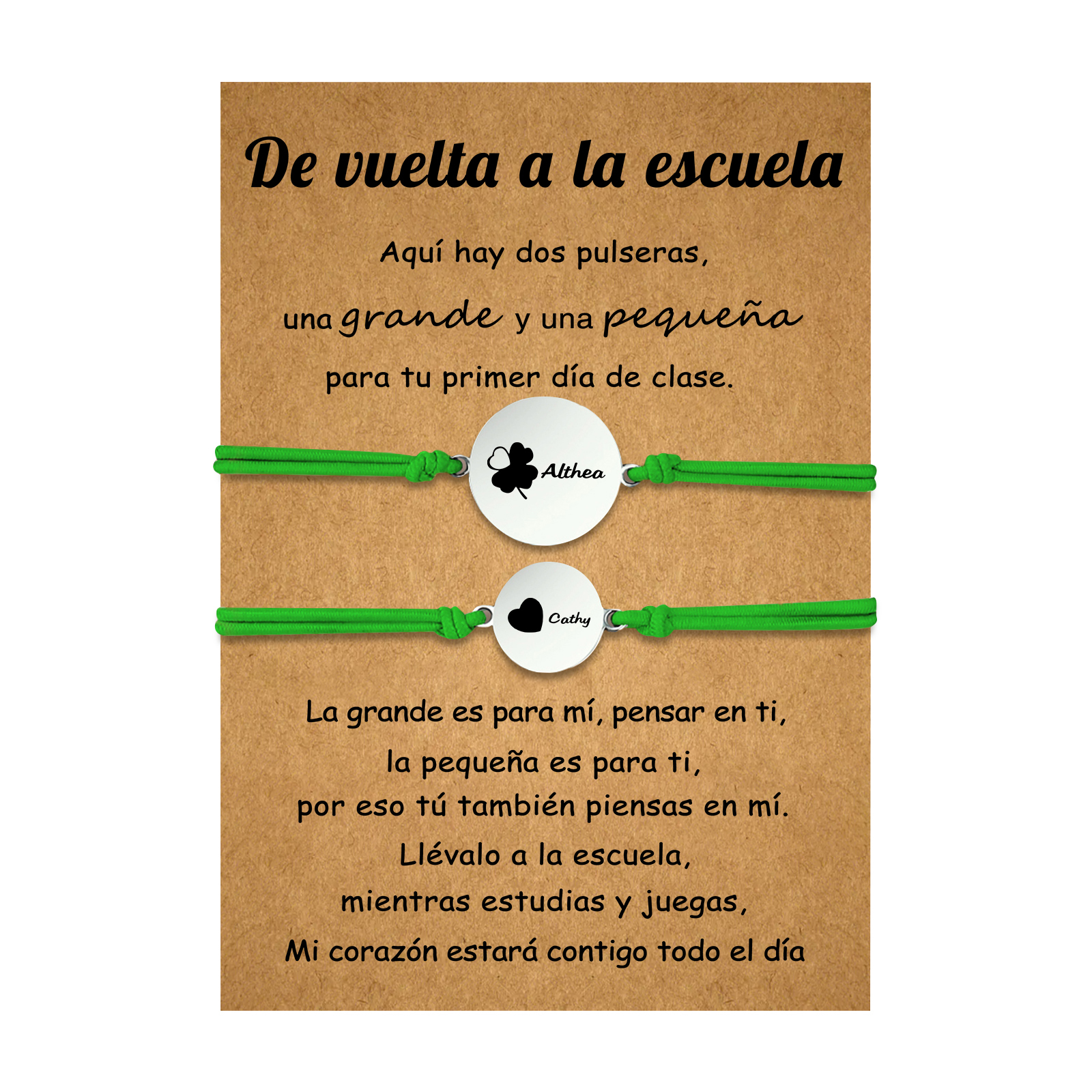 Unidad de 2 pulseras de trébol de cuatro hojas de 2 nombres personalizados - Regalos de regreso a la escuela