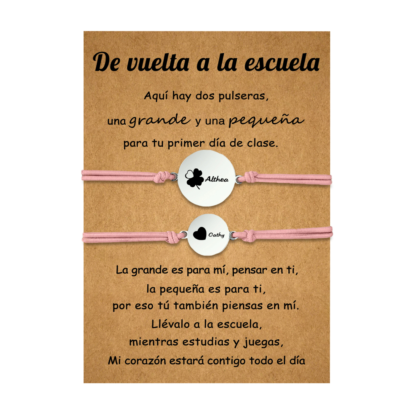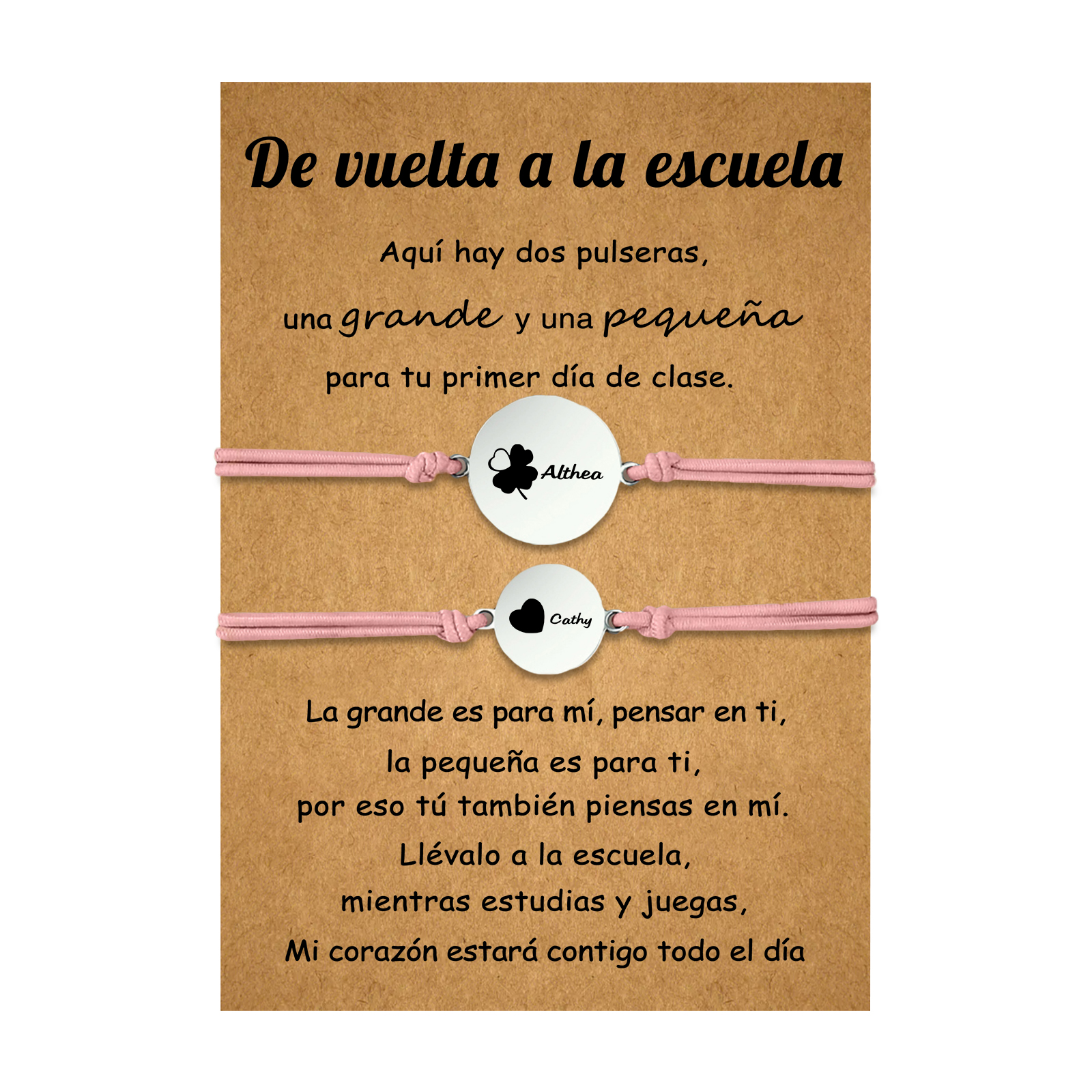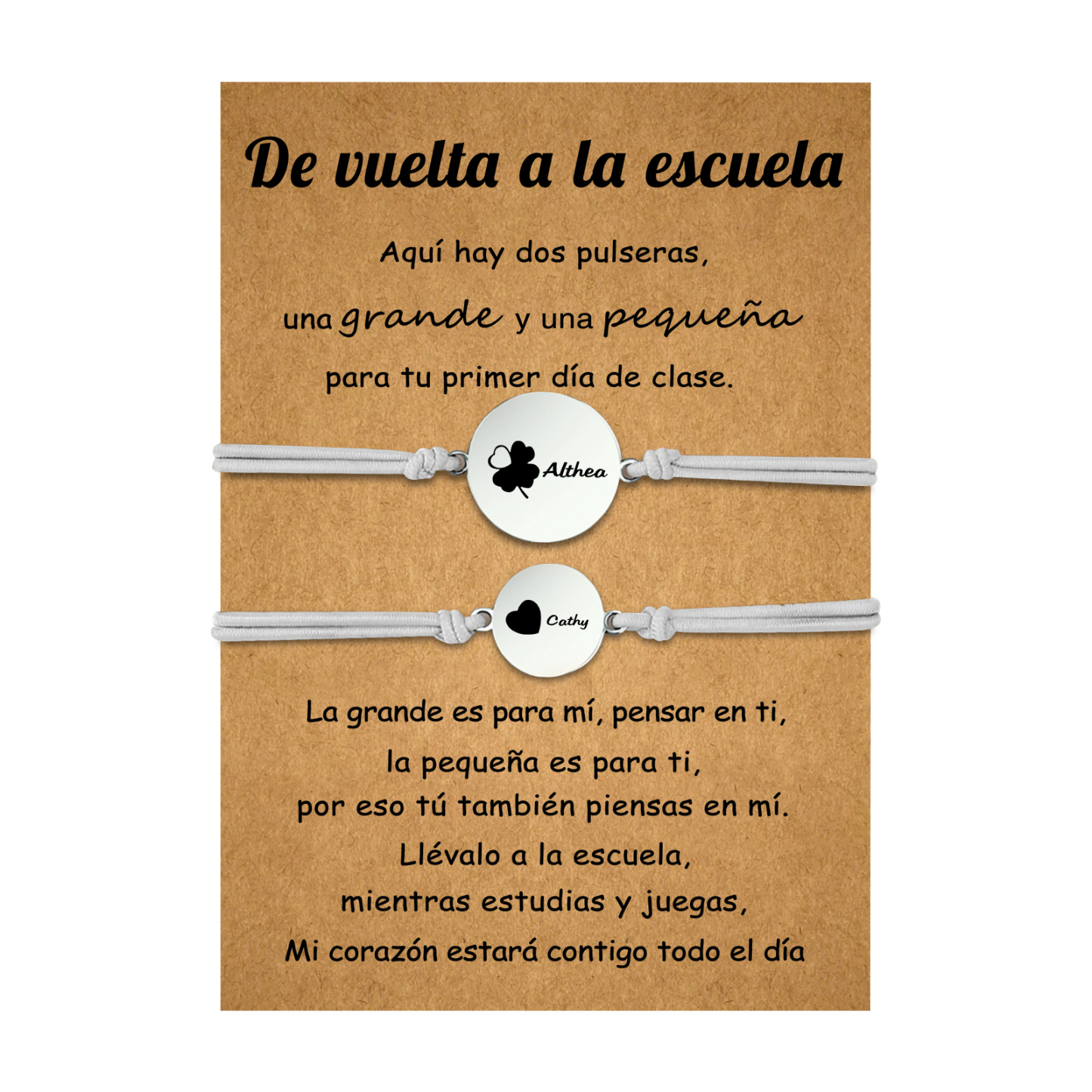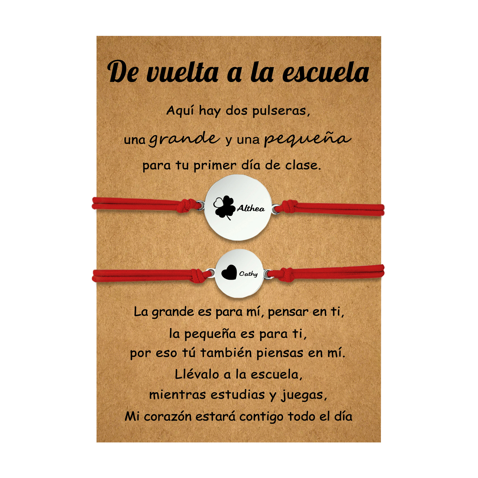 Unidad de 2 pulseras de trébol de cuatro hojas de 2 nombres personalizados - Regalos de regreso a la escuela