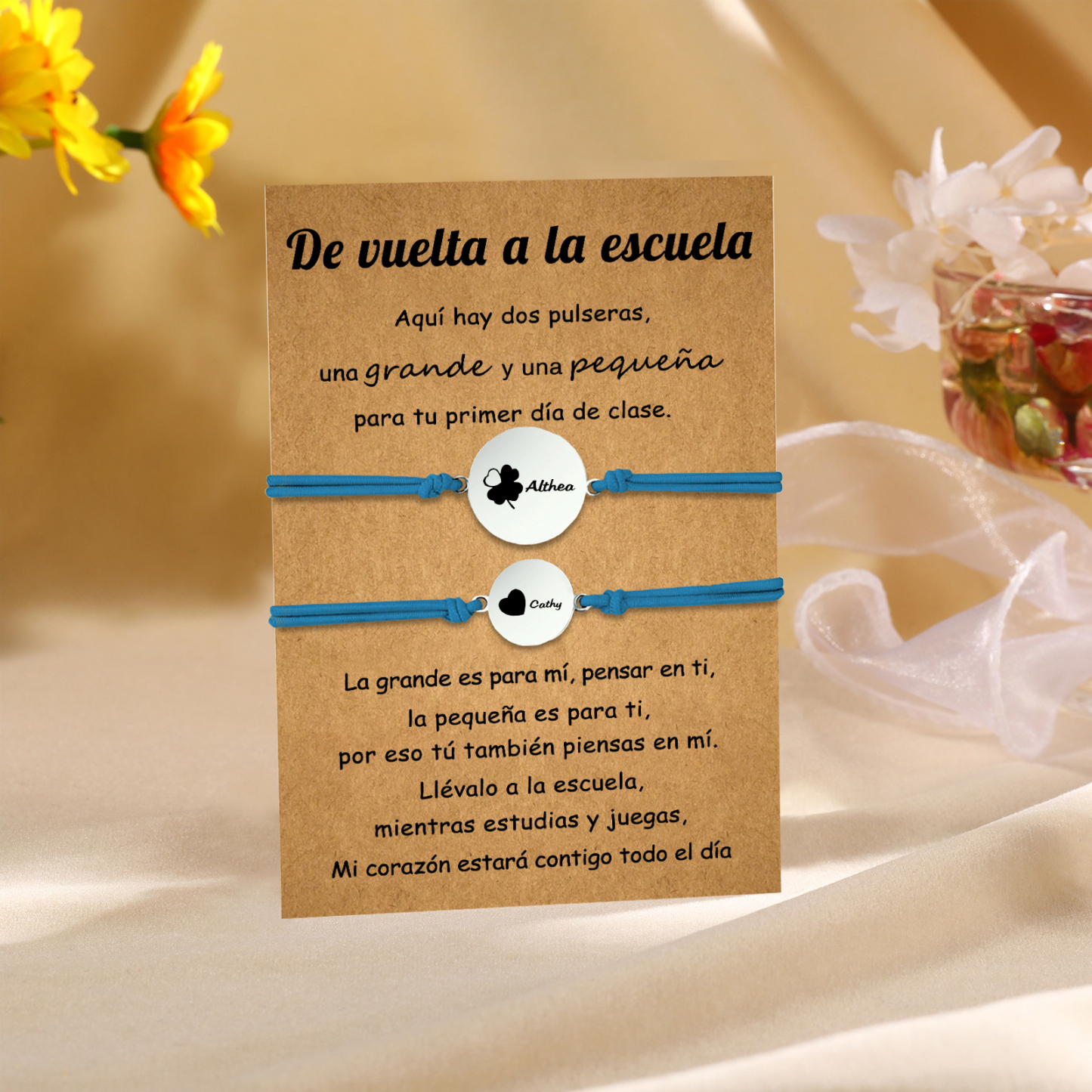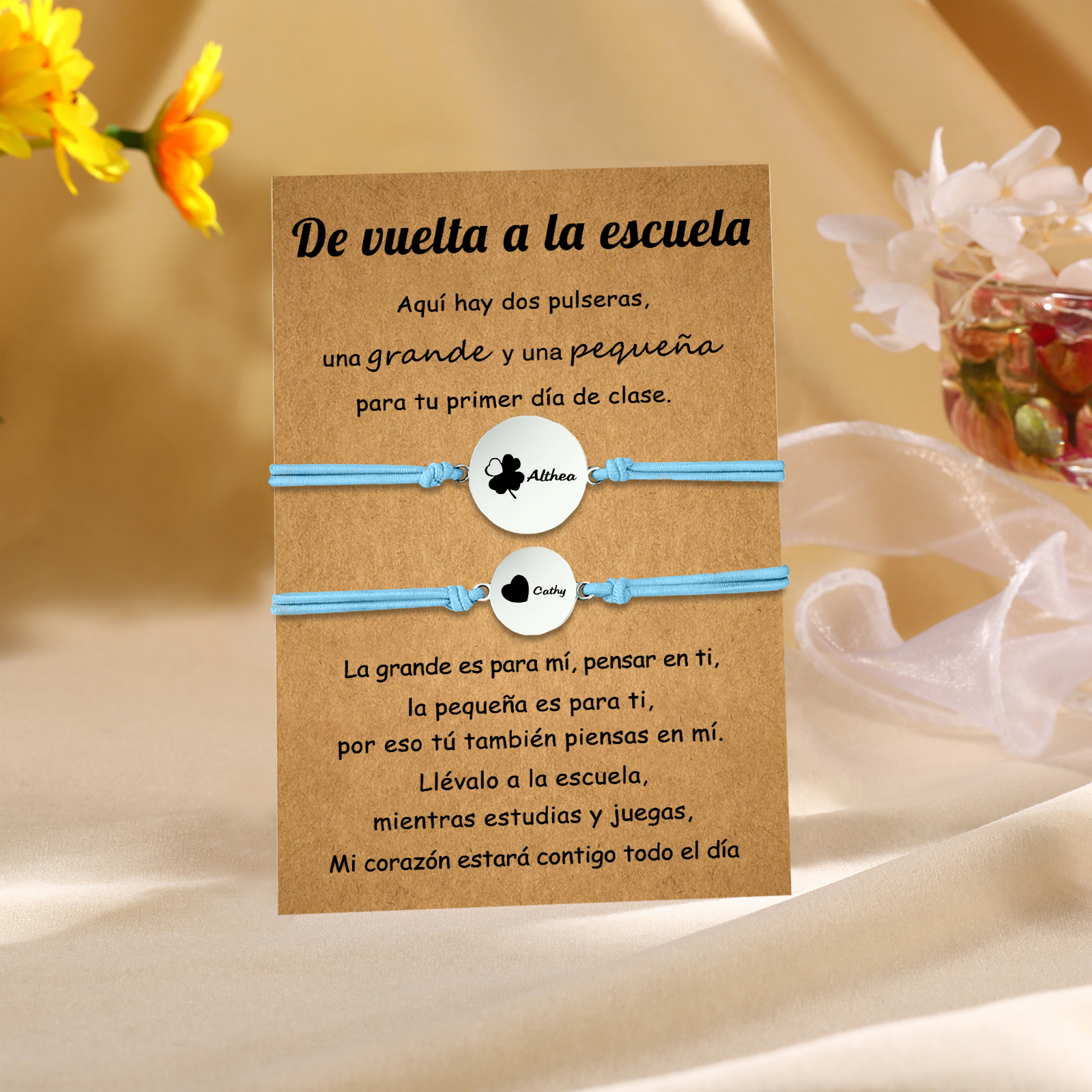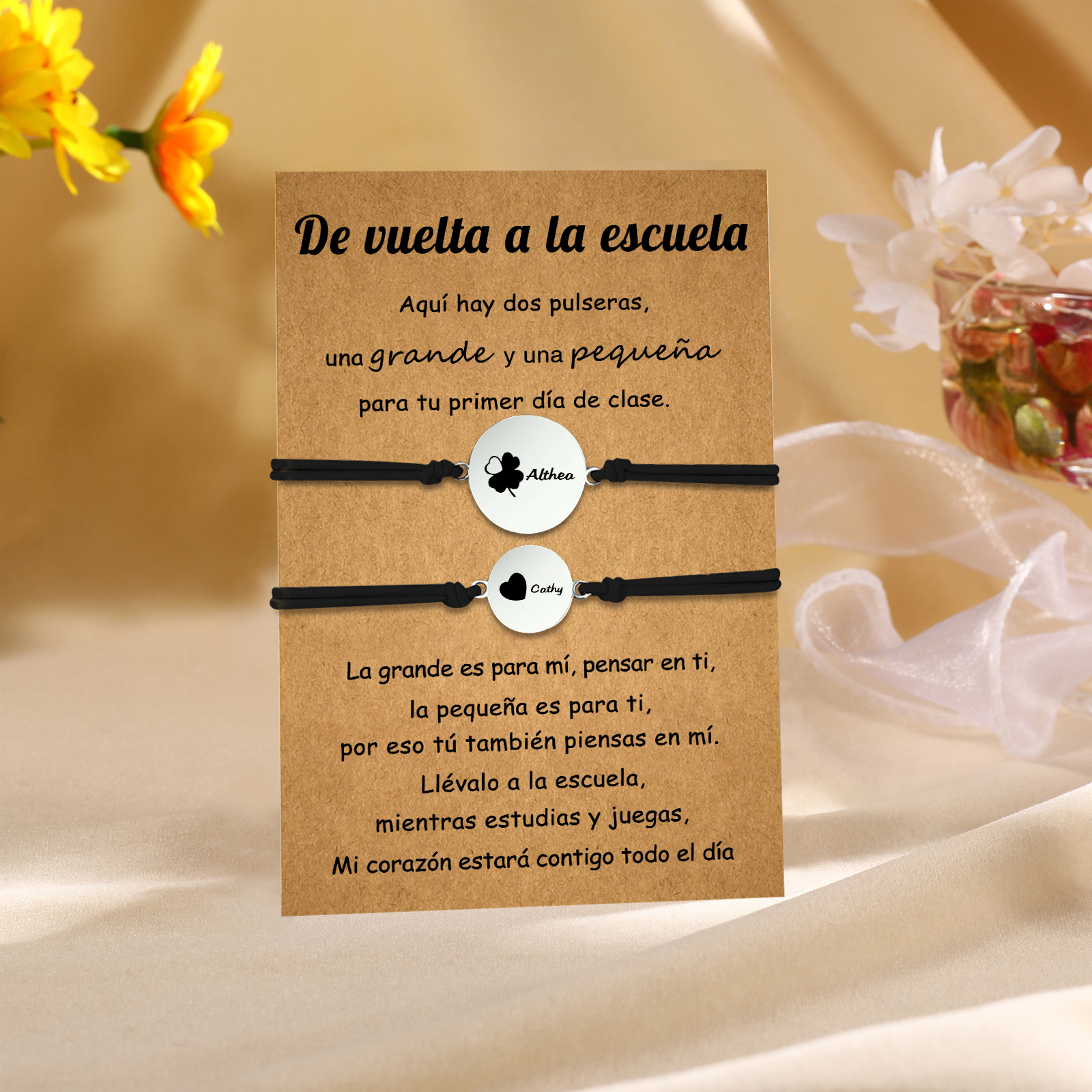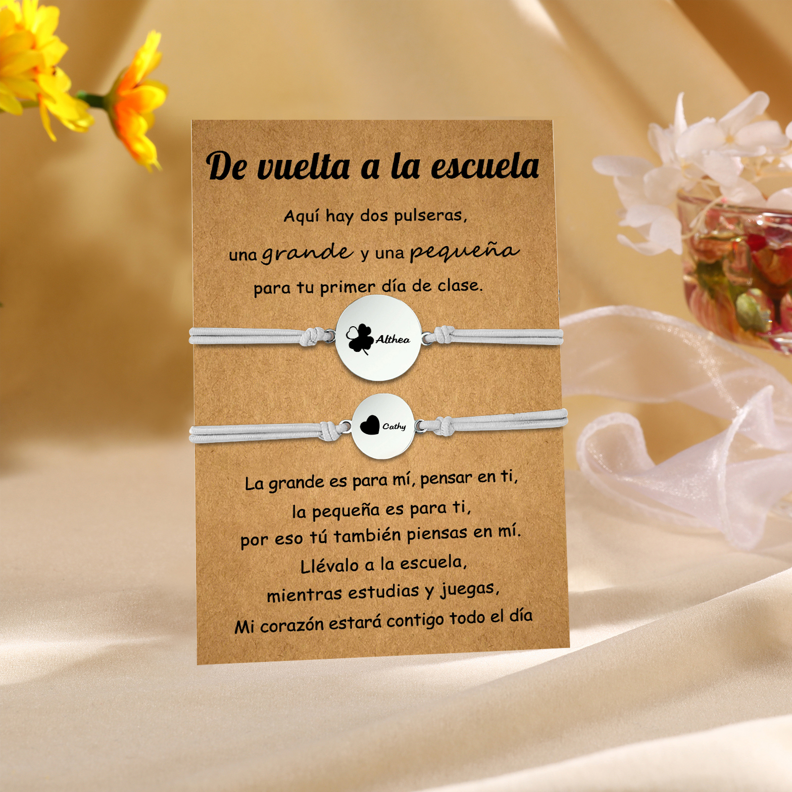 Unidad de 2 pulseras de trébol de cuatro hojas de 2 nombres personalizados - Regalos de regreso a la escuela