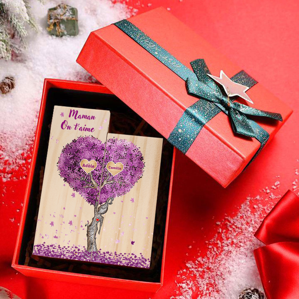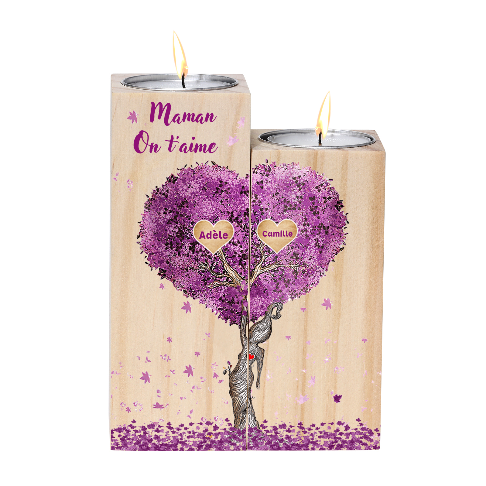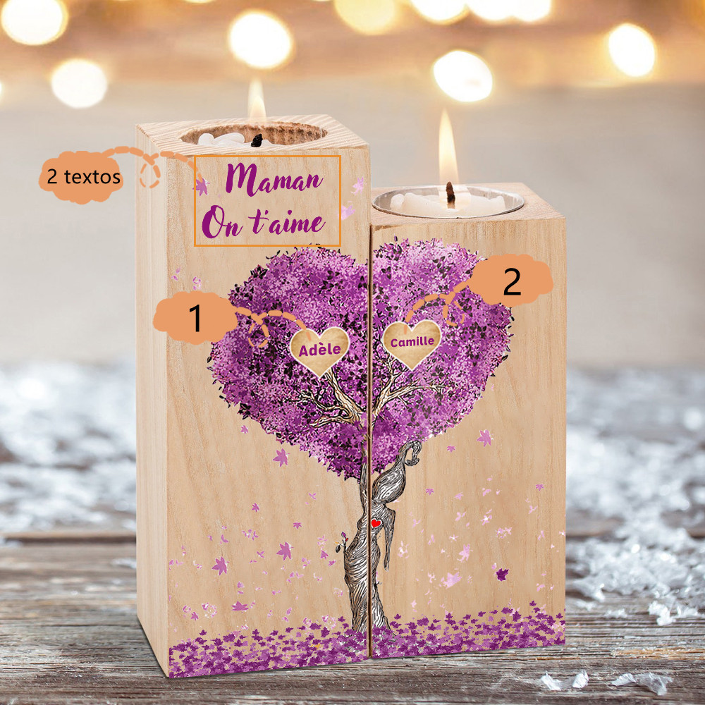 A familia-Candelero de madera sin vela Árbol de la Vida Árbol Genealógico 2 nombres y 2 textos personalizados