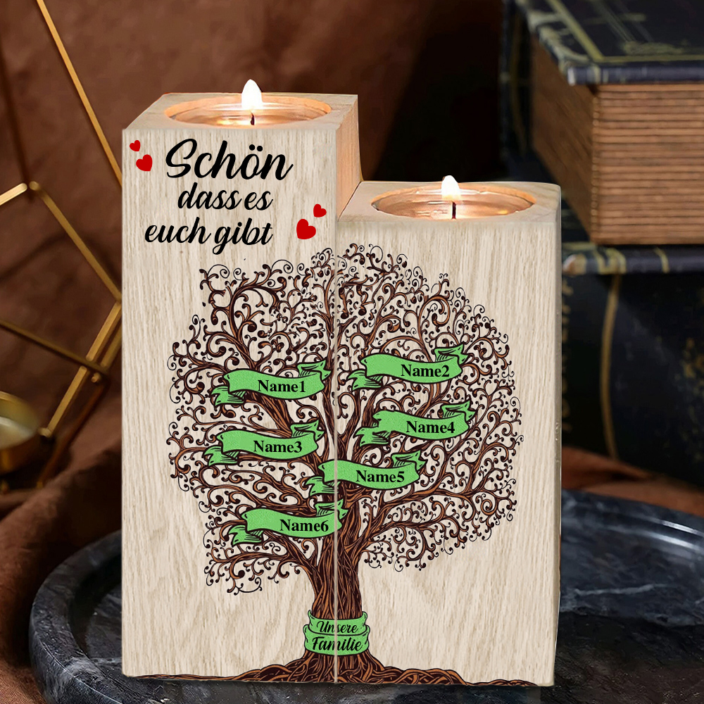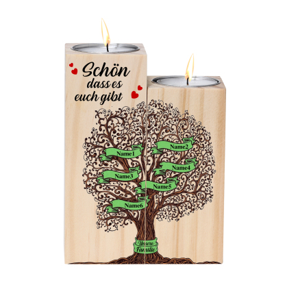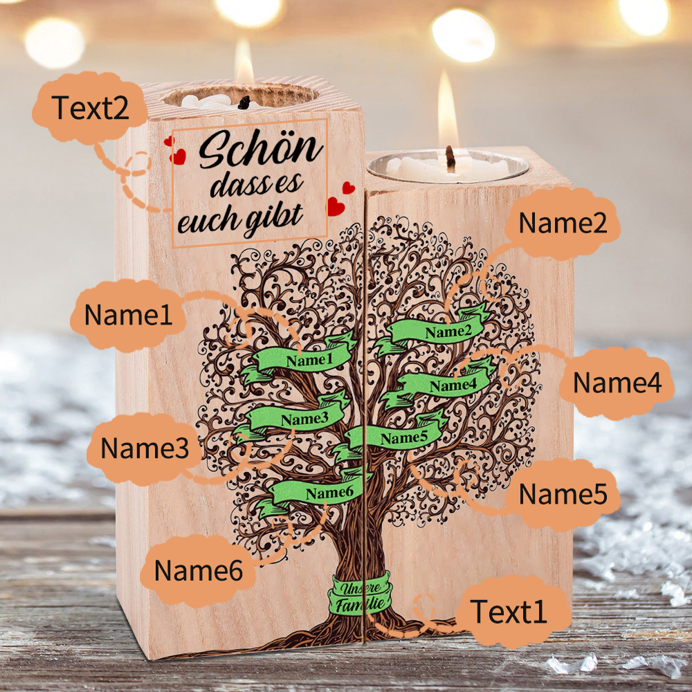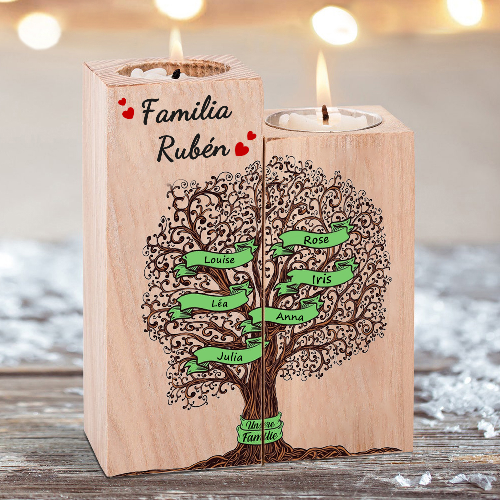 A familia-Candelero de madera sin vela Árbol de la Vida Árbol Genealógico 6 nombres y 2 textos personalizados