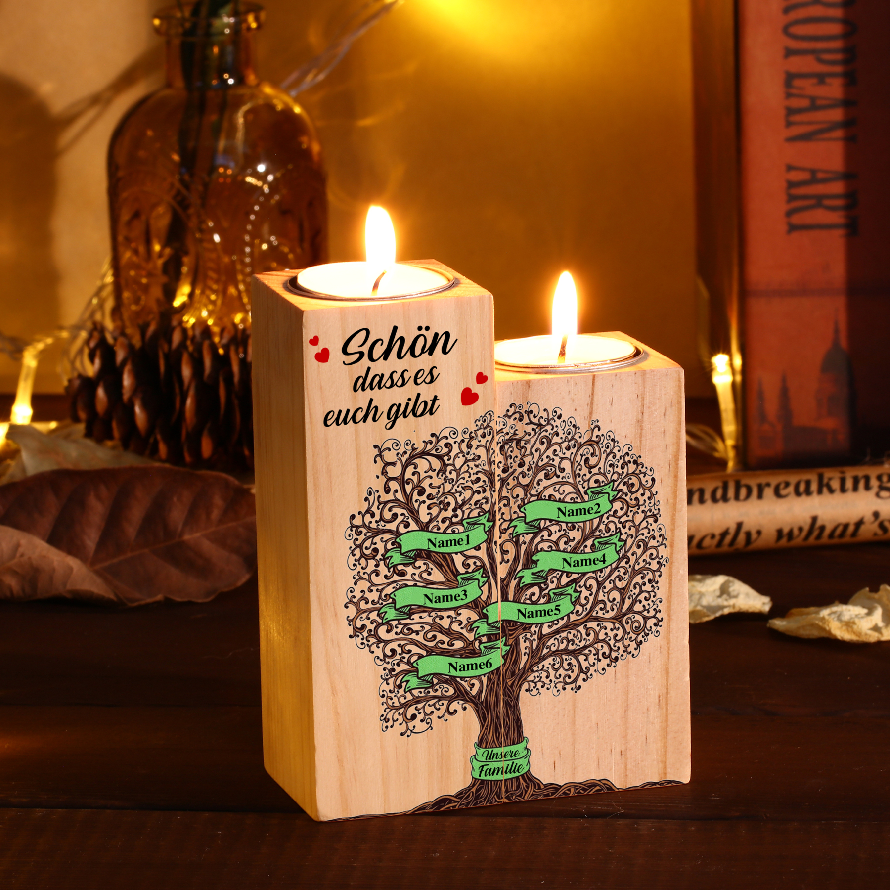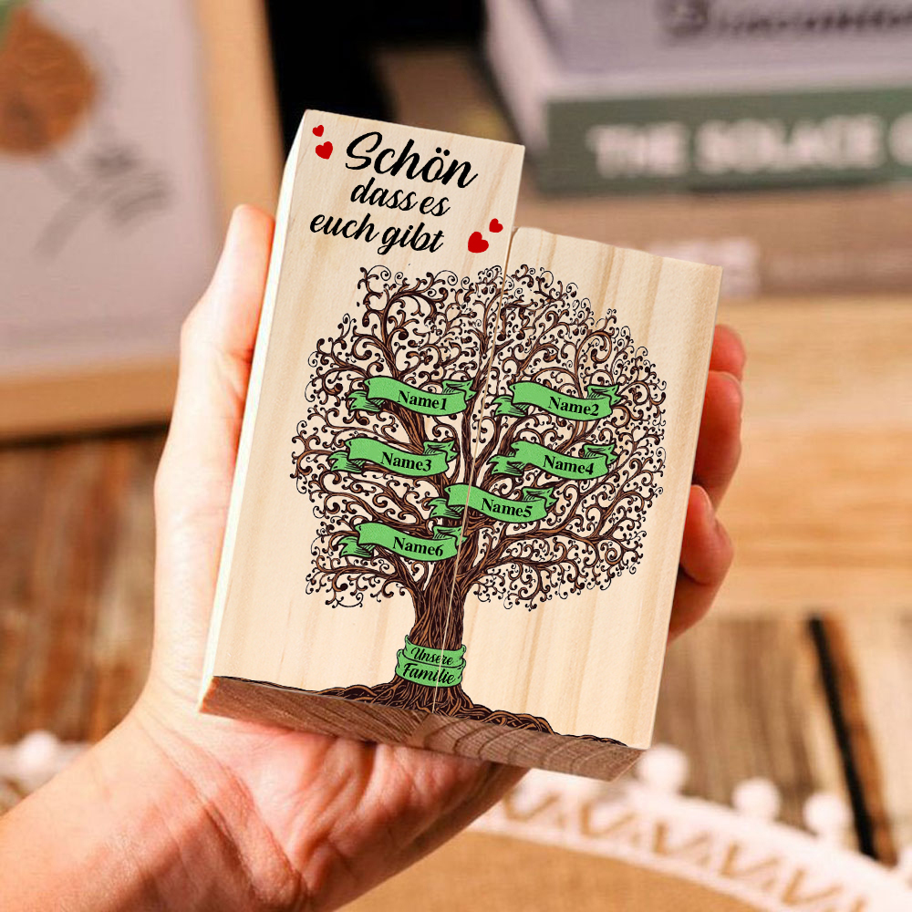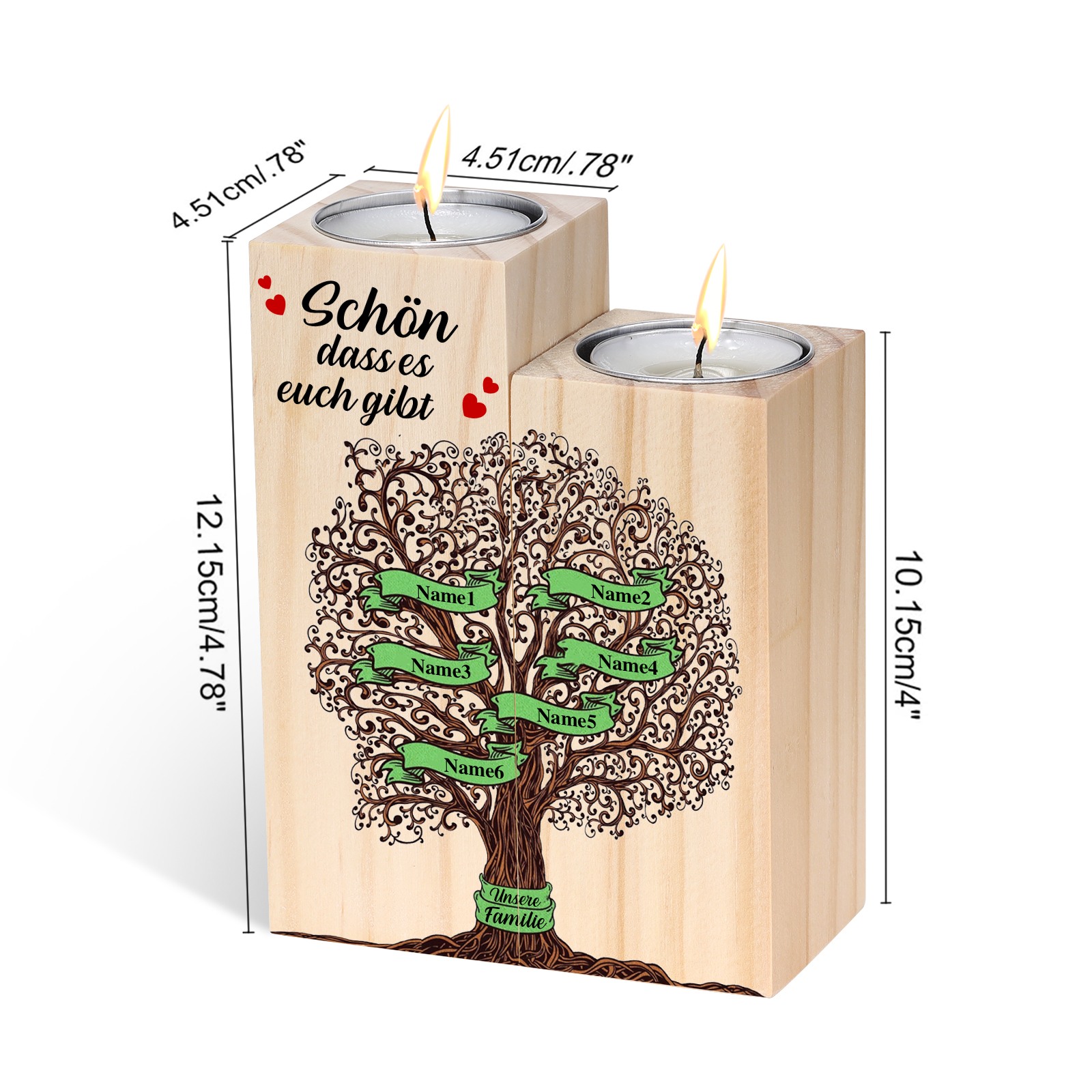A familia-Candelero de madera sin vela Árbol de la Vida Árbol Genealógico 6 nombres y 2 textos personalizados