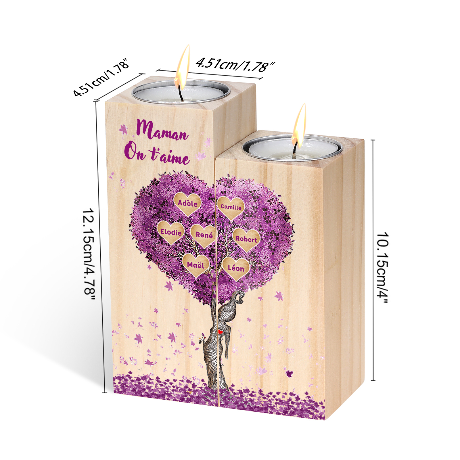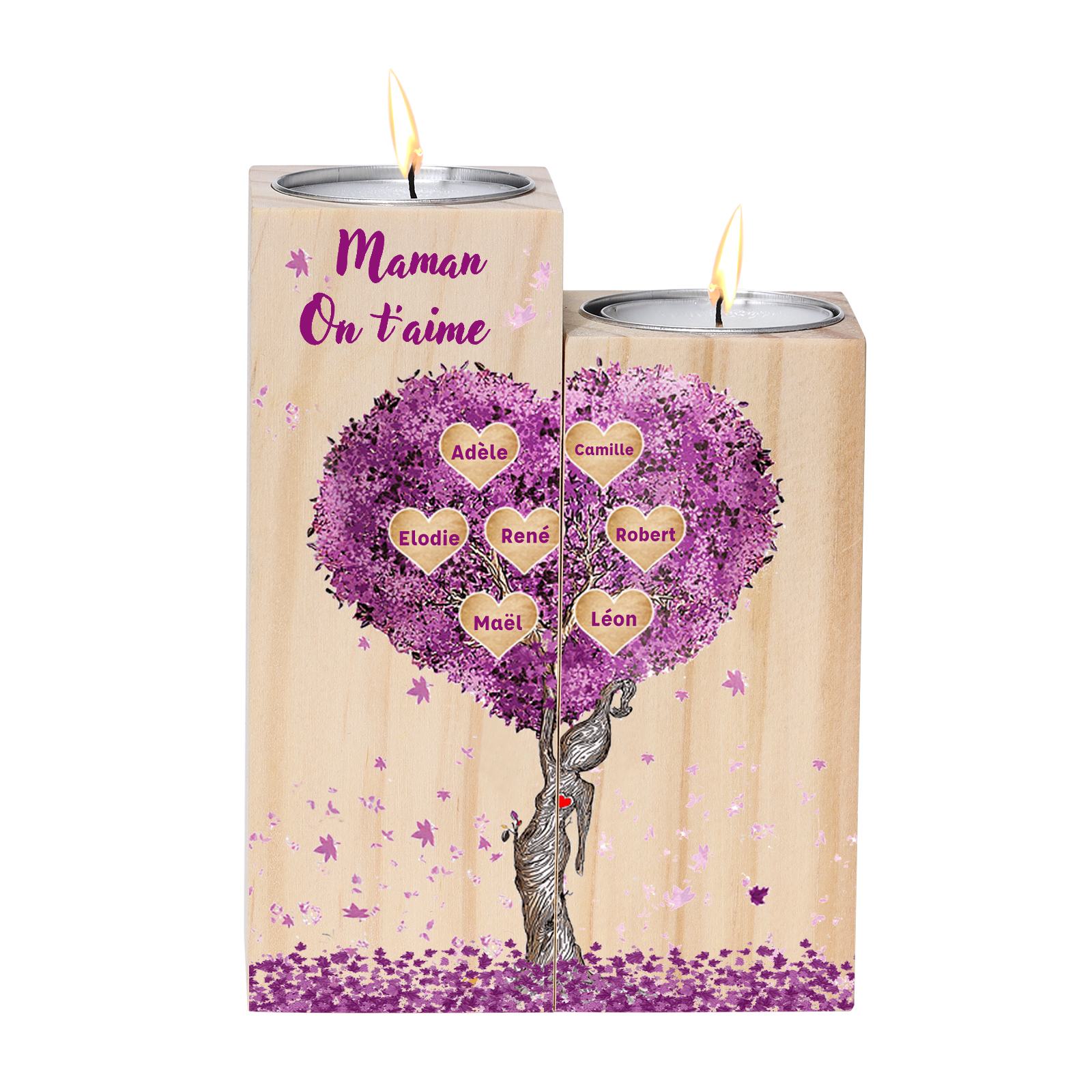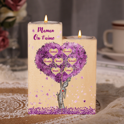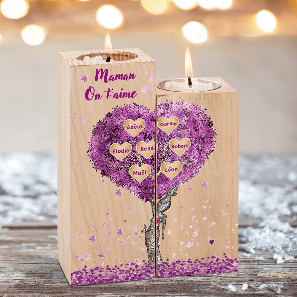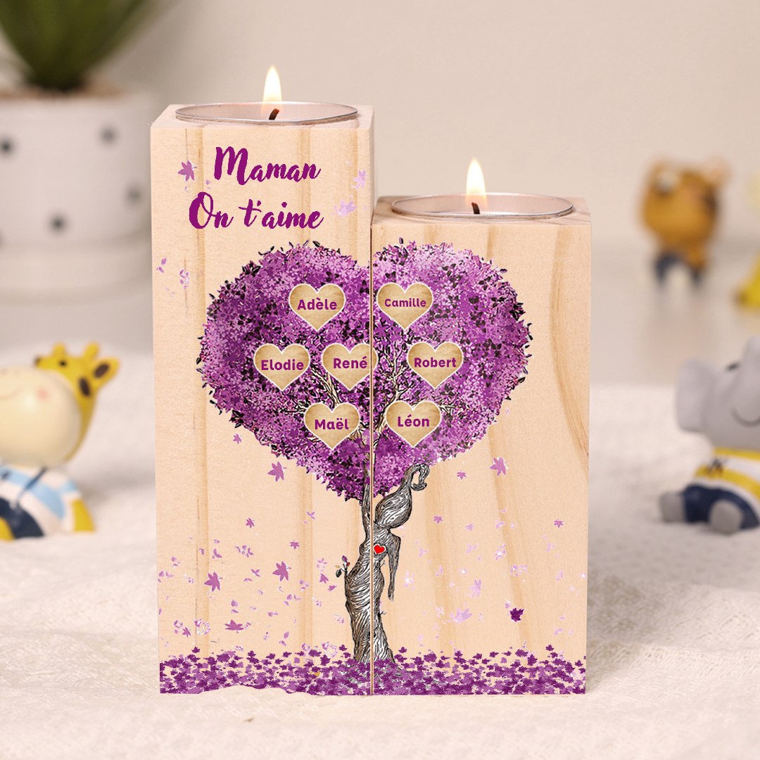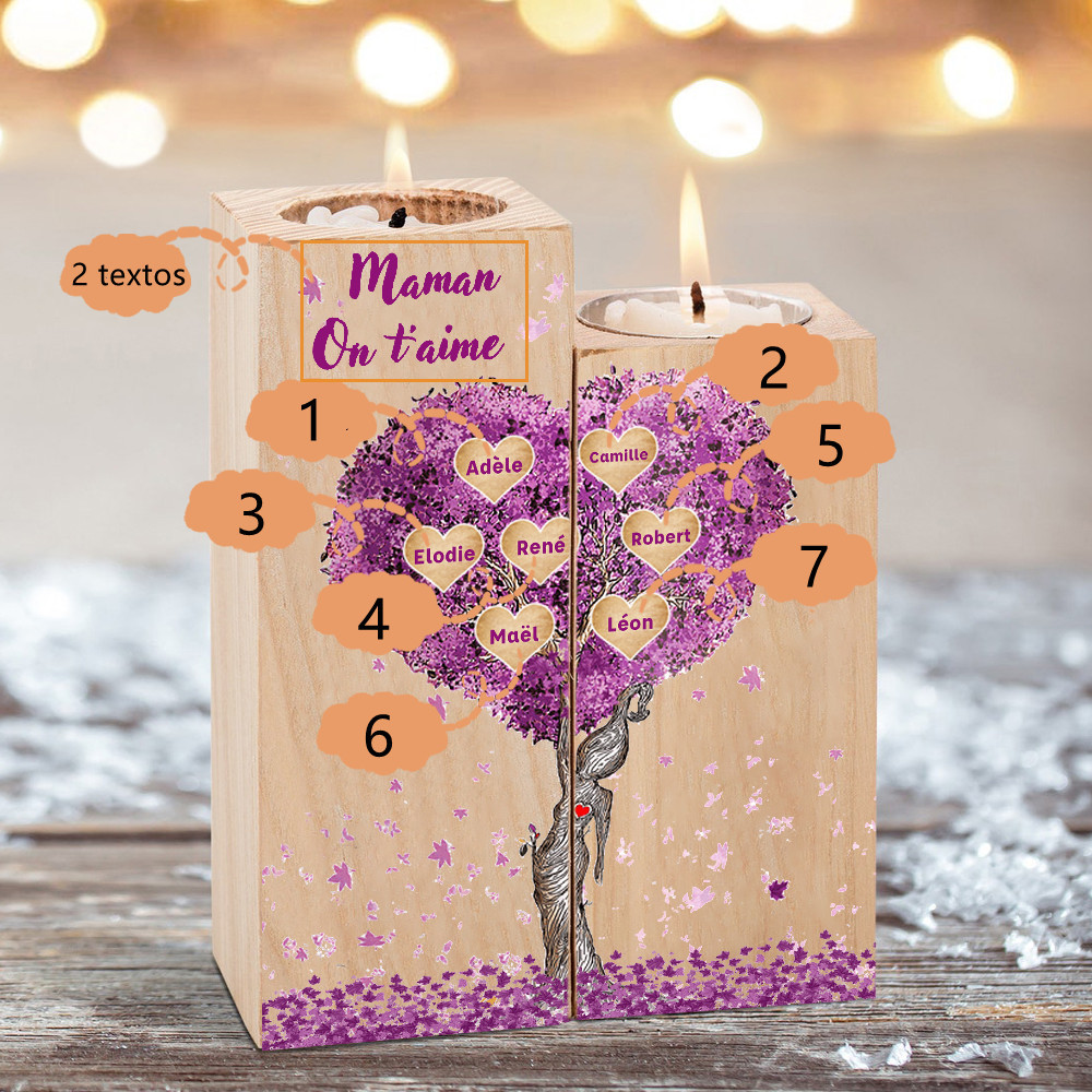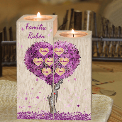 A familia-Candelero de madera sin vela Árbol de la Vida Árbol Genealógico 7 nombres y 2 textos personalizados