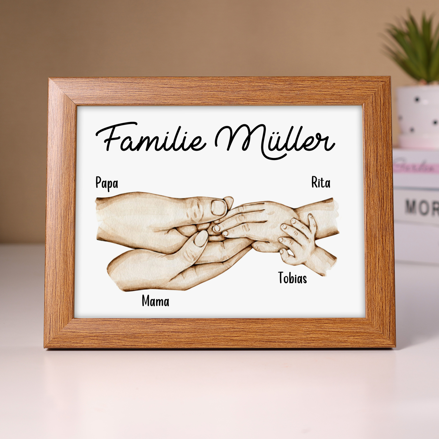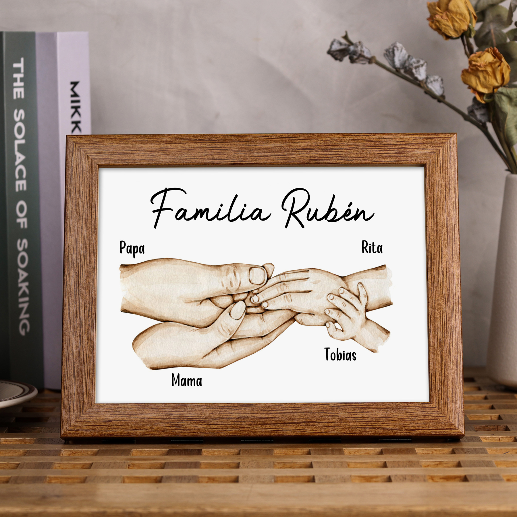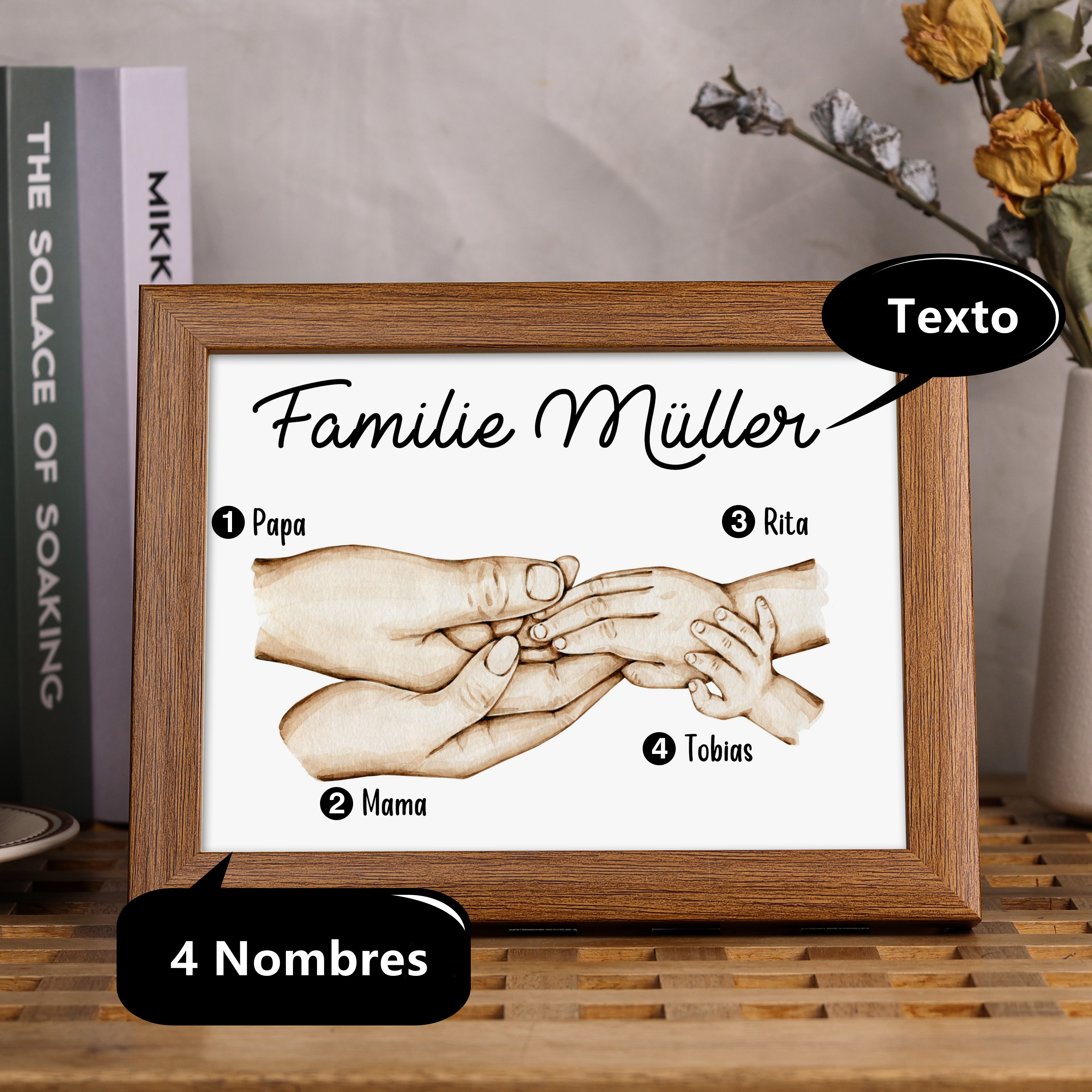 A la familia-Marco de madera mano a mano 4 nombres personalizados con texto