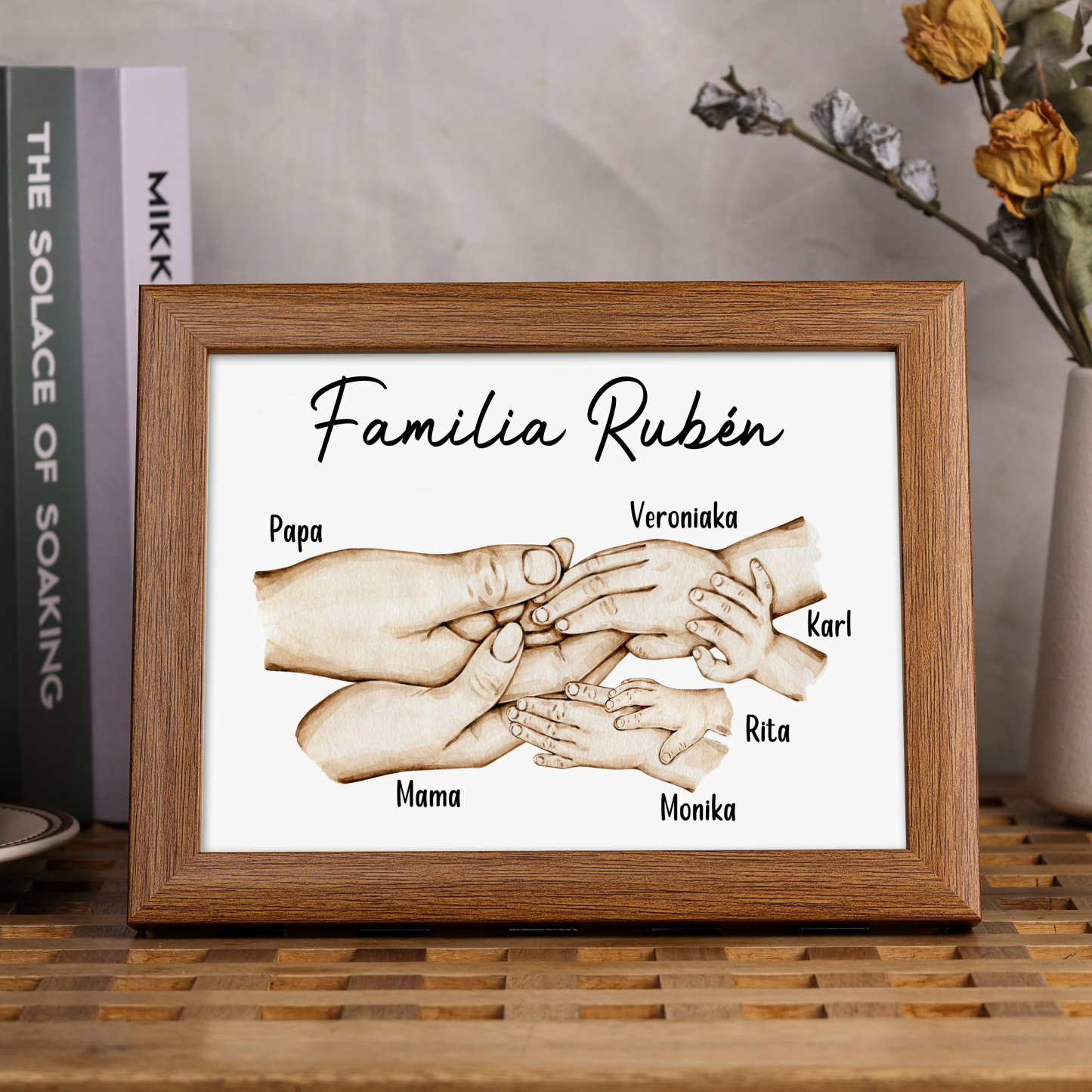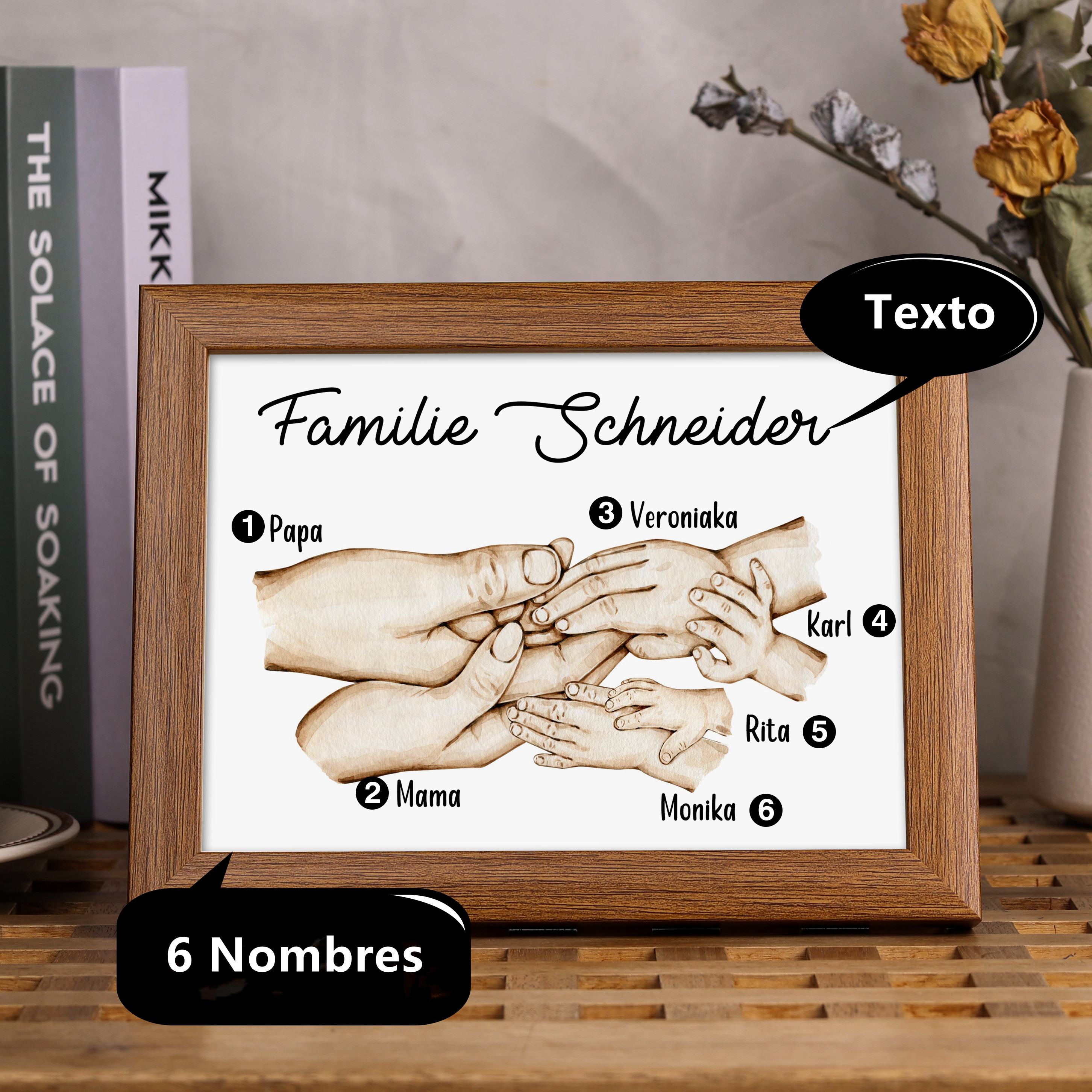 A la familia-Marco de madera mano a mano 6 nombres personalizados con texto