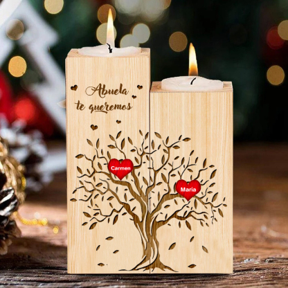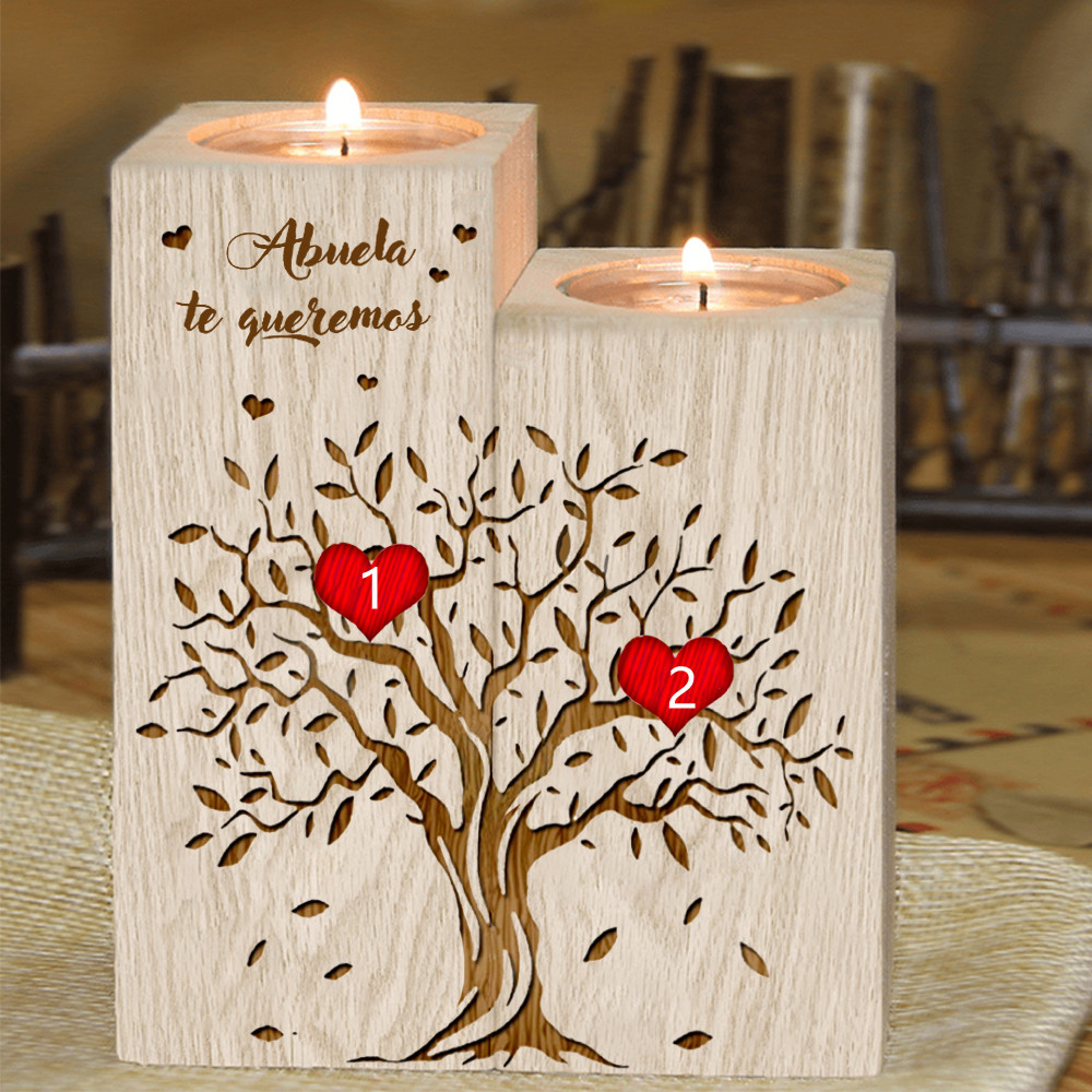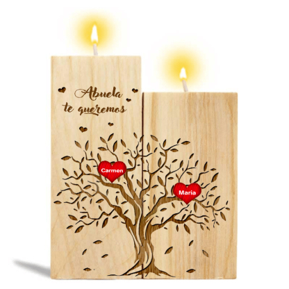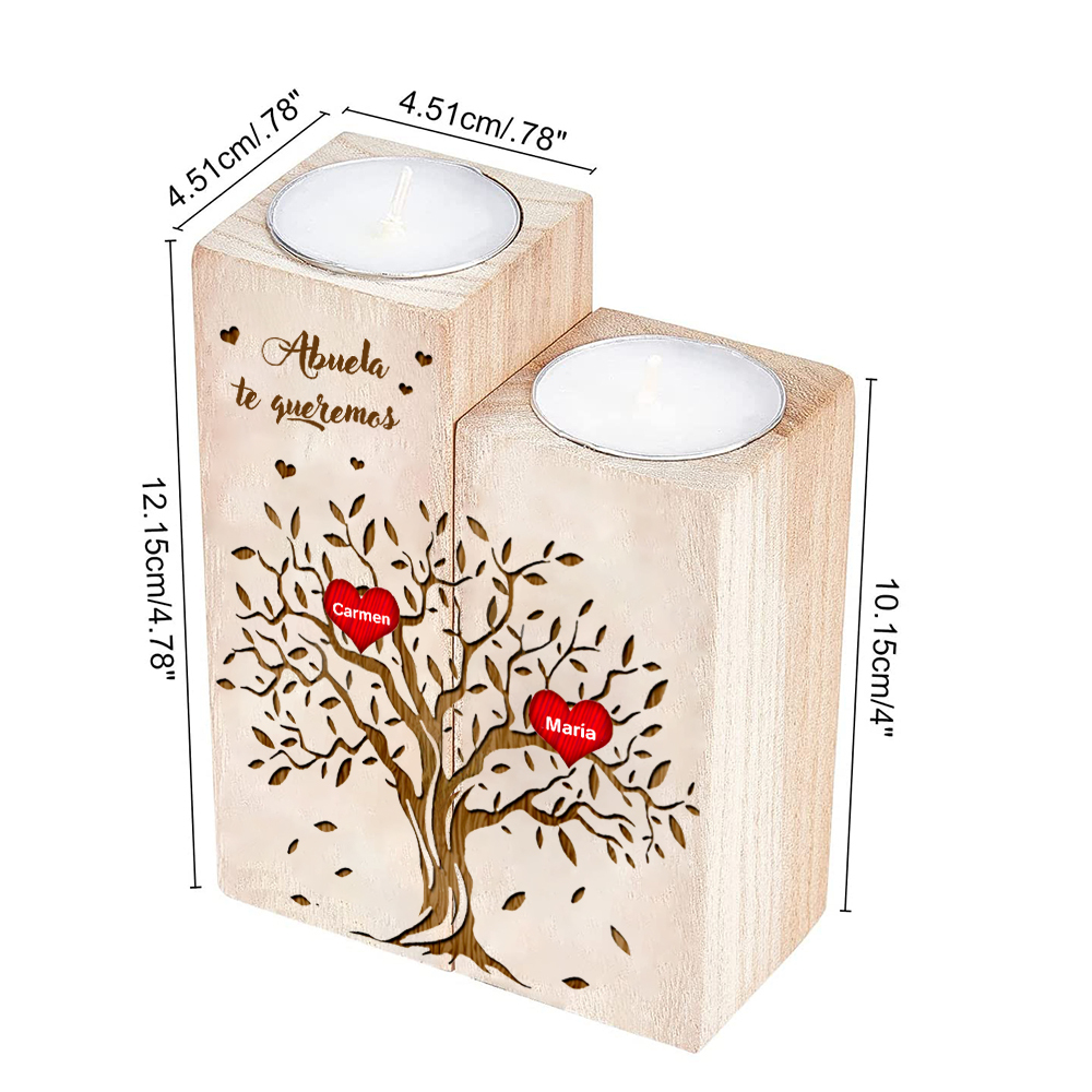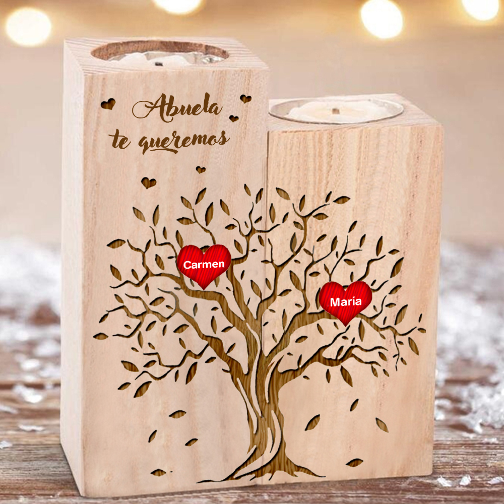 A mi abuela - Candelero de madera sin vela Árbol de la Vida Árbol Genealógico 2 nombres personalizados