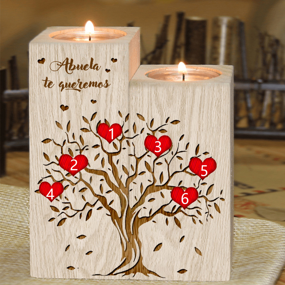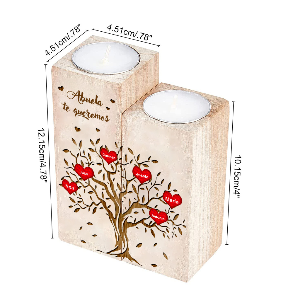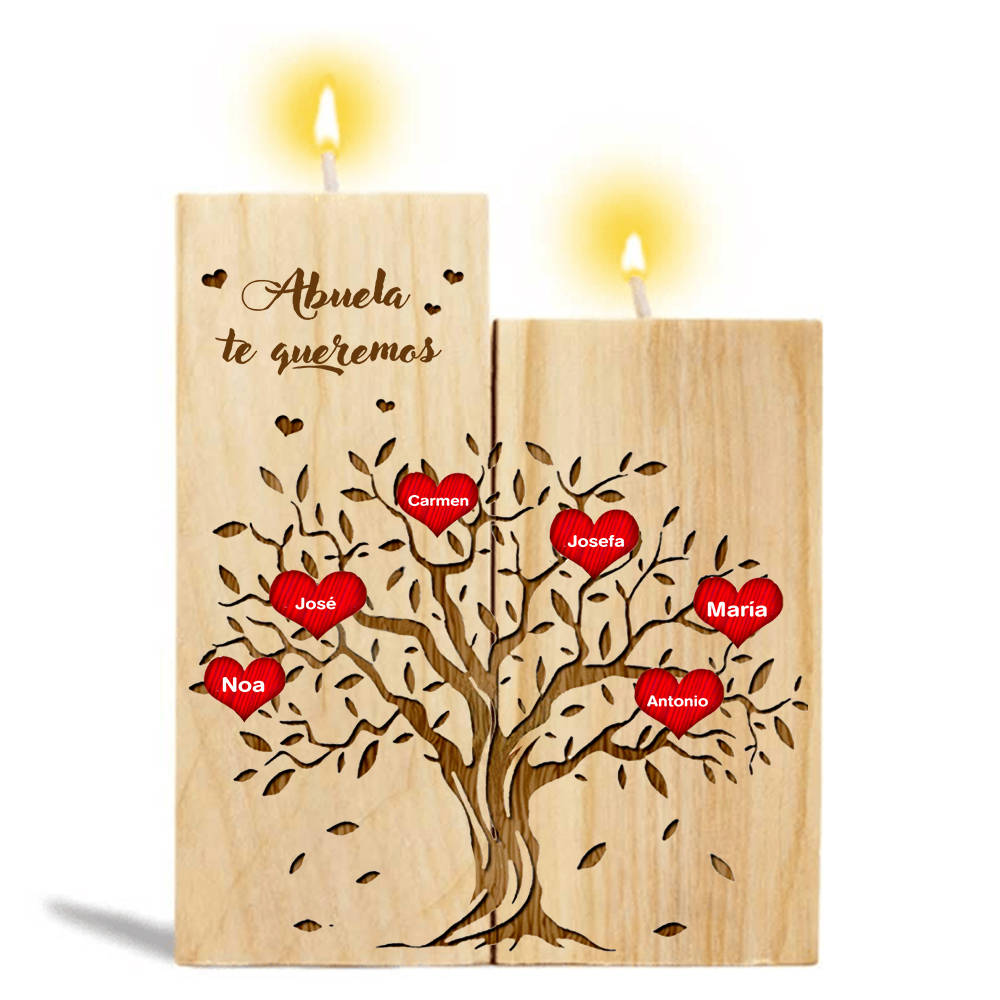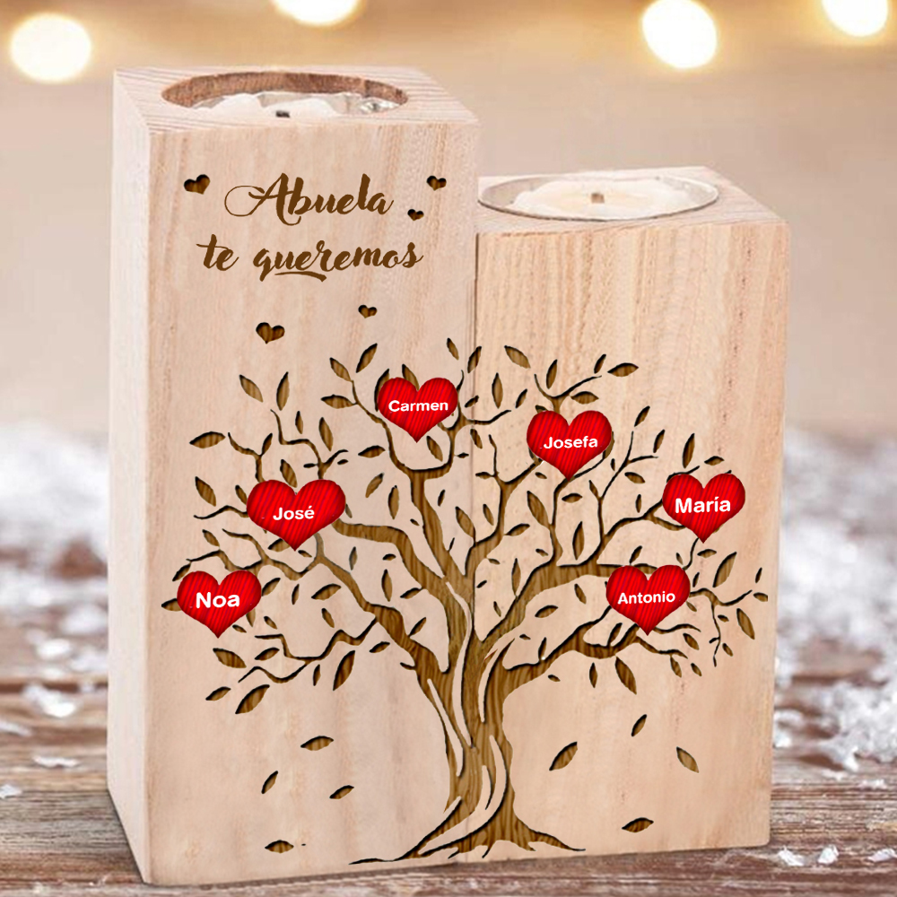 A mi abuela - Candelero de madera sin vela Árbol de la Vida Árbol Genealógico 6 nombres personalizados