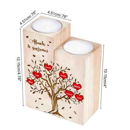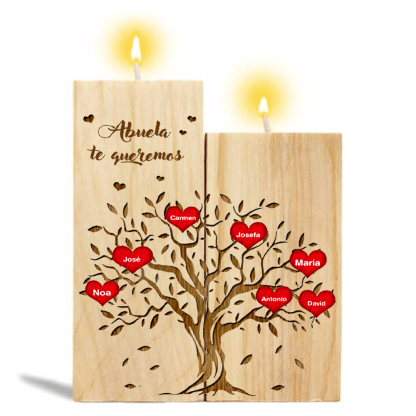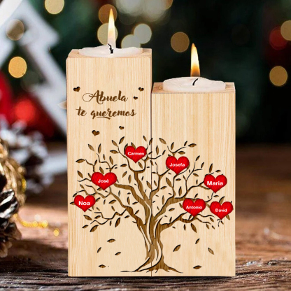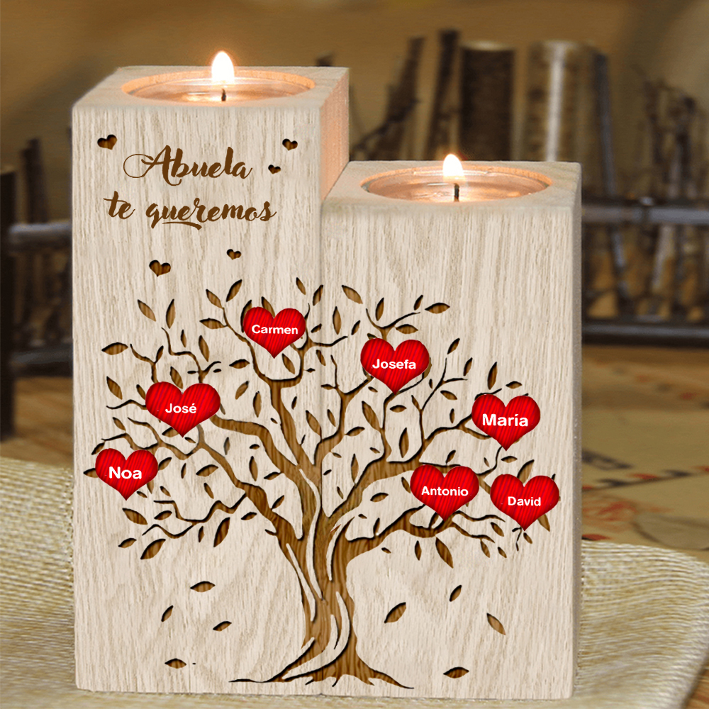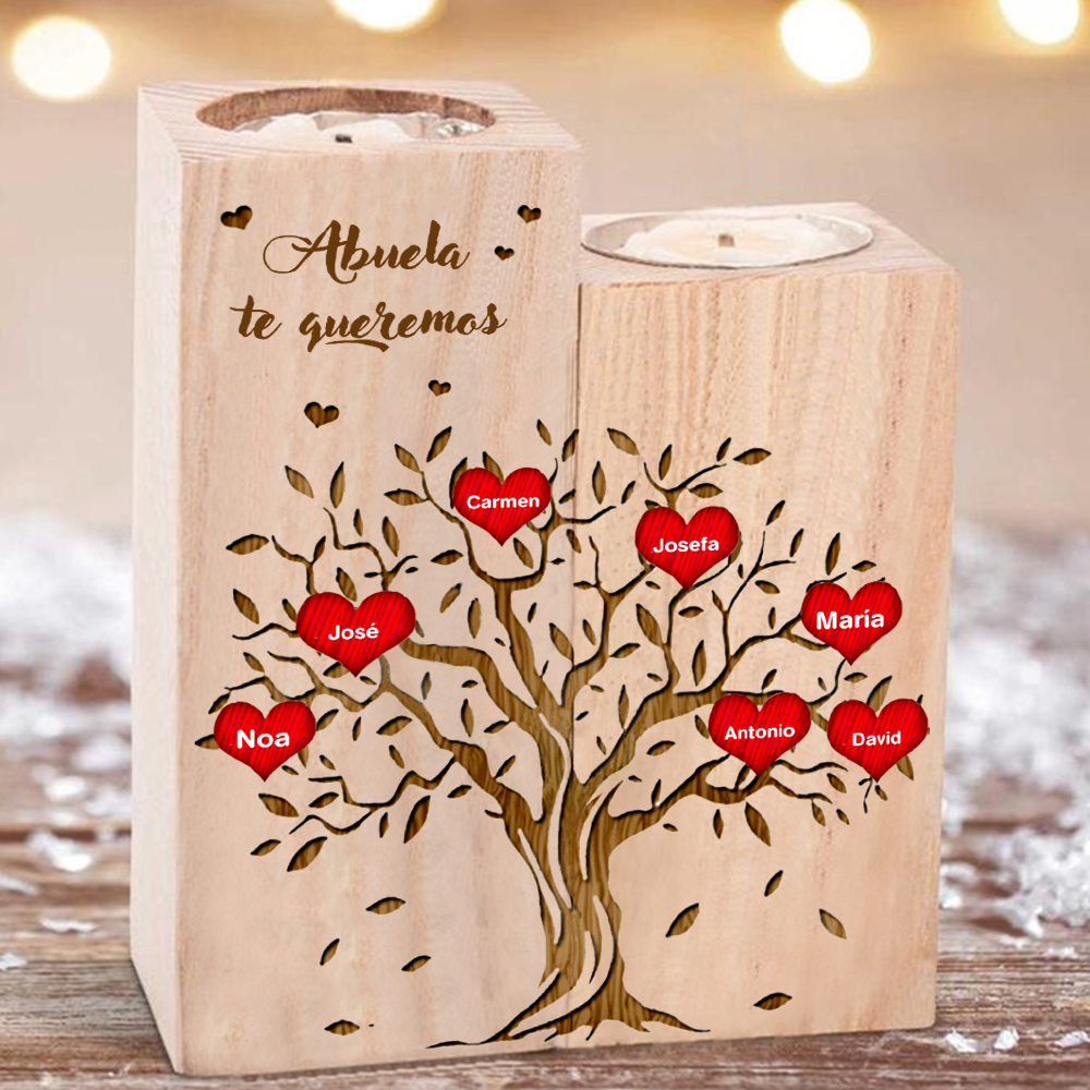 A mi abuela - Candelero de madera sin vela Árbol de la Vida Árbol Genealógico 7 nombres personalizados