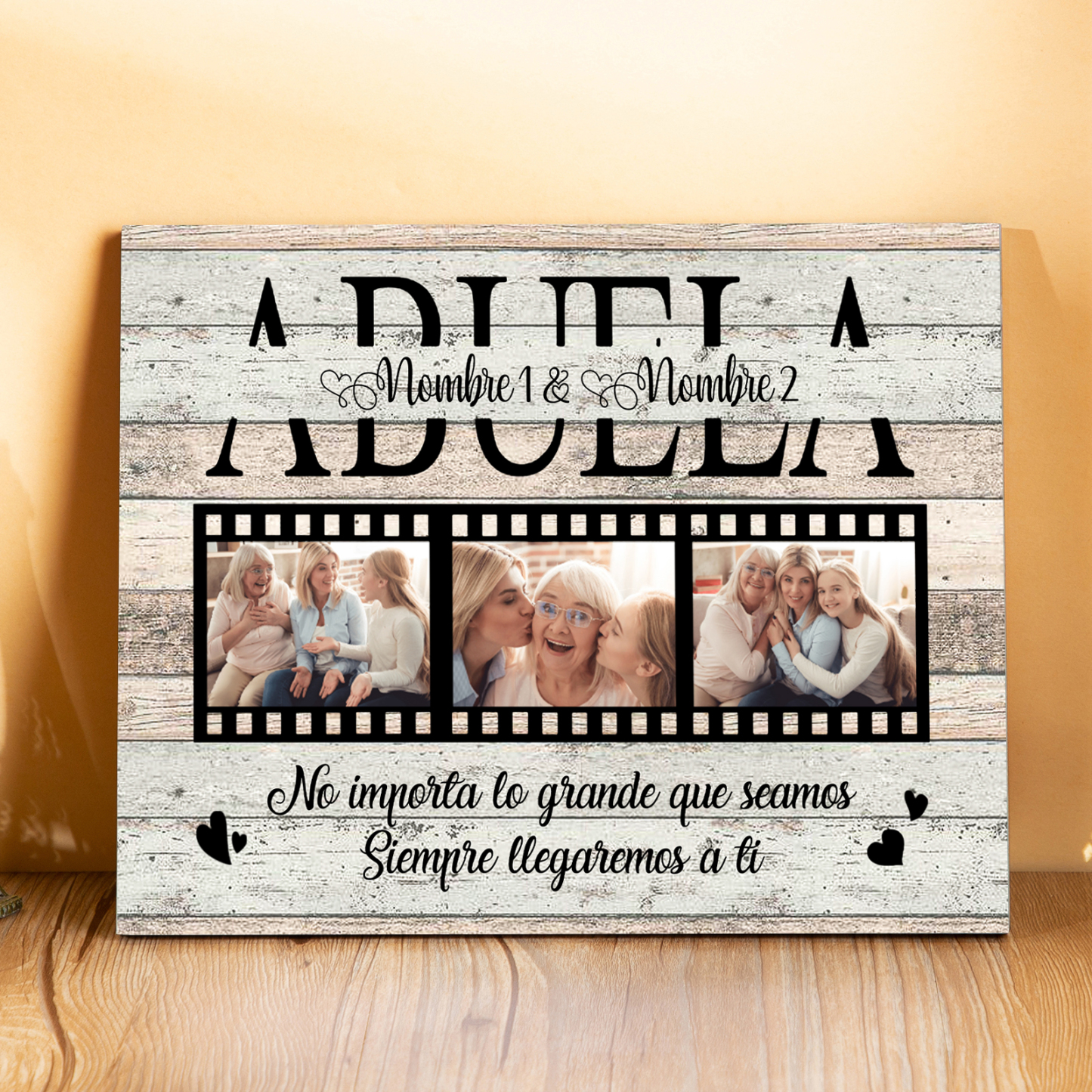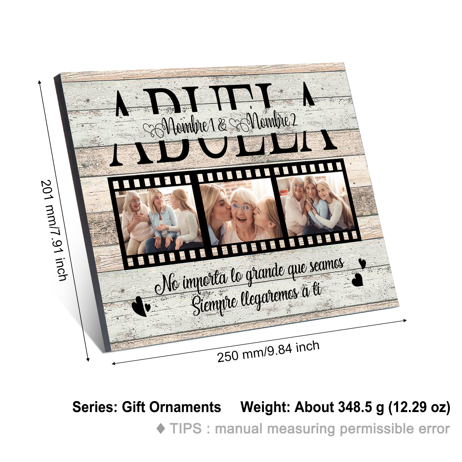 A mi abuela-Lámina marco de madera 3 foto personalizados con texto