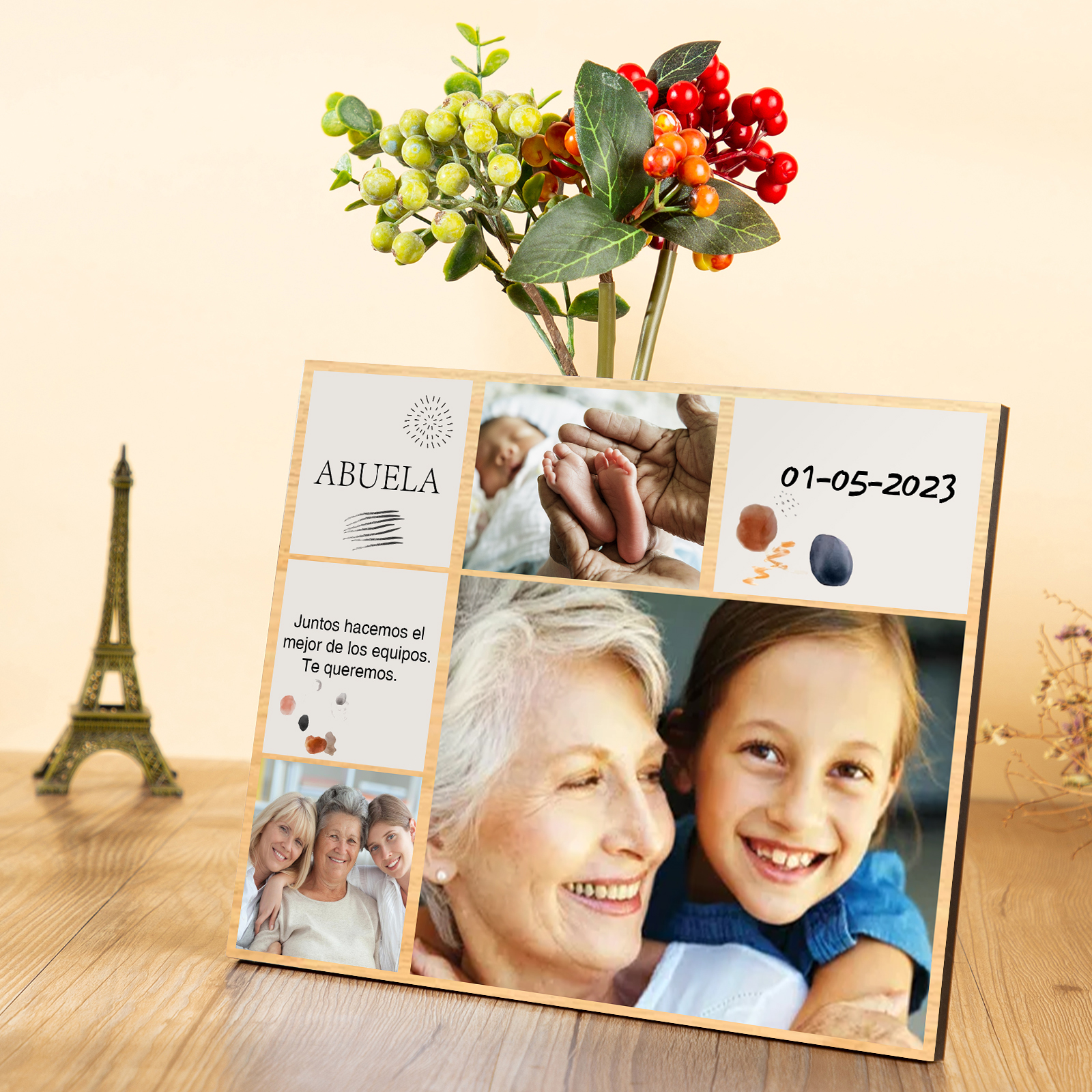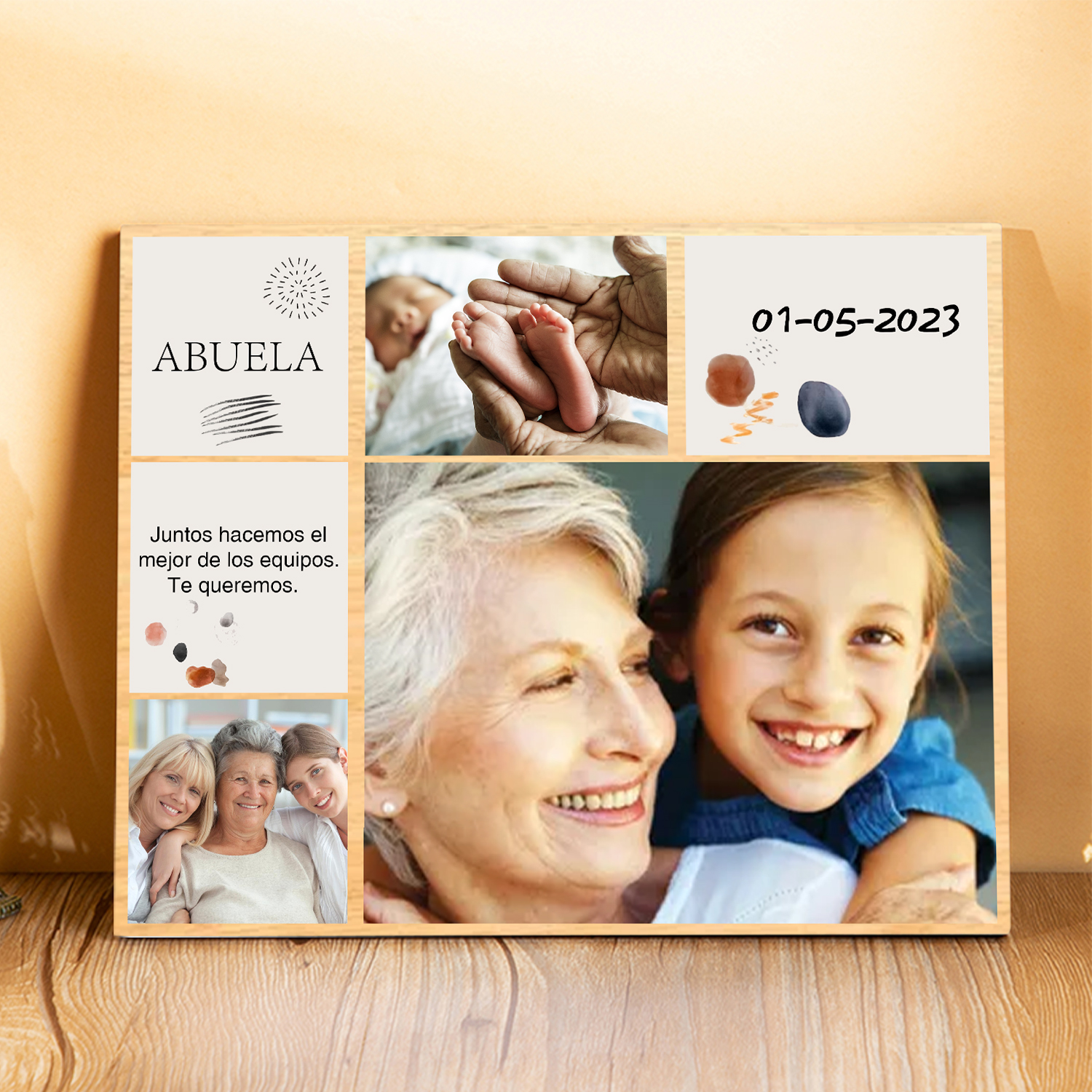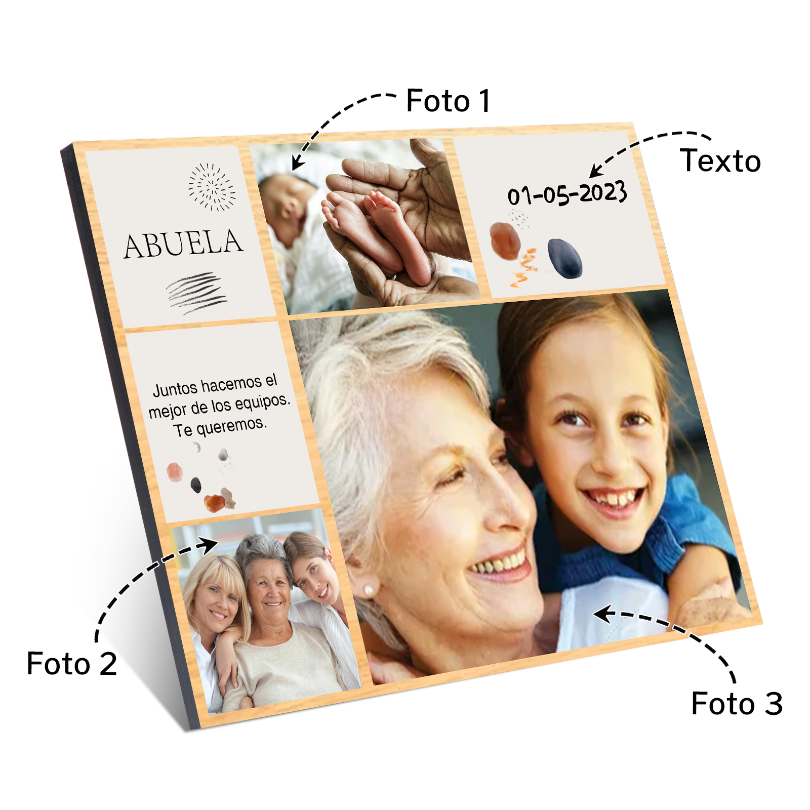 A mi abuela-Lámina marco de madera 3 fotos y 1 texto personalizados con frase de amor