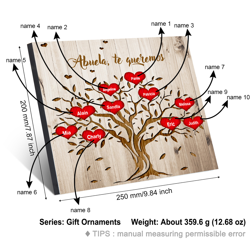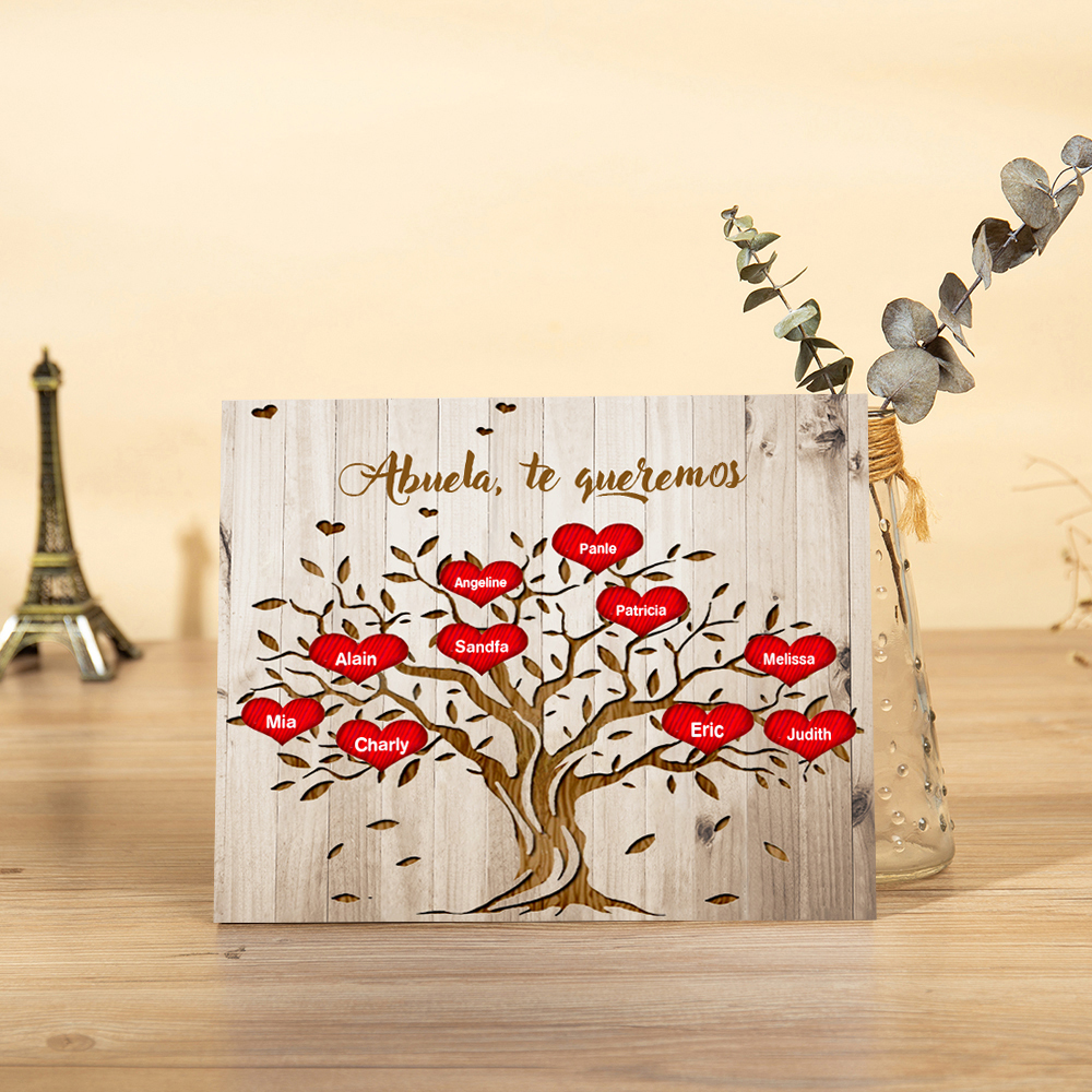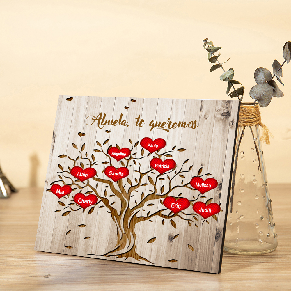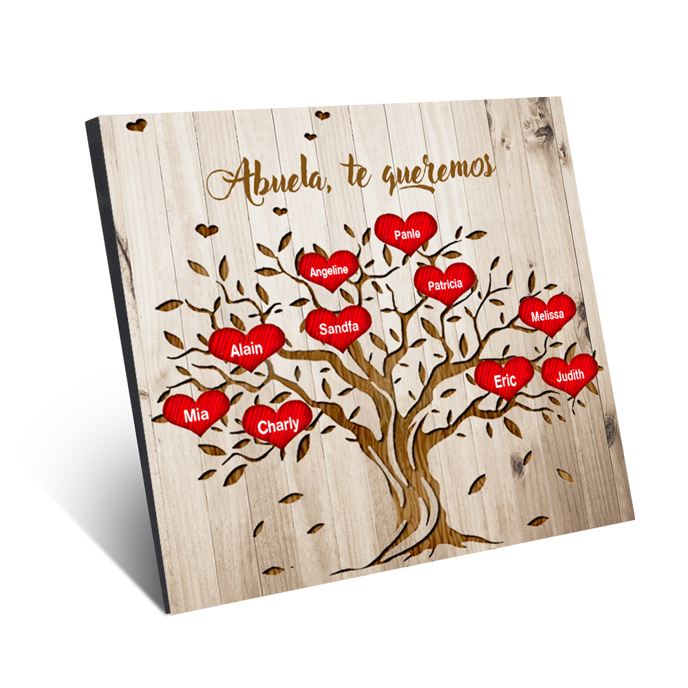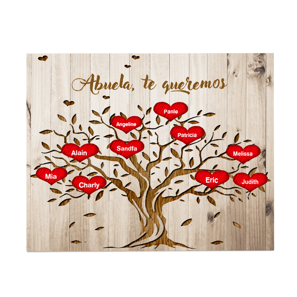 A mi abuela - Lámina marco de madera Árbol de la Vida Árbol Genealógico 10 nombres personalizados