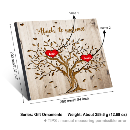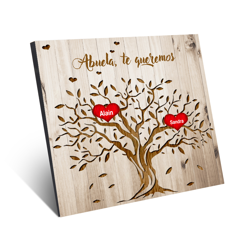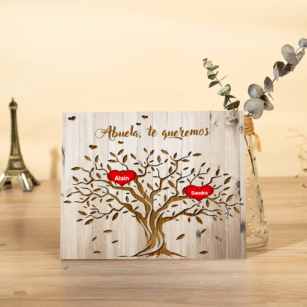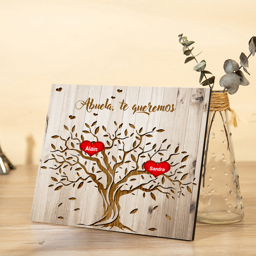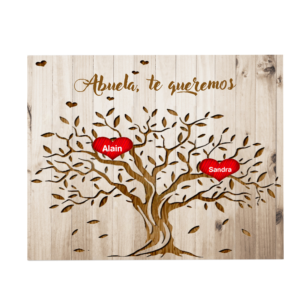 A mi abuela - Lámina marco de madera Árbol de la Vida Árbol Genealógico 2 nombres personalizados