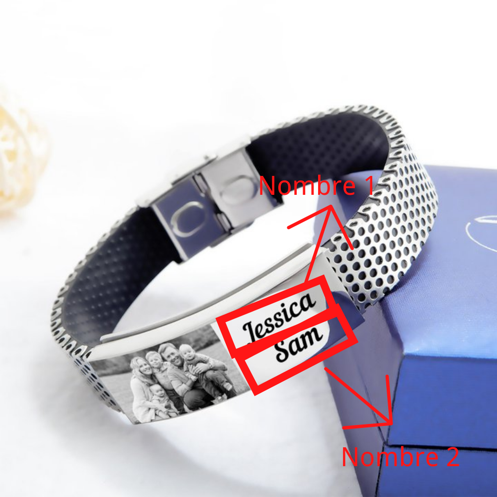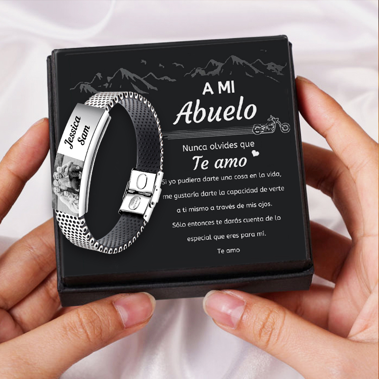 A mi abuelo-Pulsera personalizada con 2 nombres y 1 foto para hombre