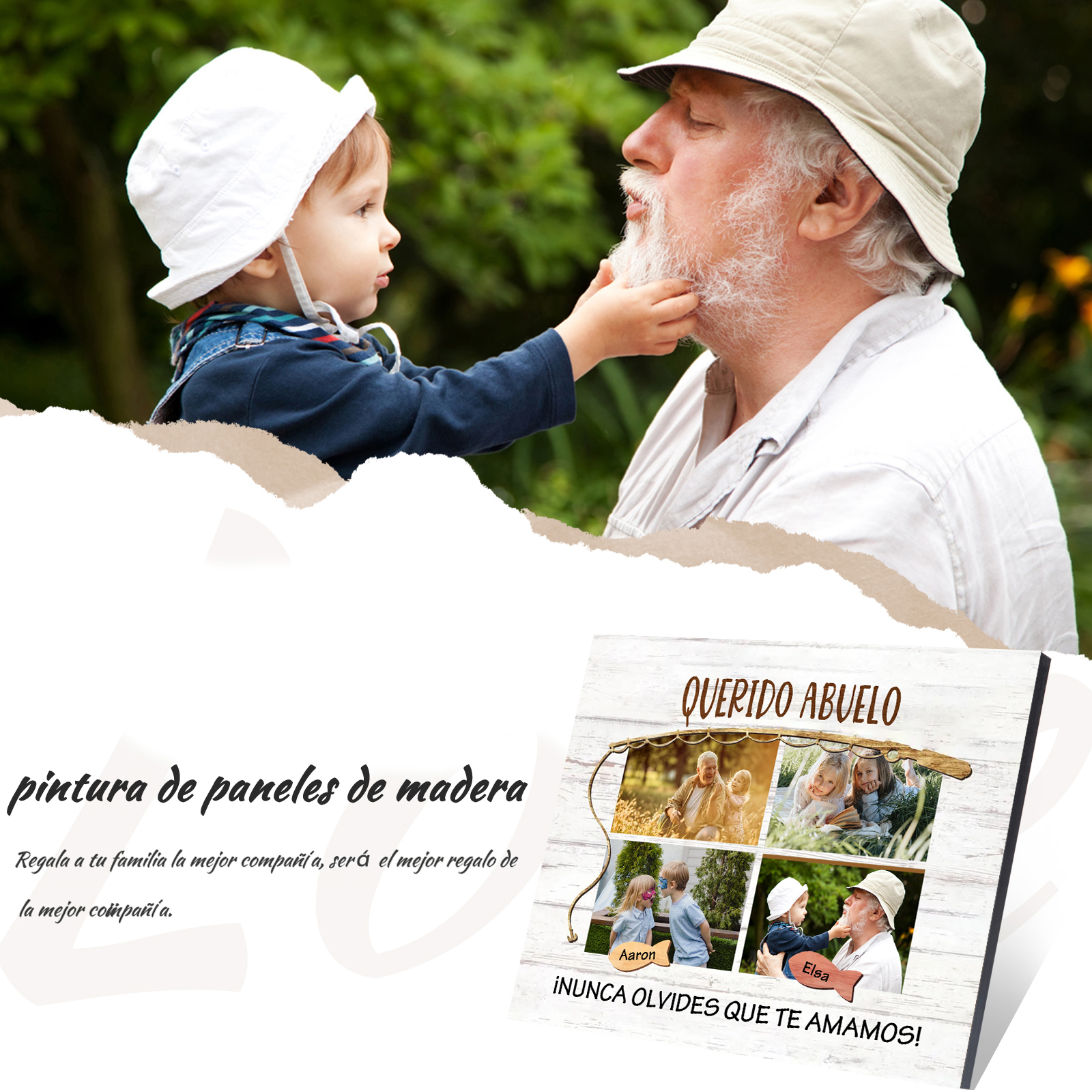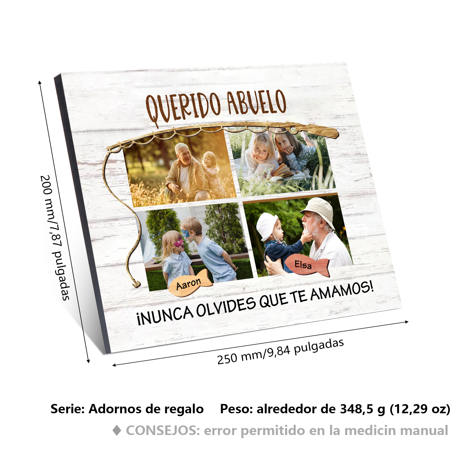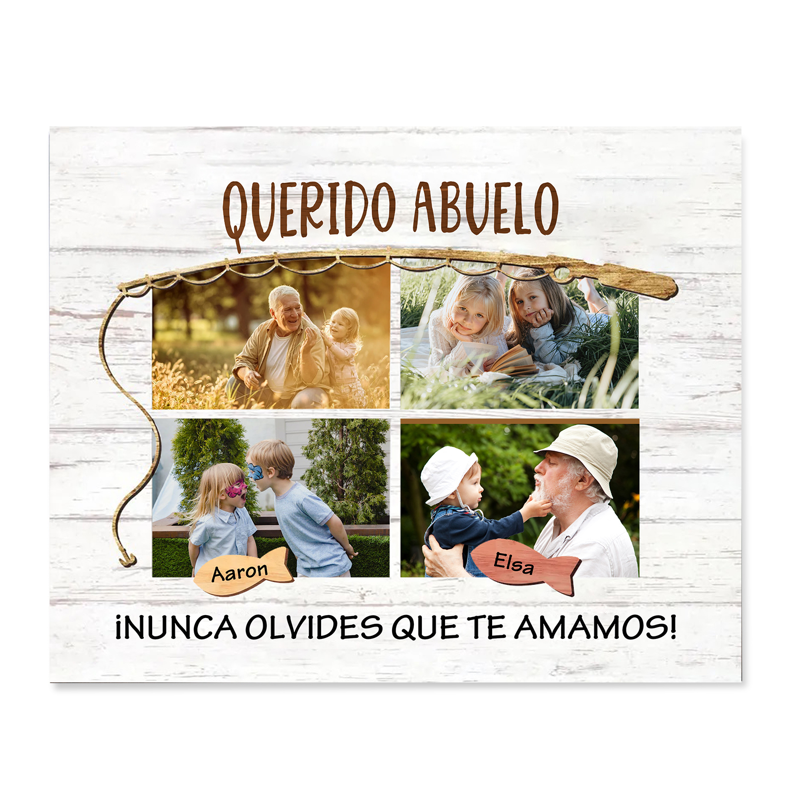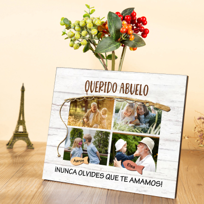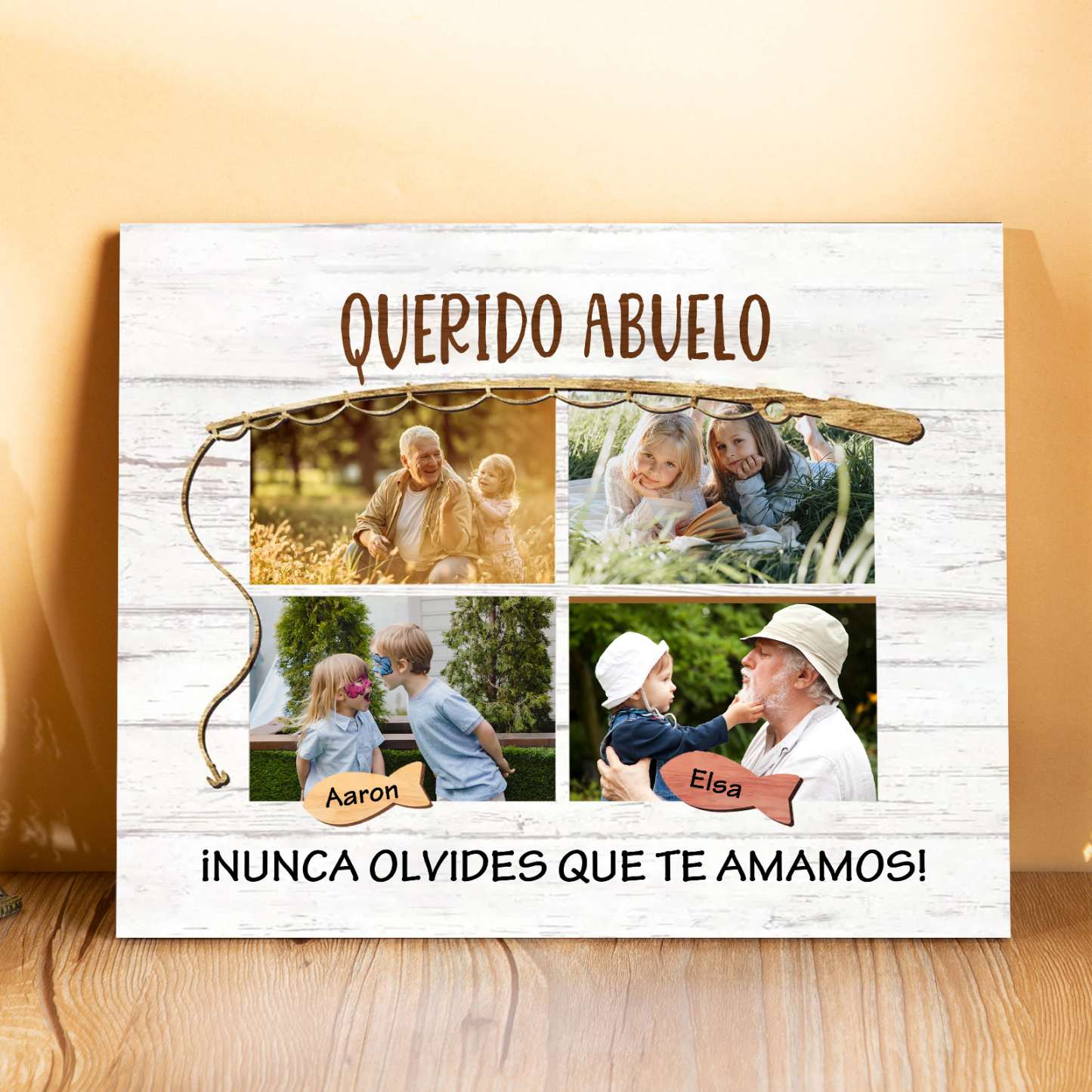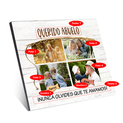 A mi familia- Lámina marco de madera peces 2 nombres y 4 fotos personalizados con 2 textos
