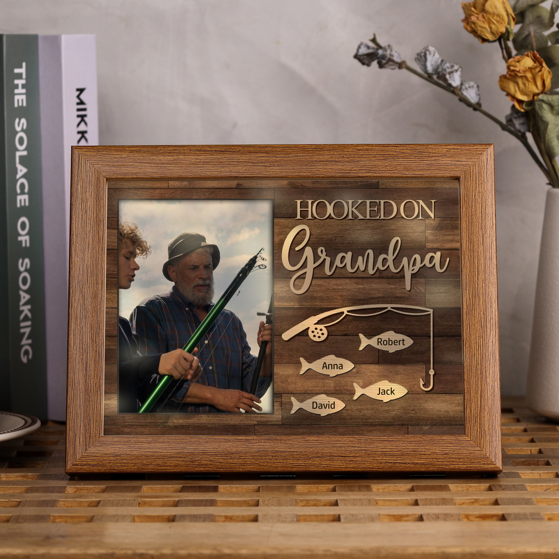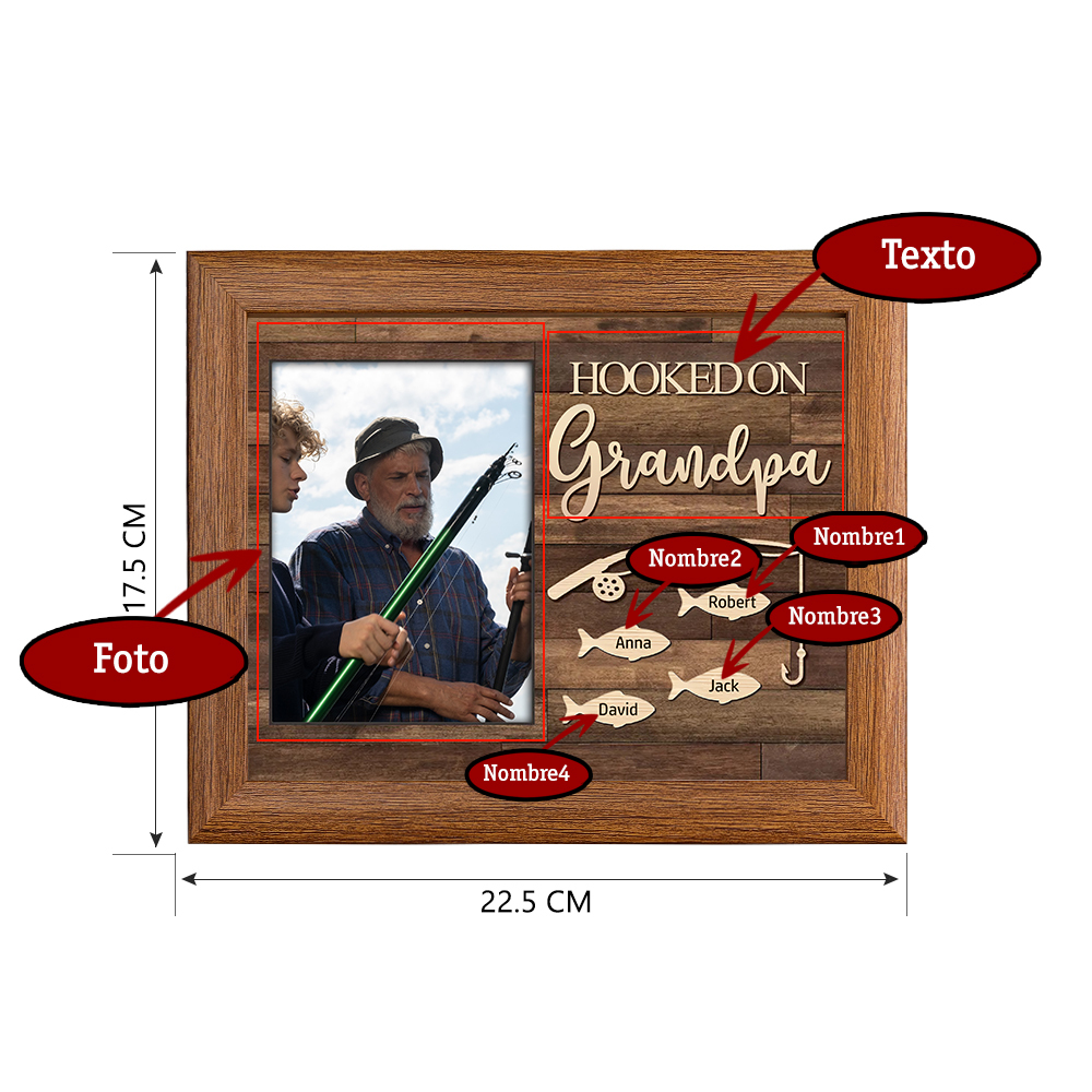 A mi familia- Marco de madera 1 foto personalizada con 4 nombres y 1 texto