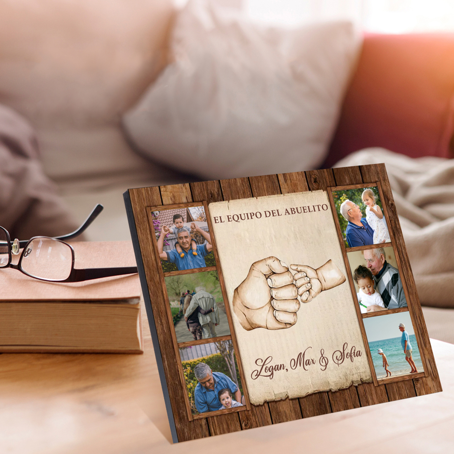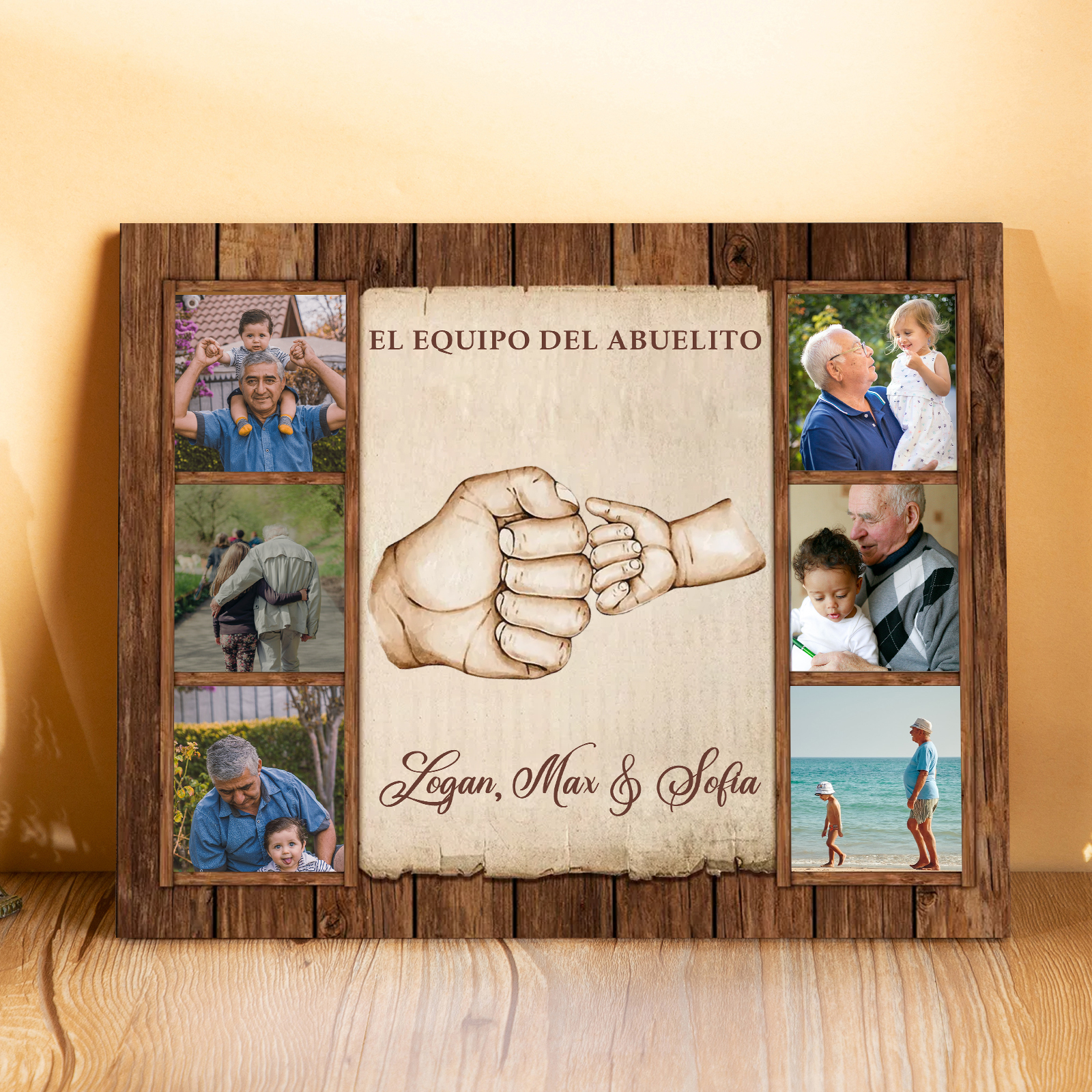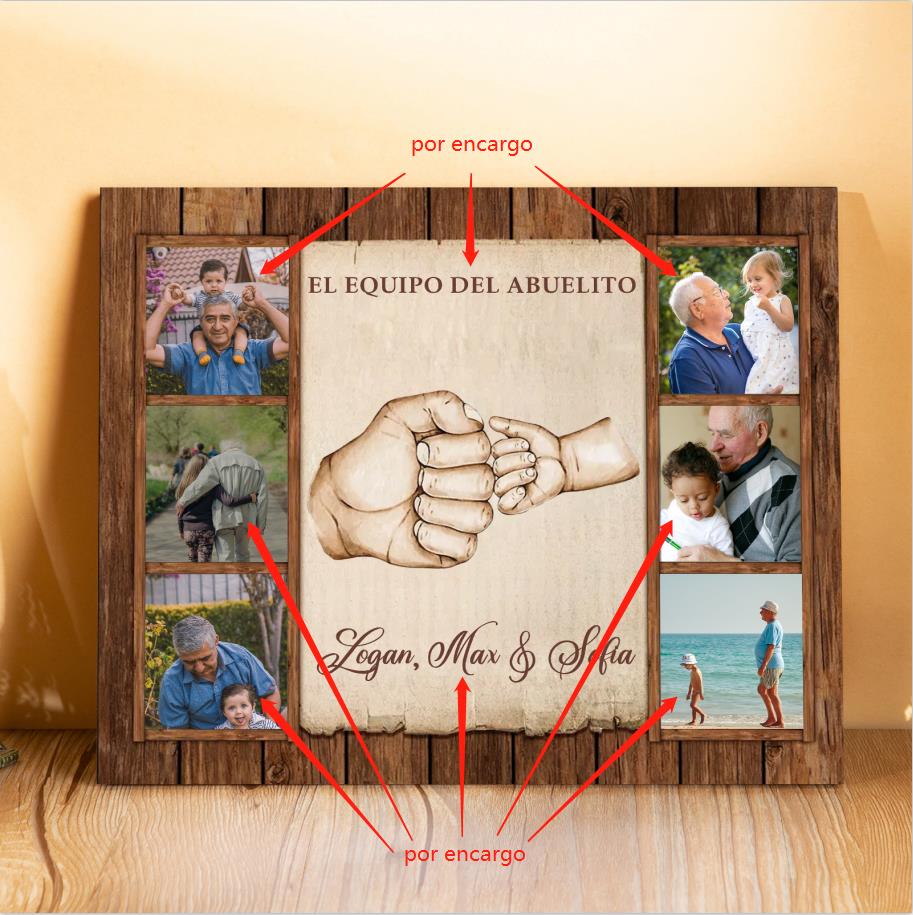 A mi familia- Lámina marco de madera puño a puñito 6 fotos personalizadas con 2 textos