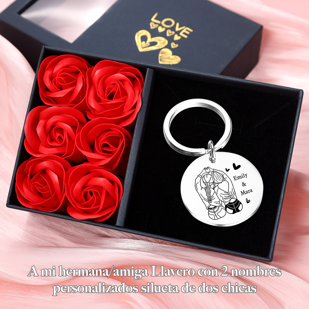 A mi hermana/amiga - Llavero con 2 nombres personalizados silueta de dos chicas