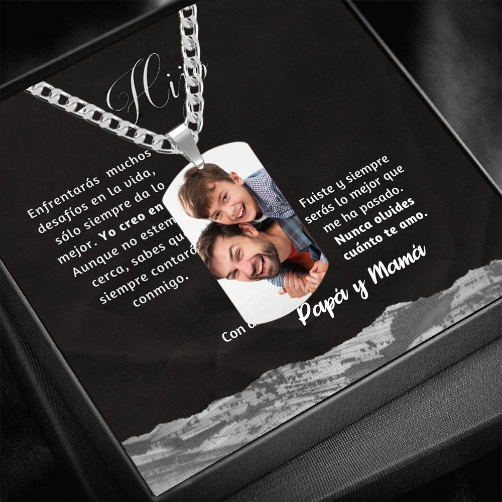 A mi hijo-Collar de acero inoxidable personalizado con 1 foto y 1 texto