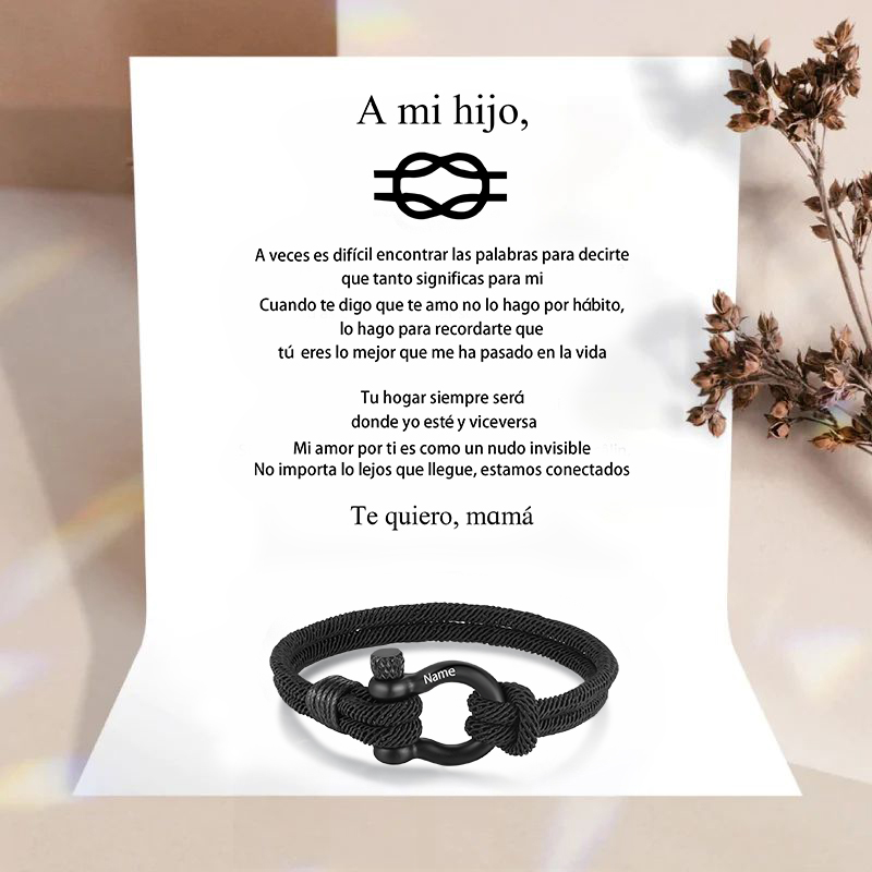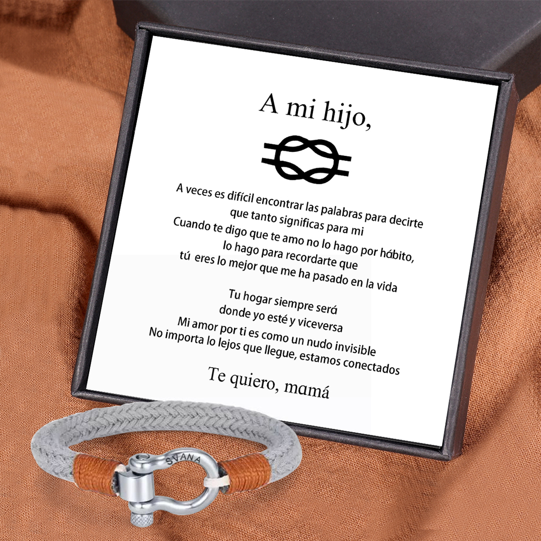 ¡Este regalo es perfecto para tu hijo! Viene en una caja con una tarjeta reflexiva y sincera. Llevar esta pulsera le recordará que el recuerdo creado entre vosotros será atesorado para siempre. ¡Un regalo único que no podrás encontrar en ningún otro lugar!