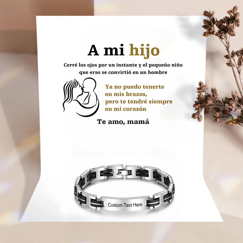 A mi hijo-Pulsera para hombre con placa personalizada con 1 texto