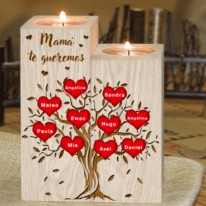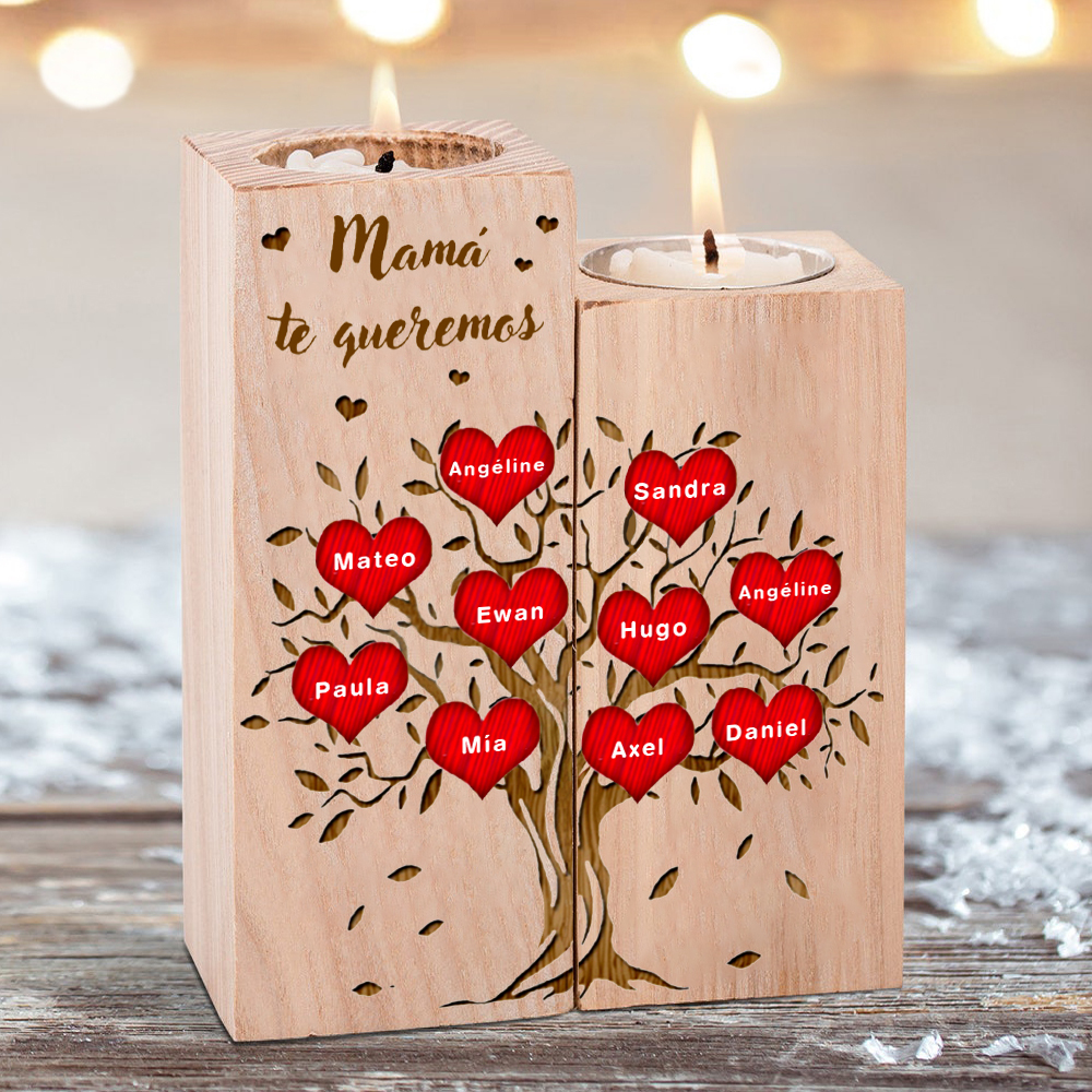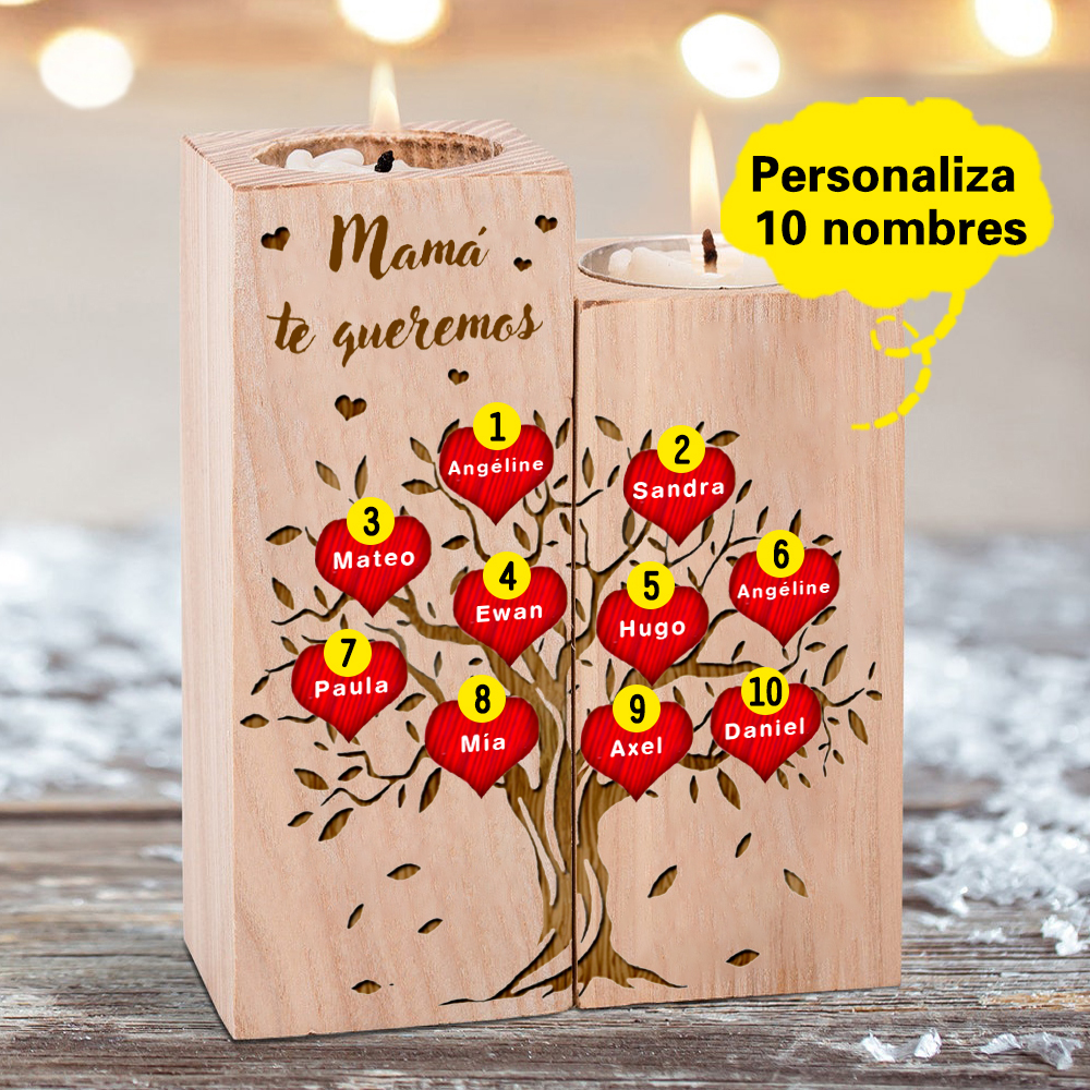 A mi mamá-Candelero de madera de dos piezas sin candela 10 nombres