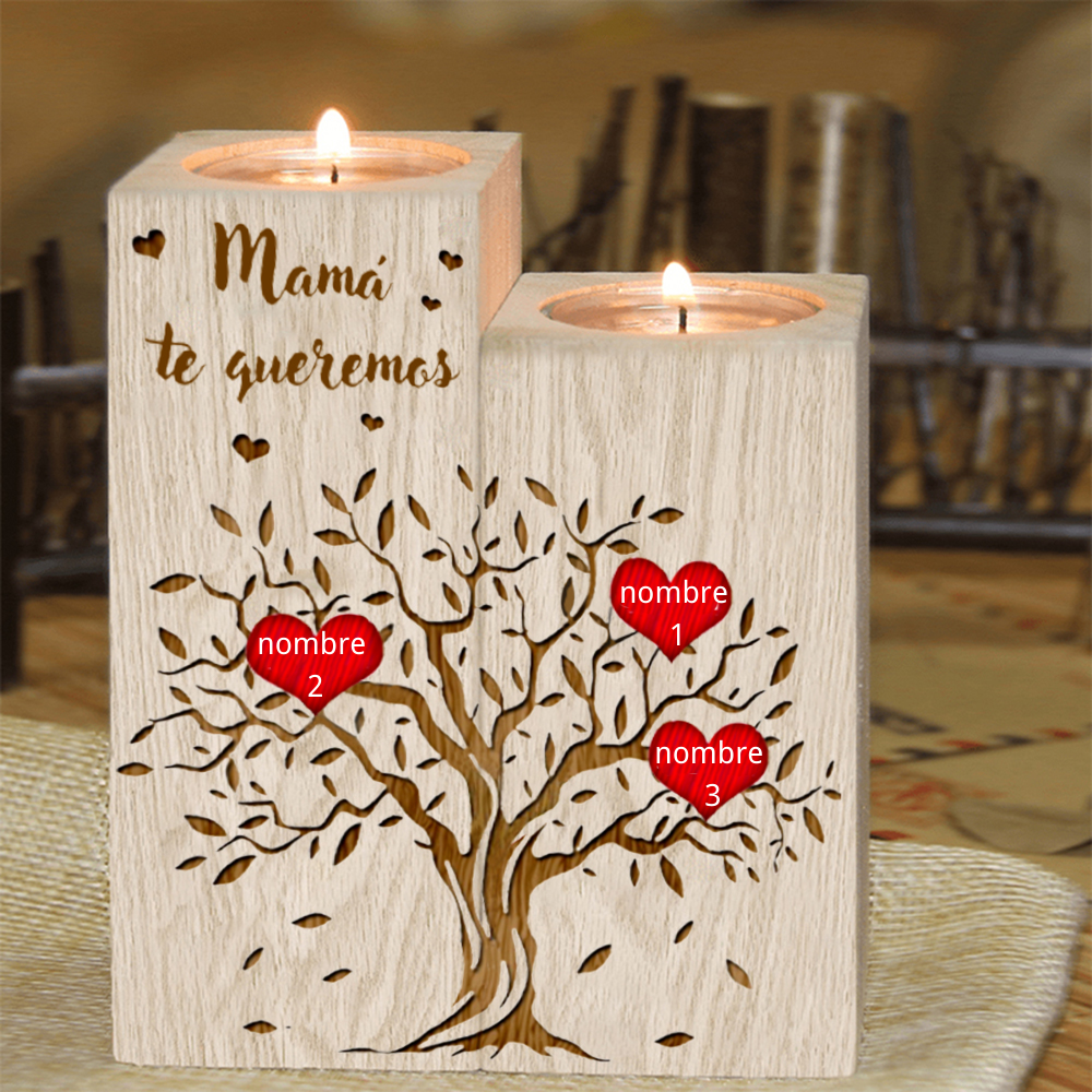 A mi mamá-Candelero de madera de dos piezas sin candela 3 nombres