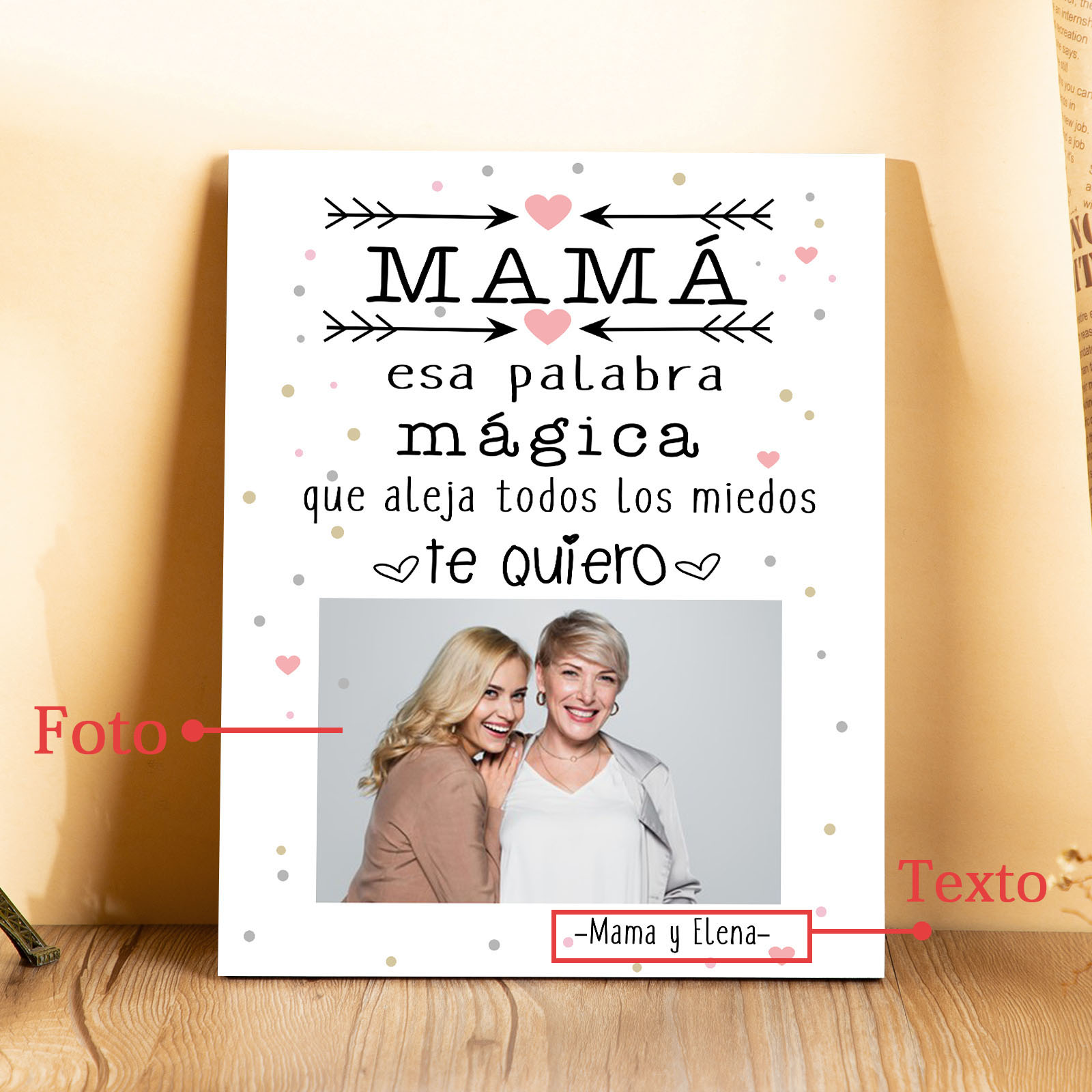 A mi mamá-Lámina marco de madera para mamá personalizado con 1 texto y 1 foto