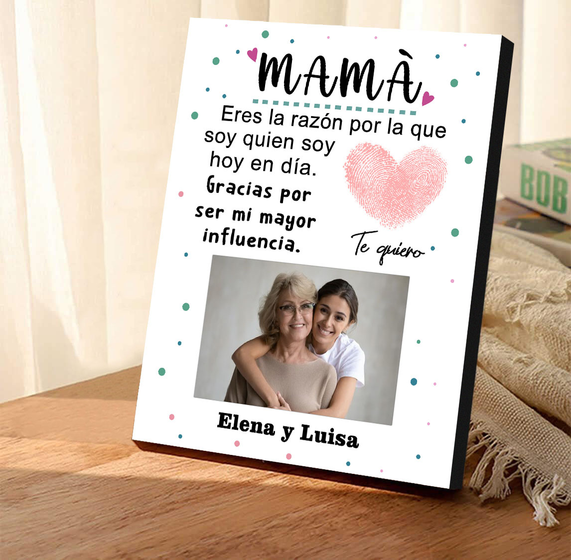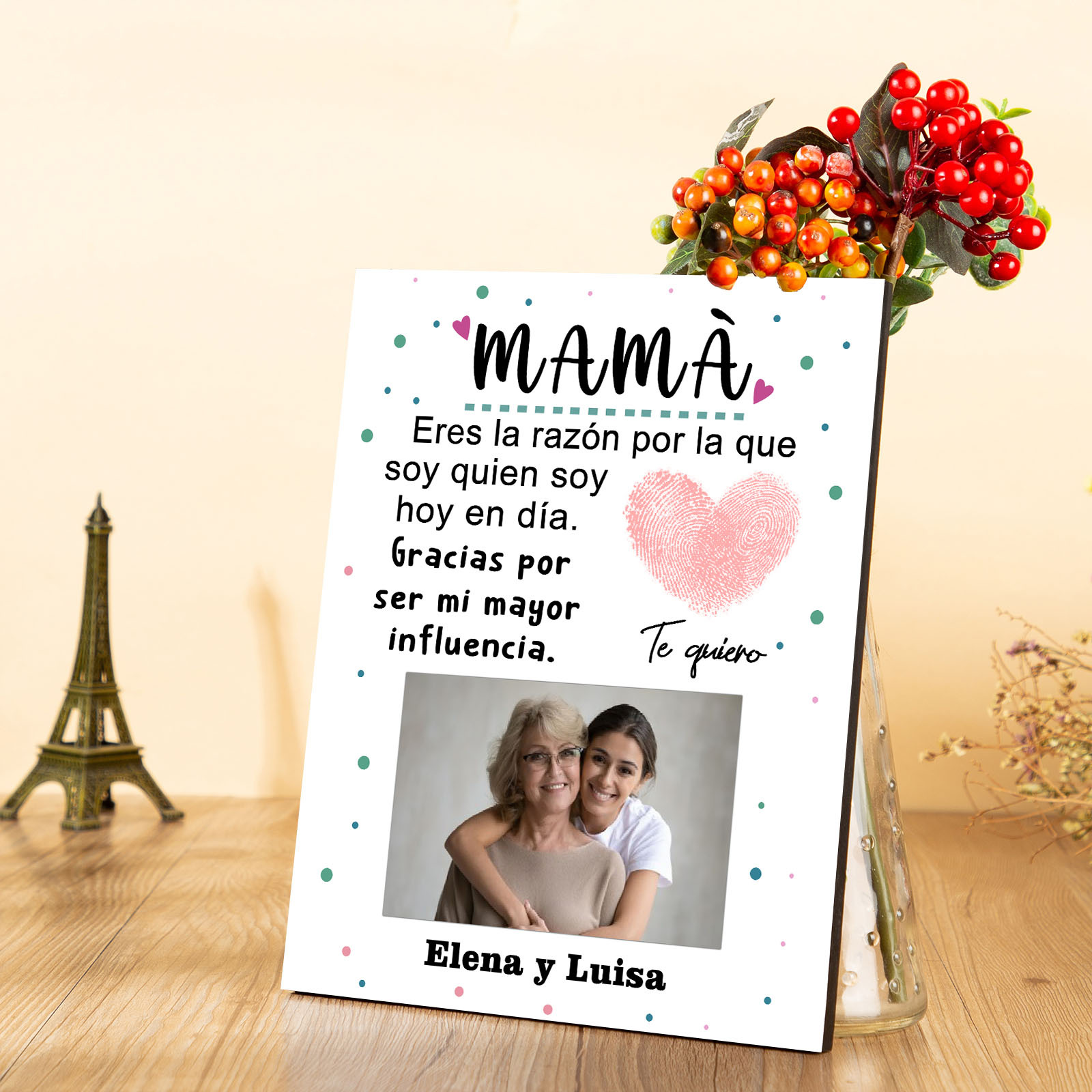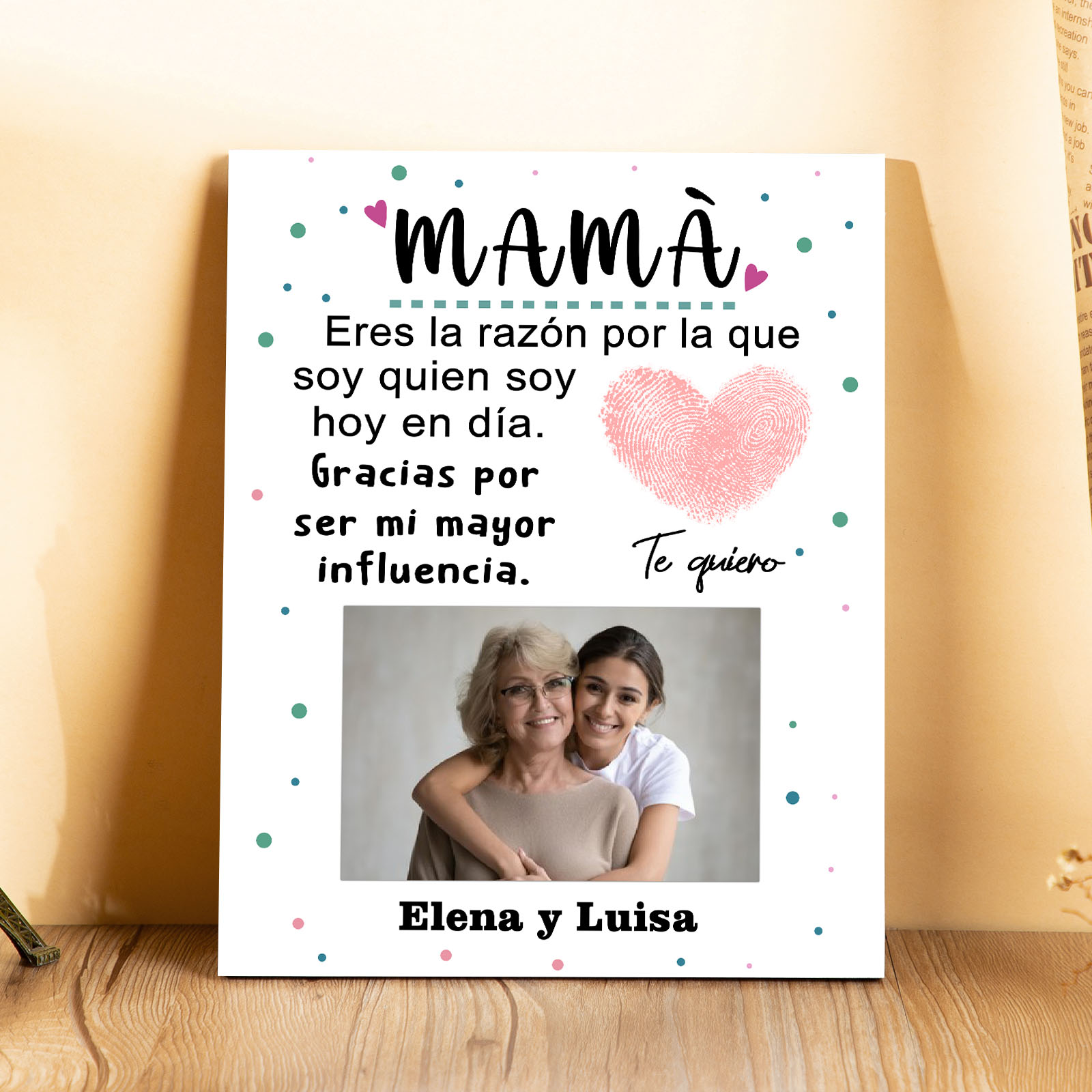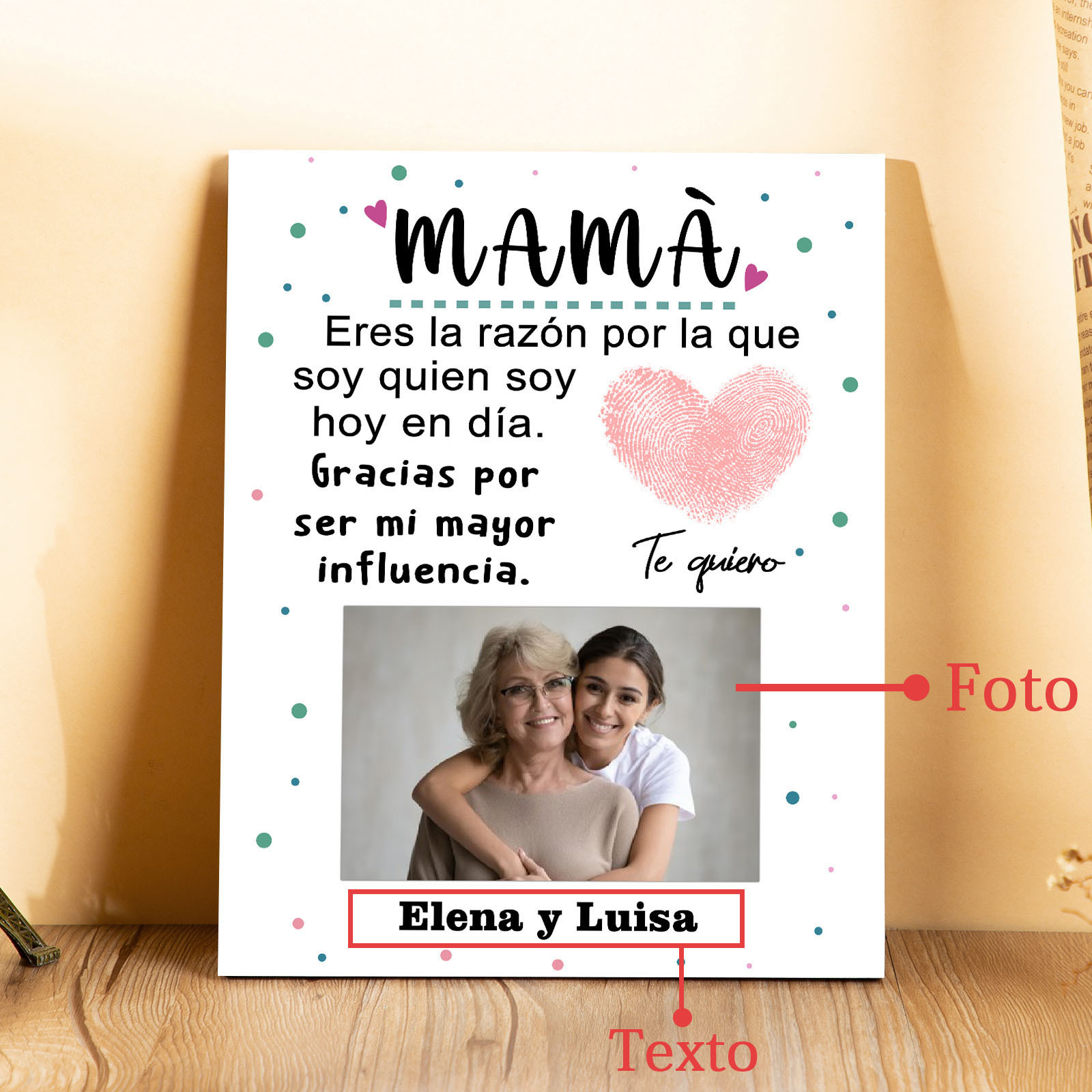 A mi mamá-Lámina marco de madera para mamá personalizado con 1 texto y 1 foto