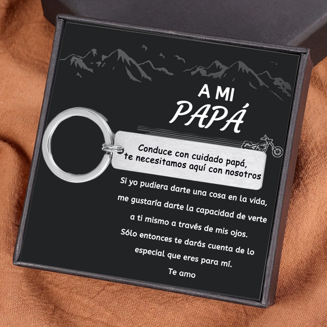 A mi papá- Llavero "conduce con cuidado" de acero inoxidable