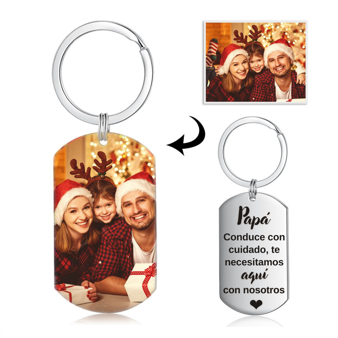 A MI PAPÁ- Llavero "conduce con cuidado" foto personalizada