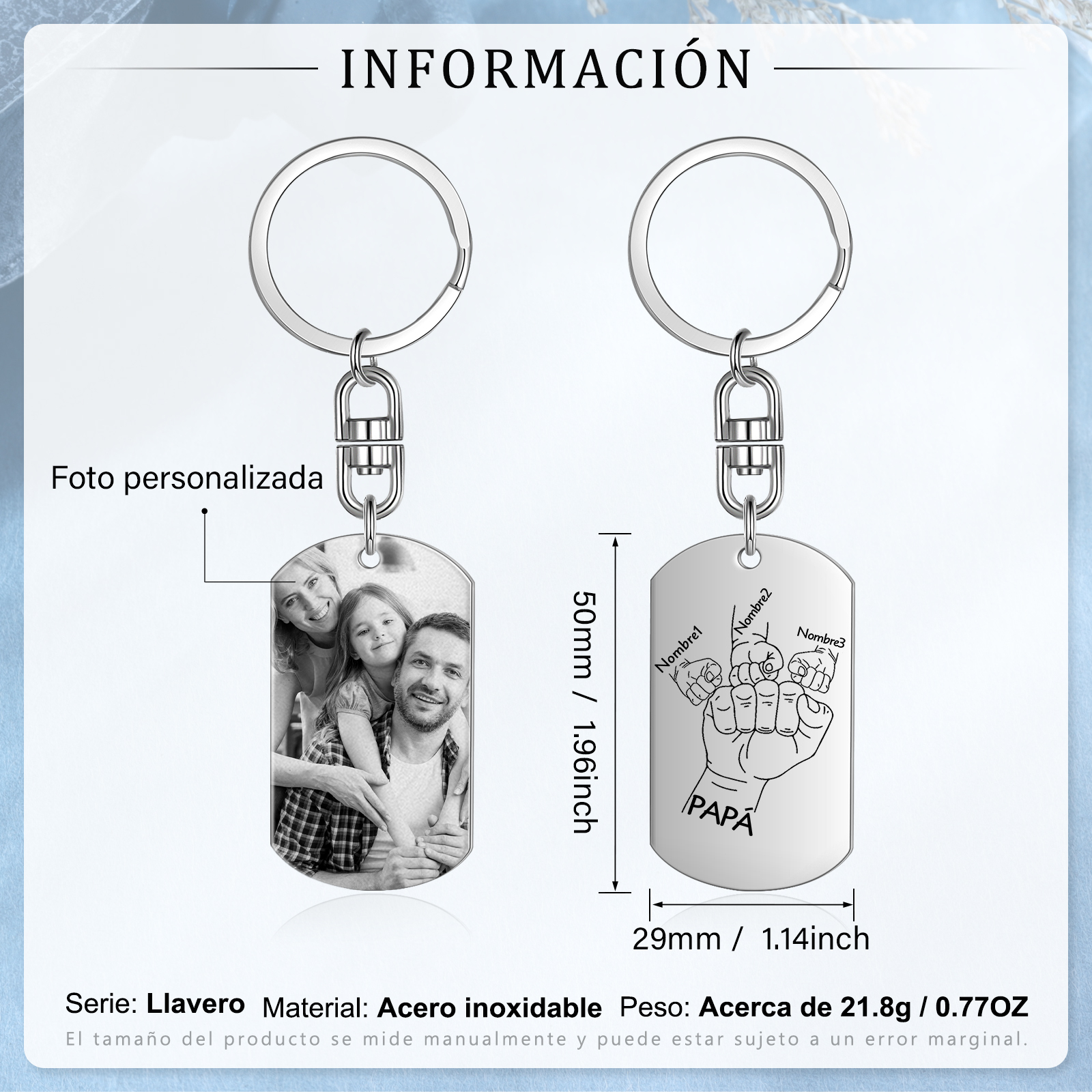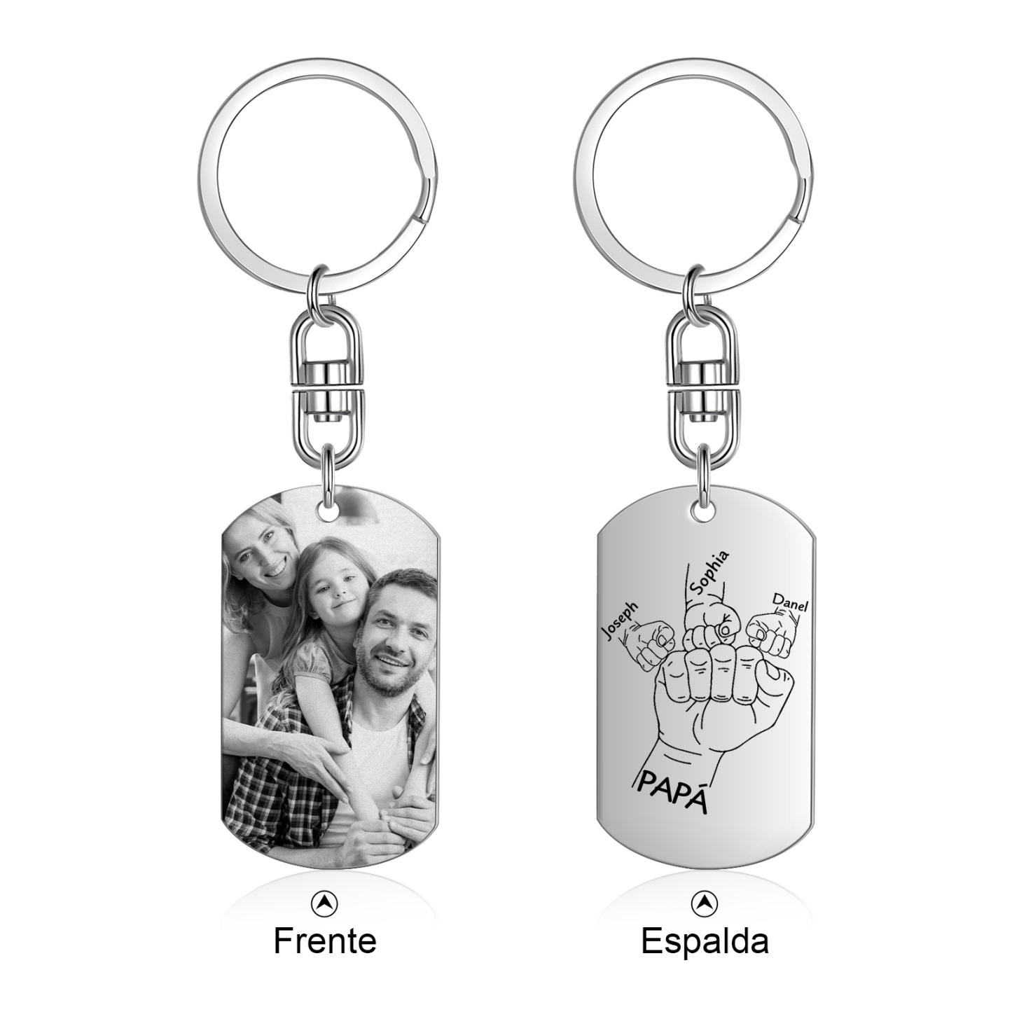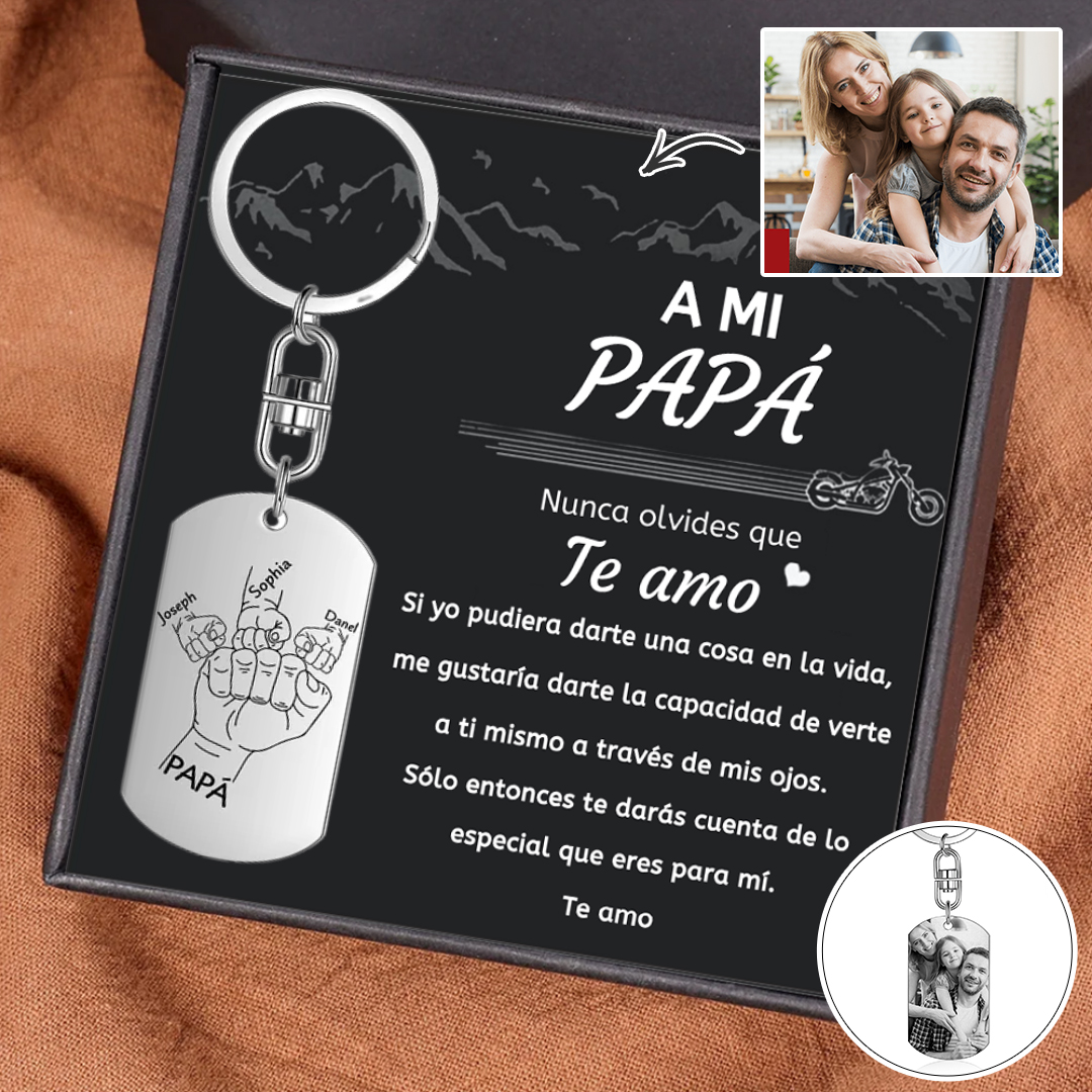 A mi papá-Llavero personalizado con 1 foto y 3 nombres