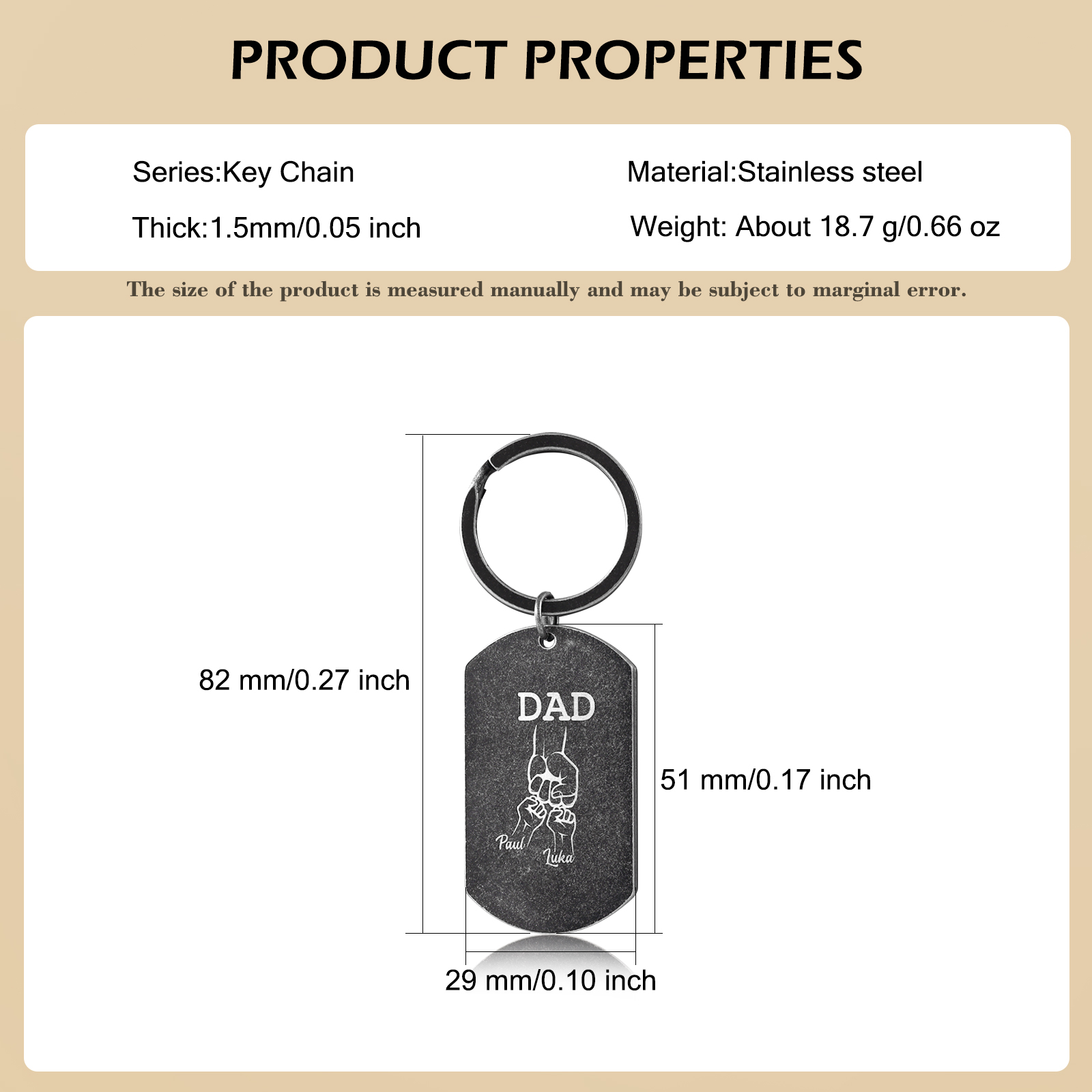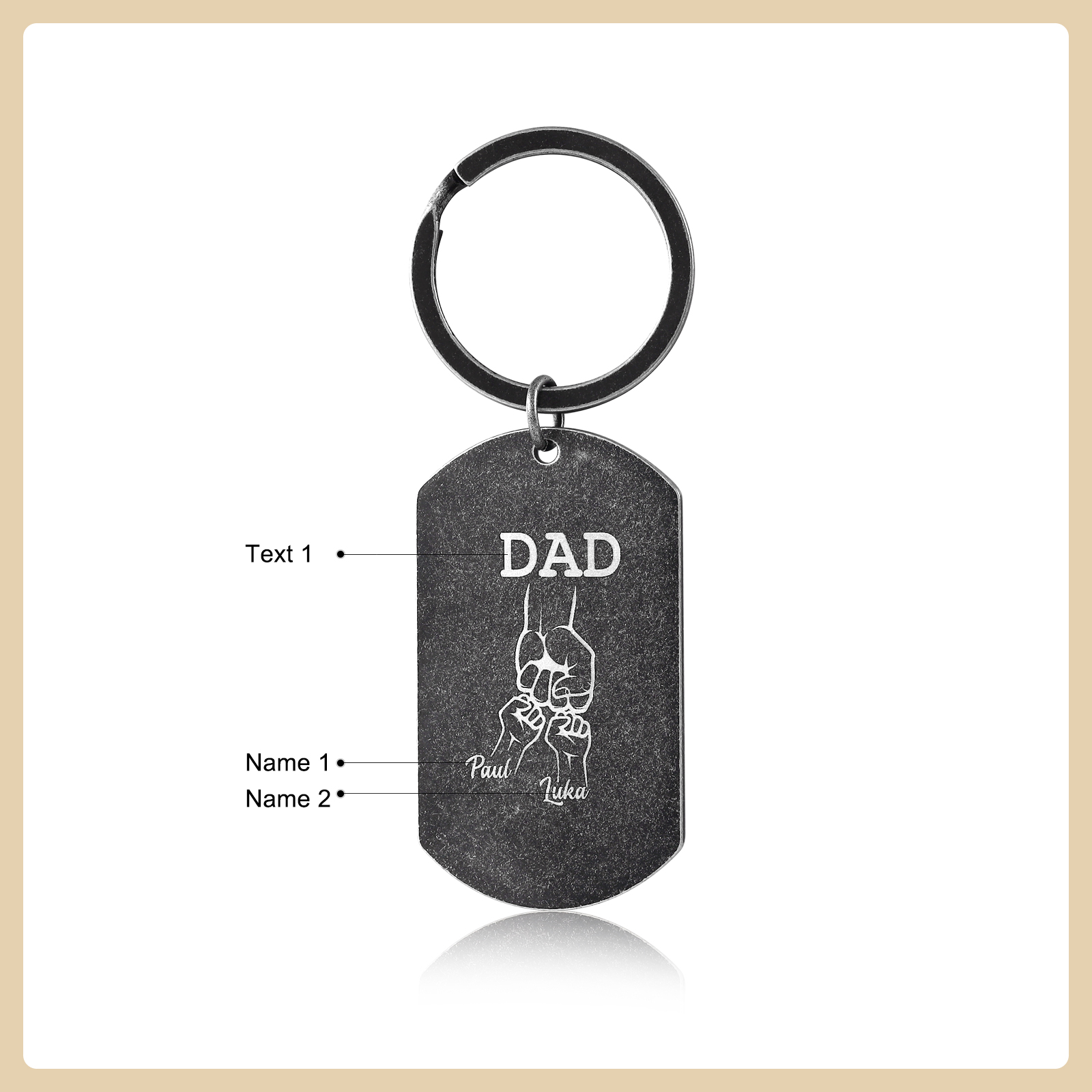 A mi papá-Llavero Personalizado Puño con Puño 2 Nombres y 1 Texto