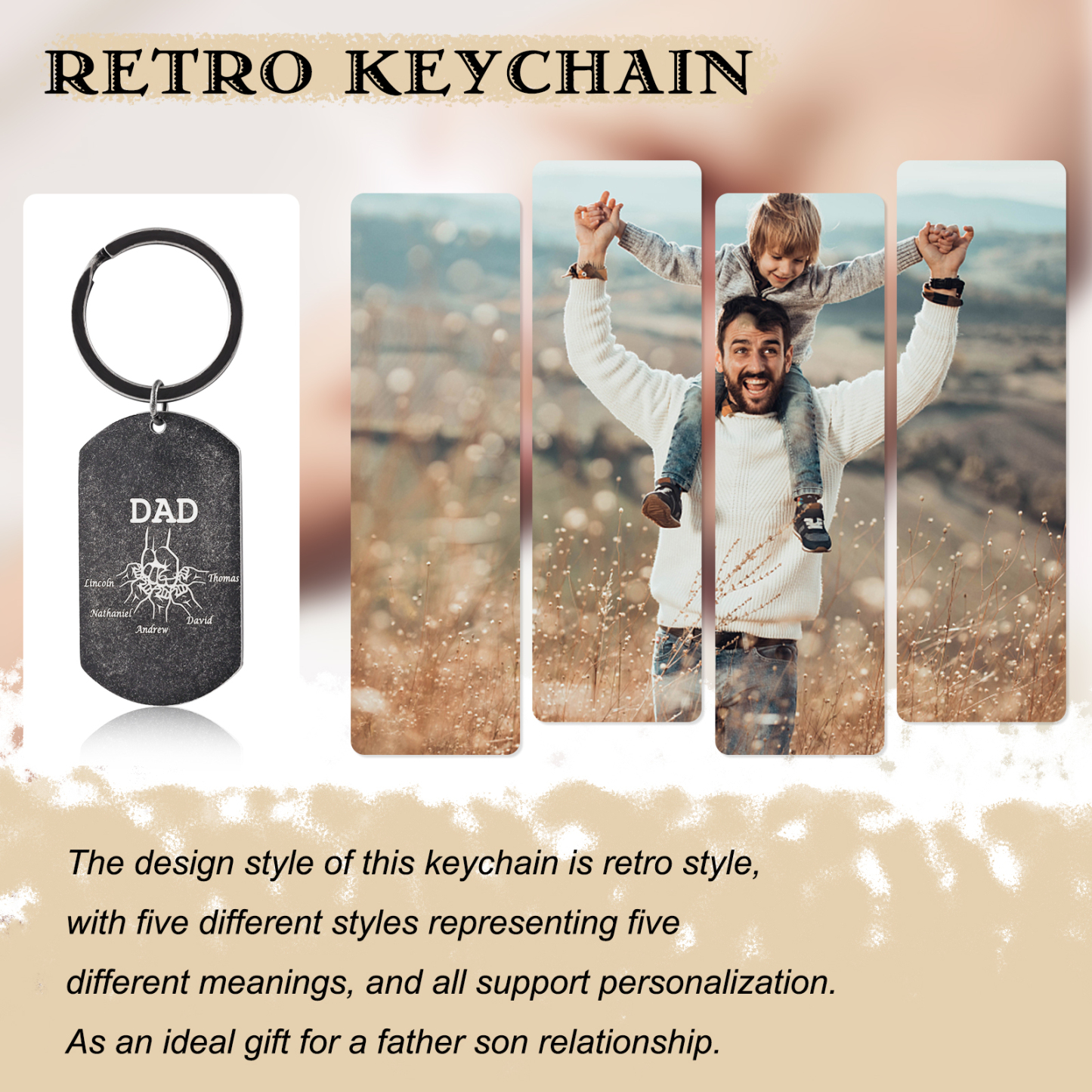 A mi papá-Llavero Personalizado Puño con Puño 5 Nombres y 1 Texto