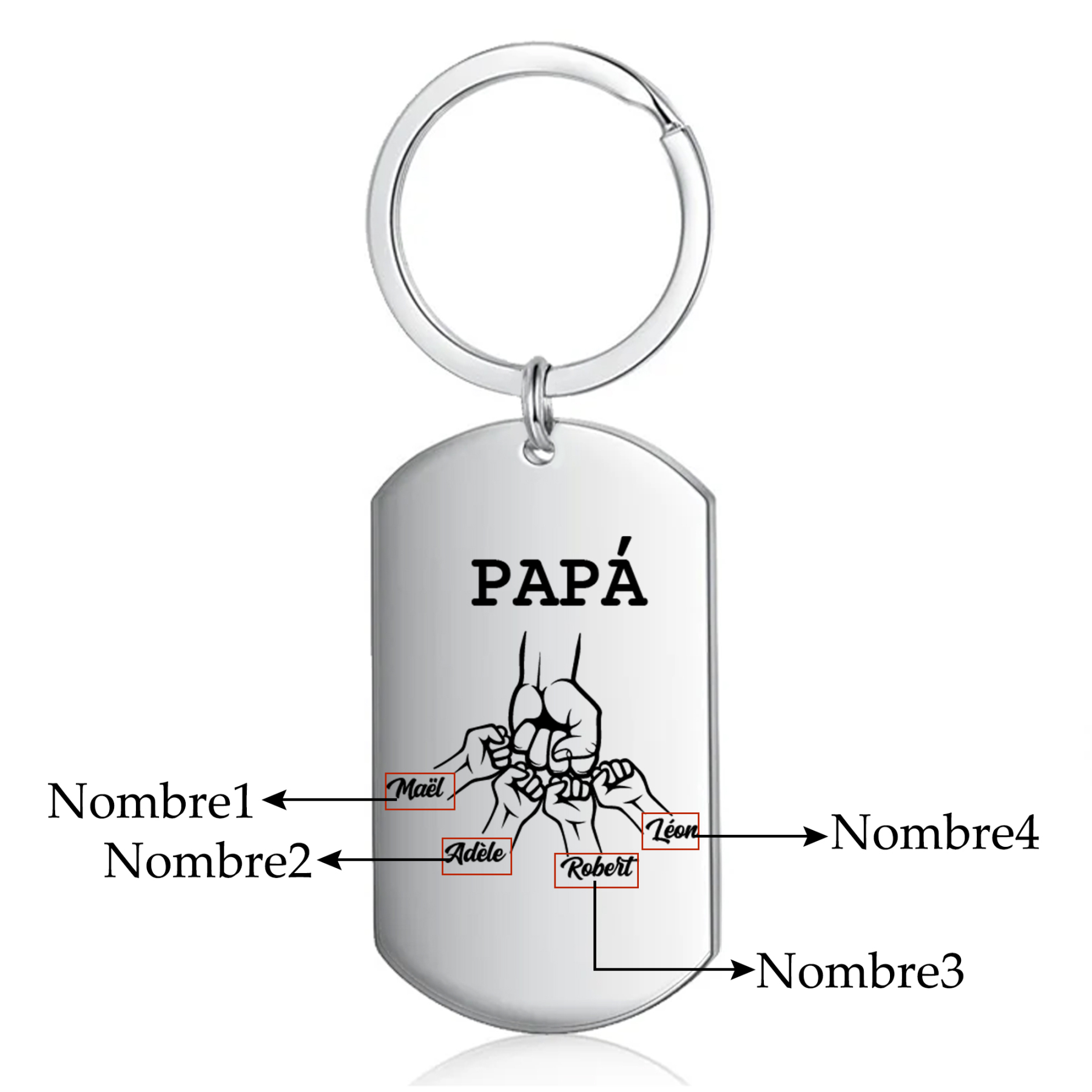 A Mi Papá-Llavero Personalizado Puño con Puños 4 Nombres con Foto