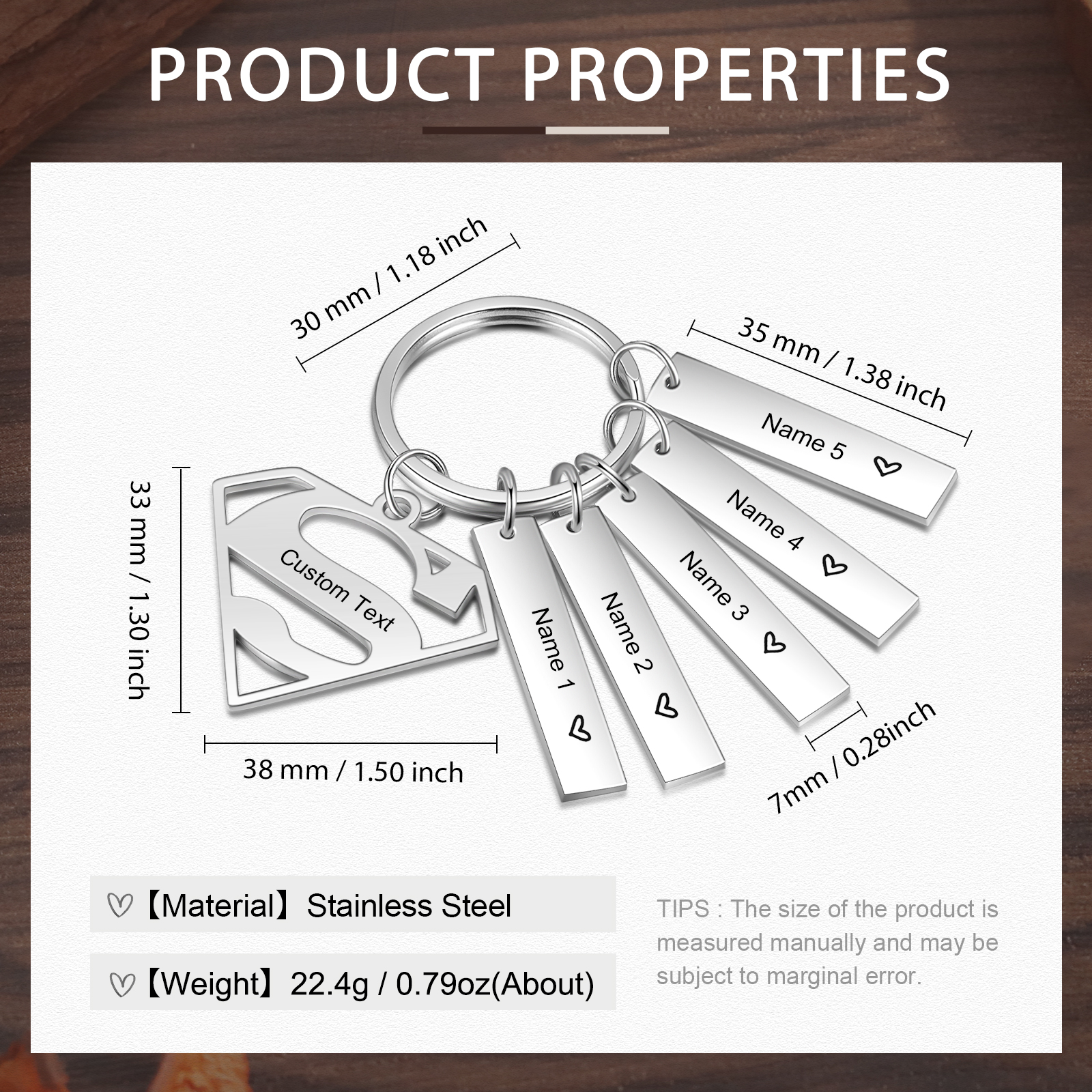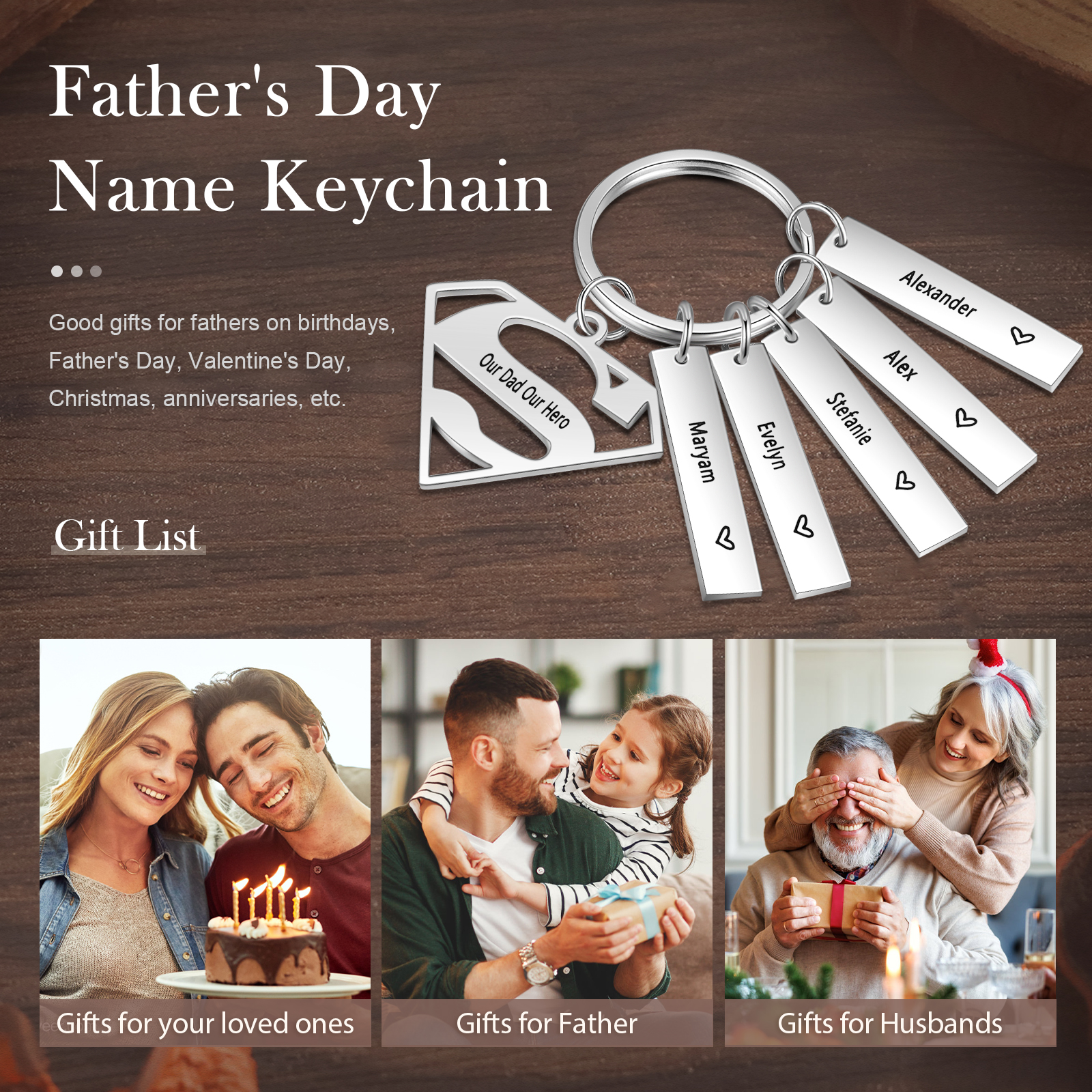 A mi papá - Llavero Superman con 5 nombres personalizados con texto