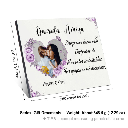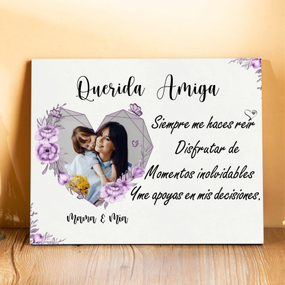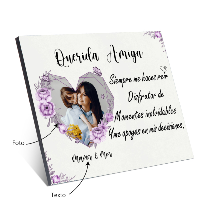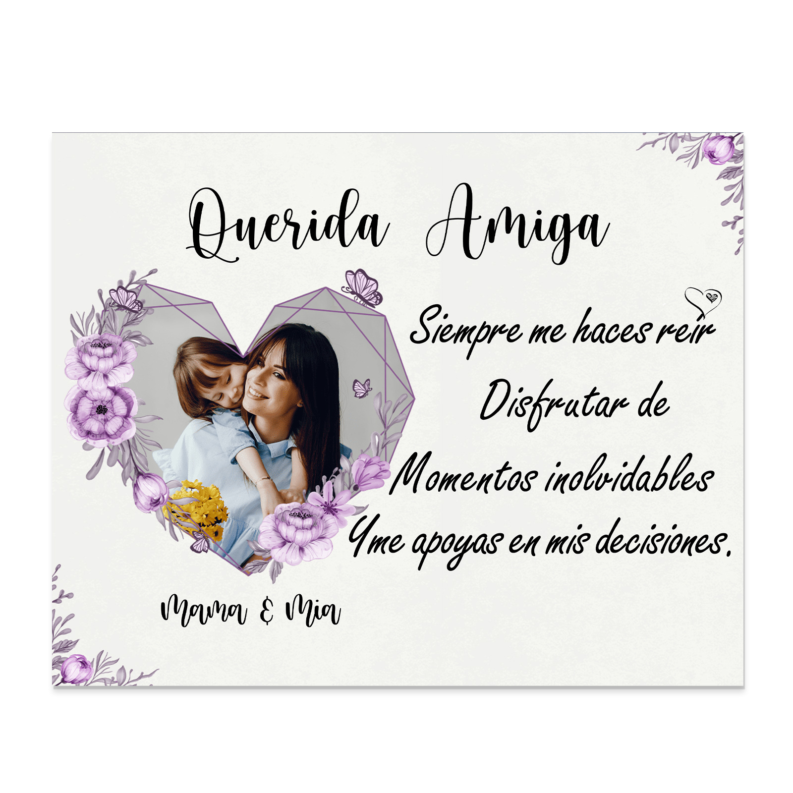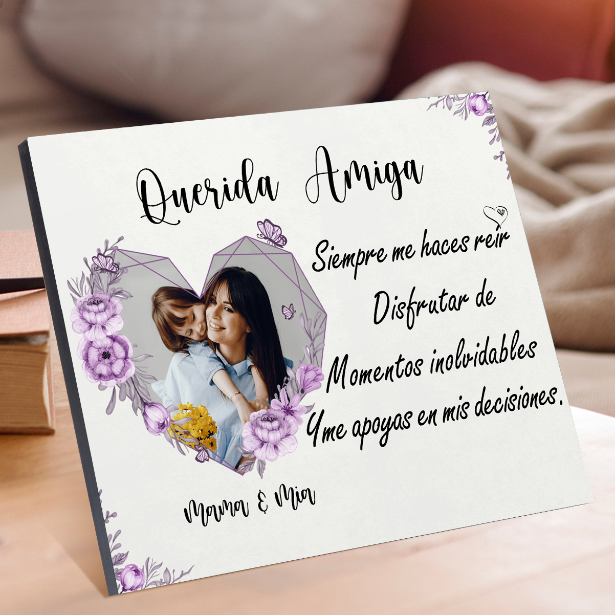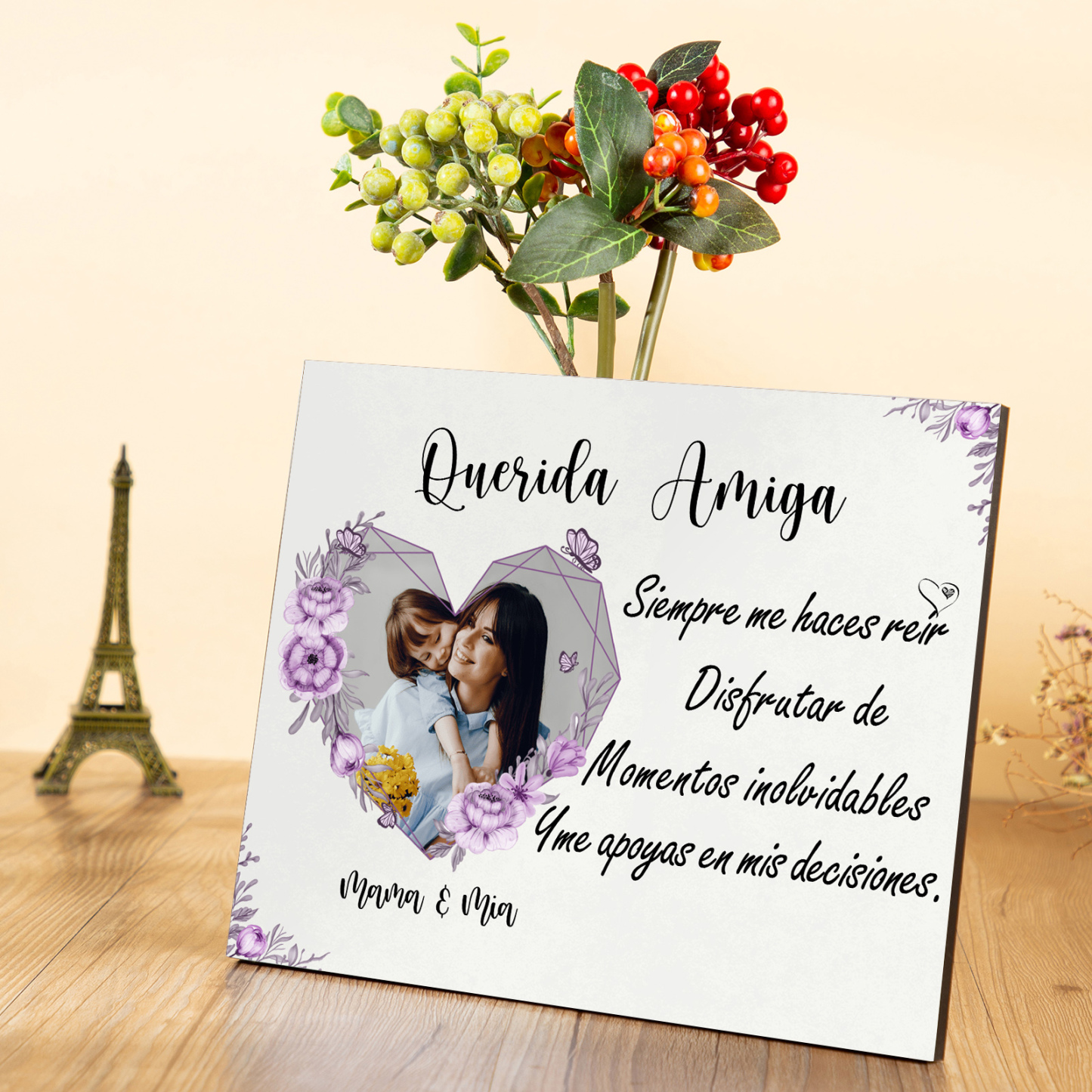 A mi querida amiga-Lámina marco de madera para amiga personalizado con foto y texto